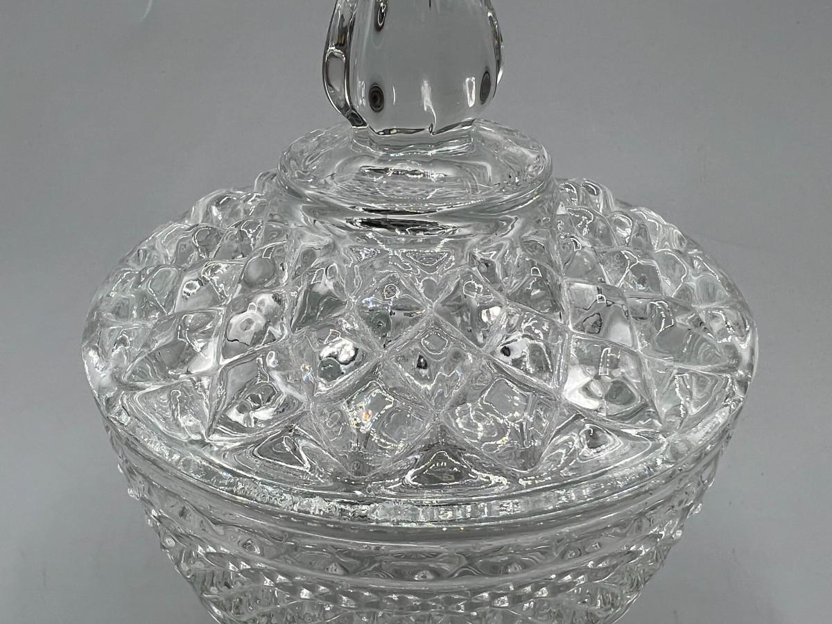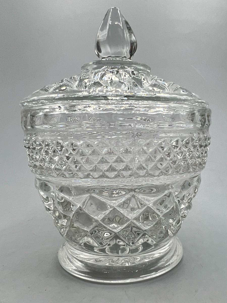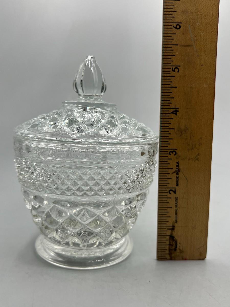 Small Mid Century Modern Crystal Glass Textured Lidded Candy Bowl