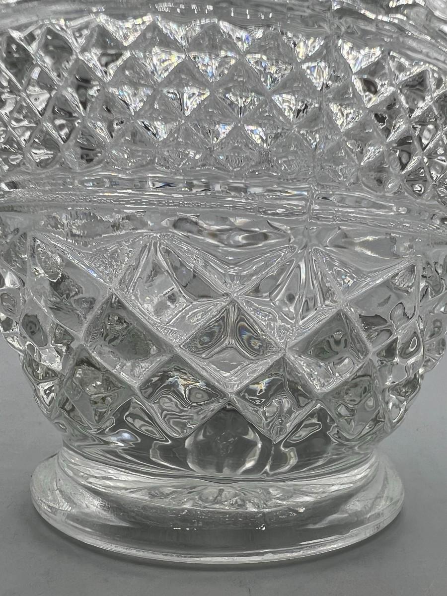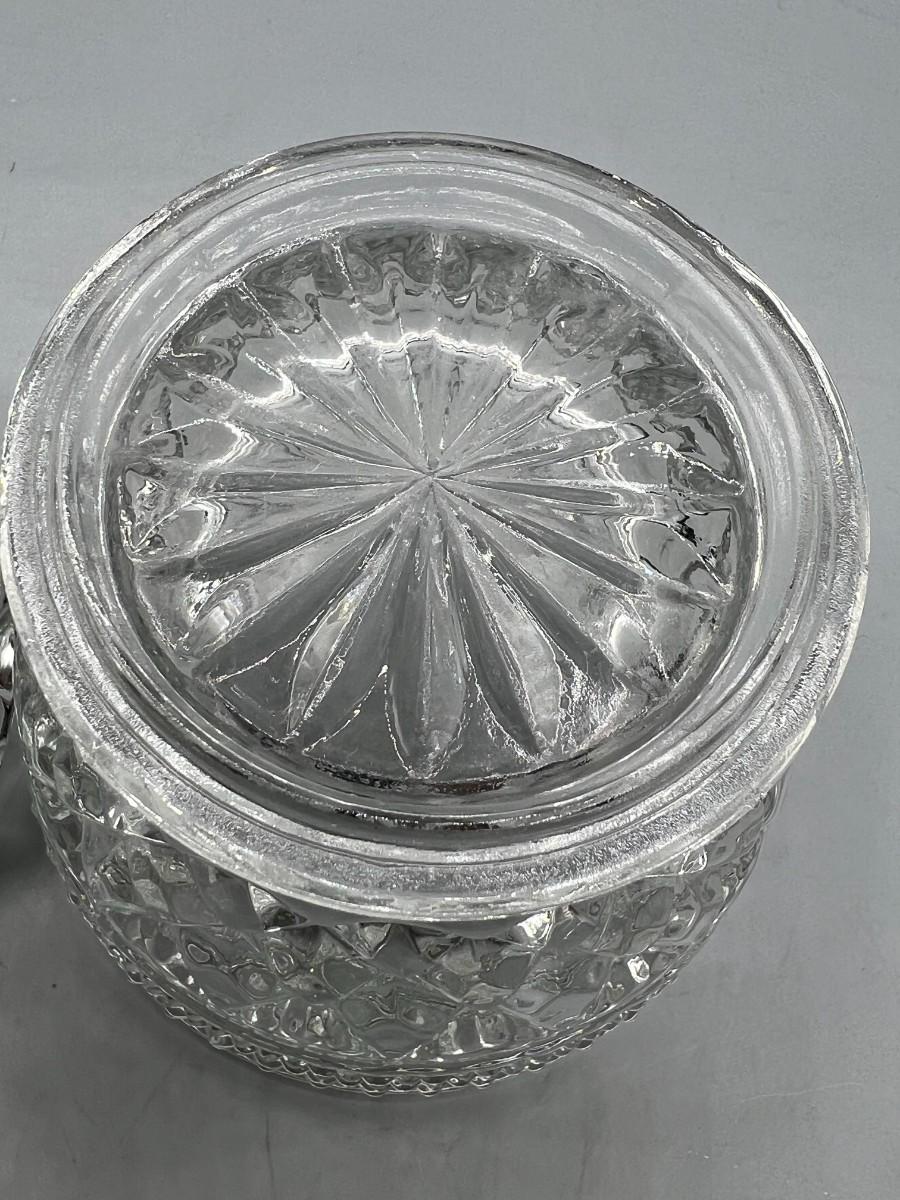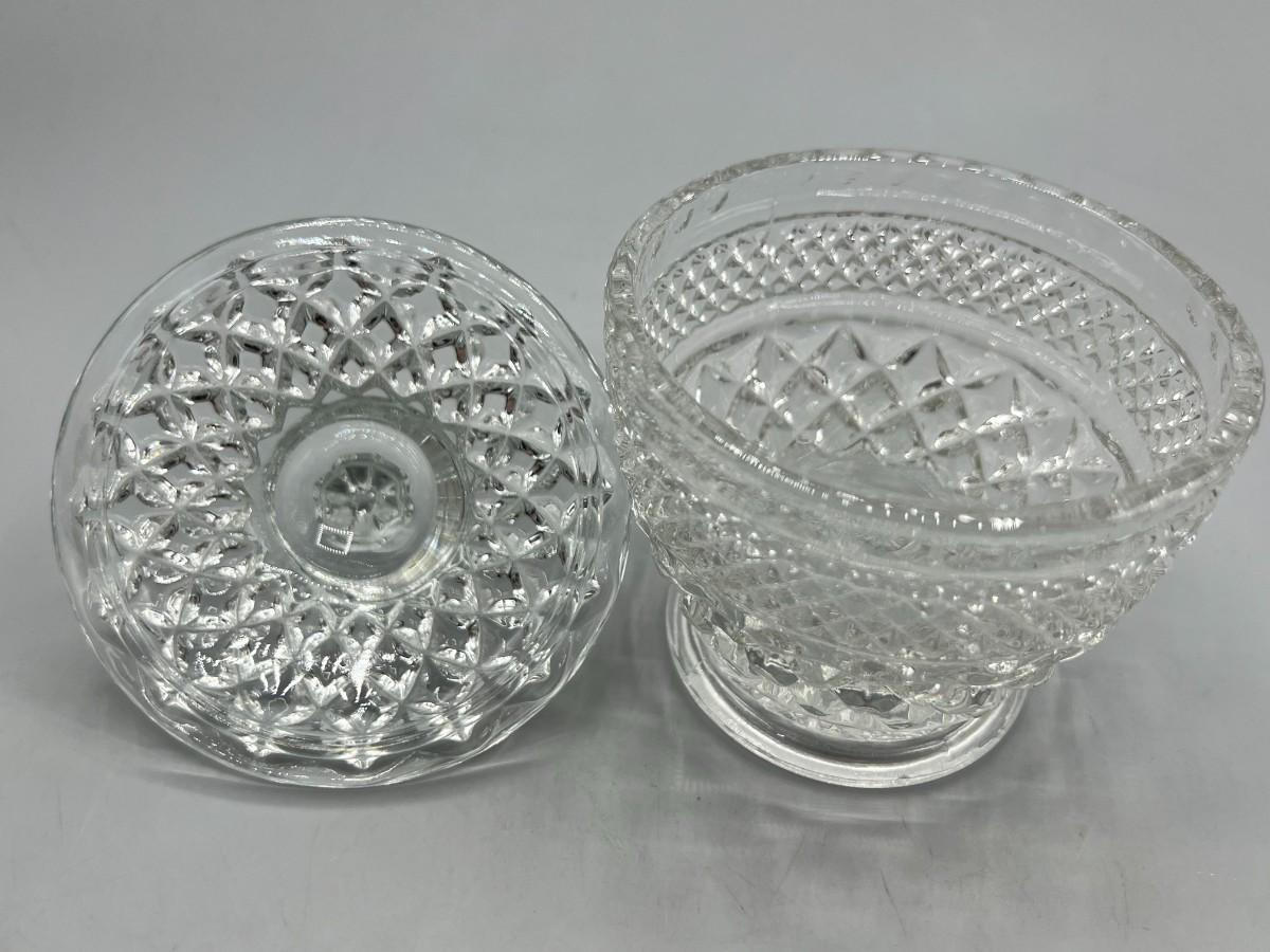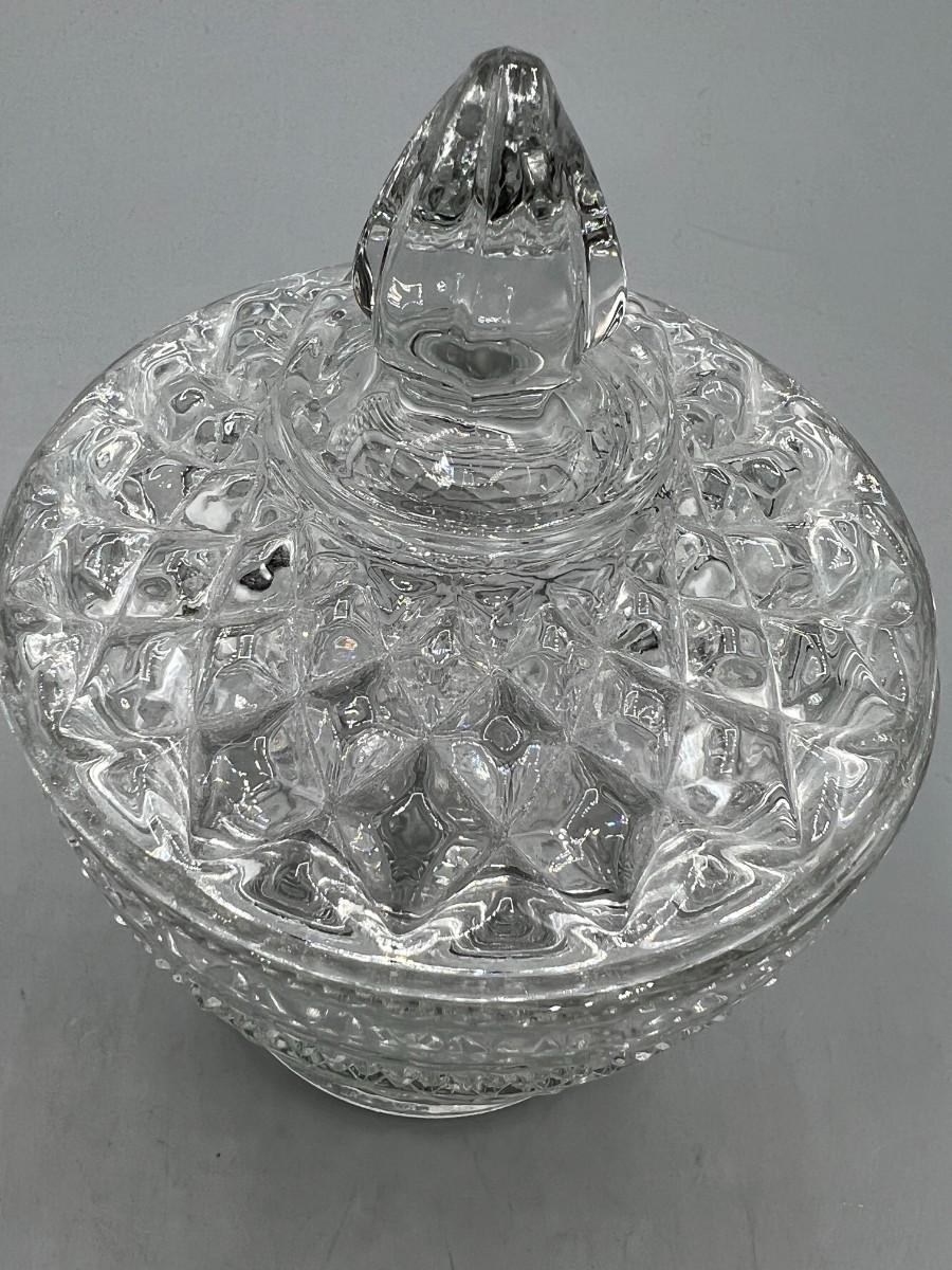 Small Mid Century Modern Crystal Glass Textured Lidded Candy Bowl