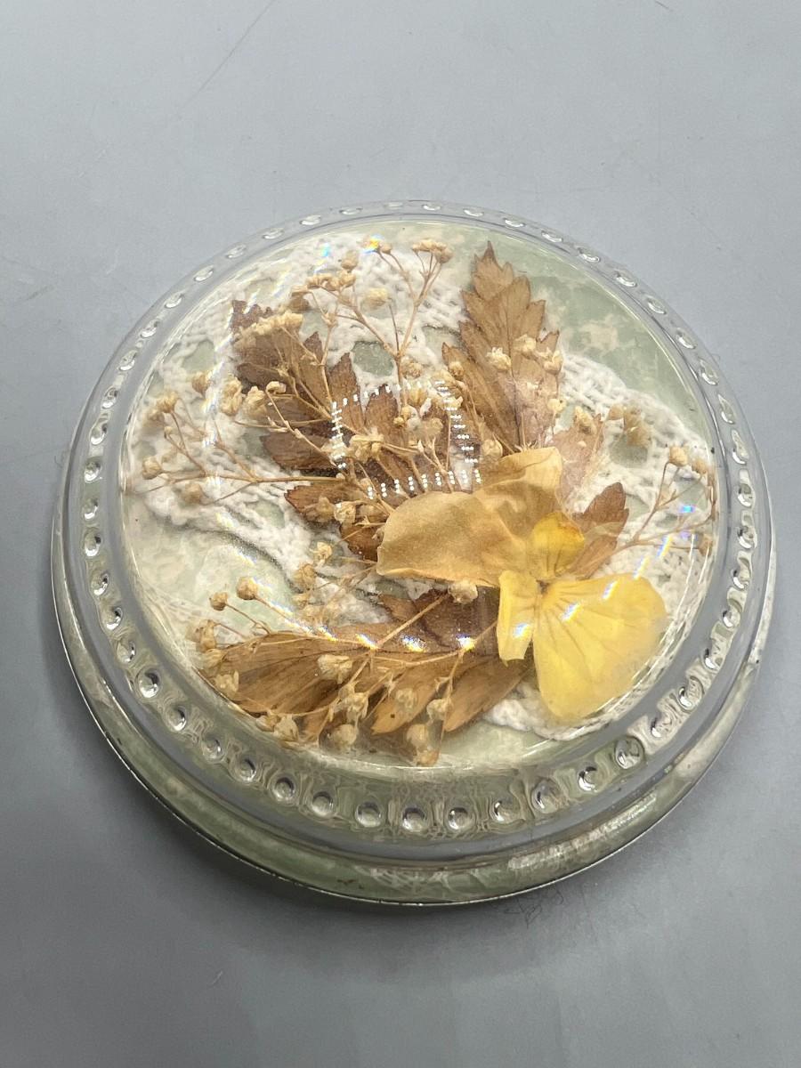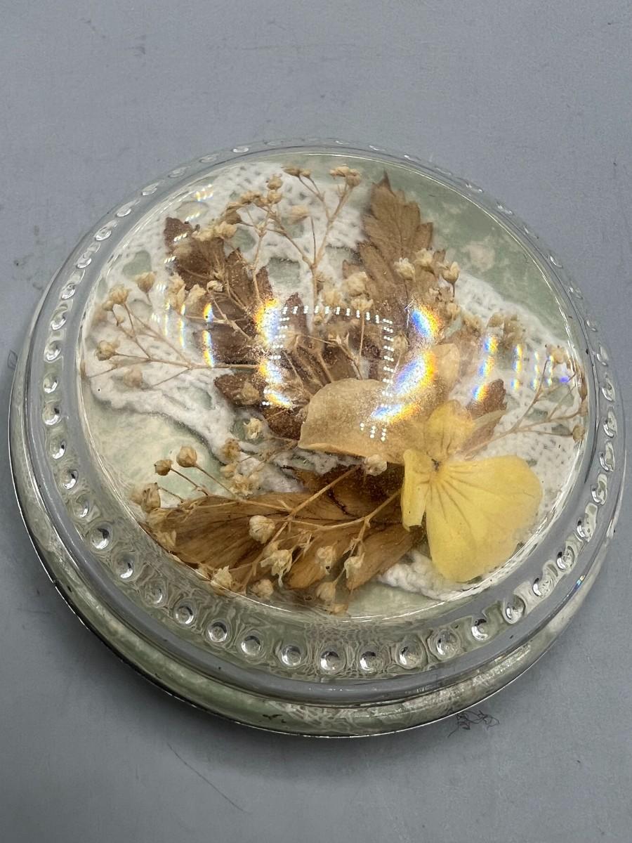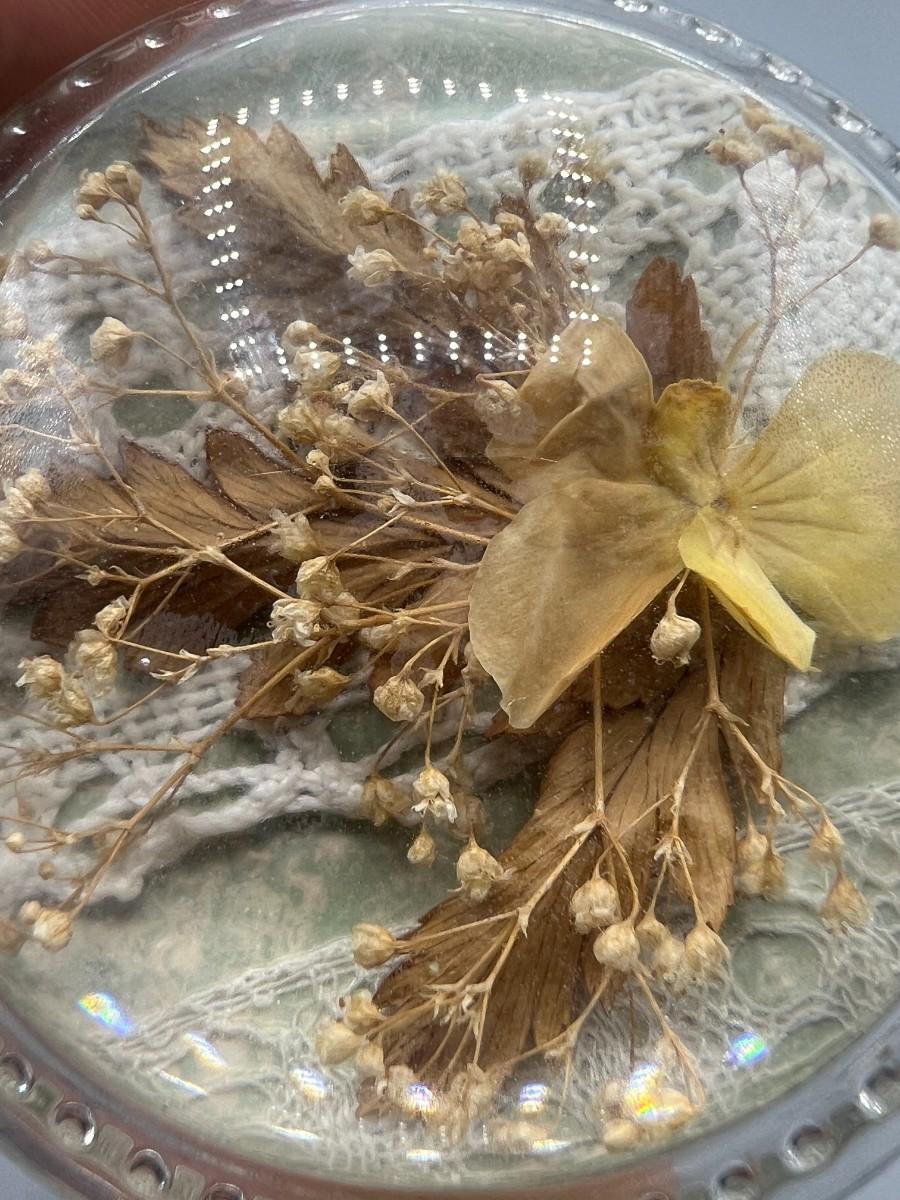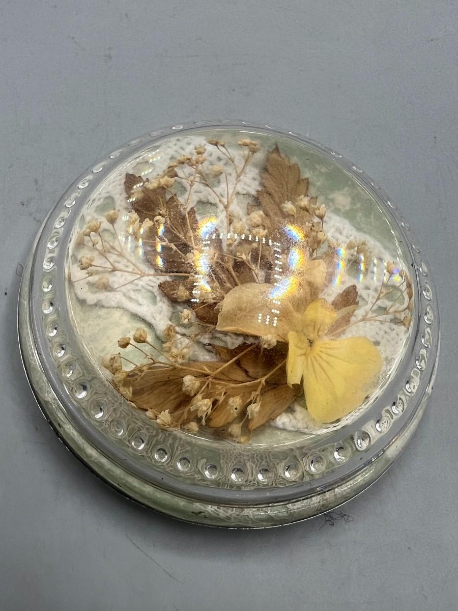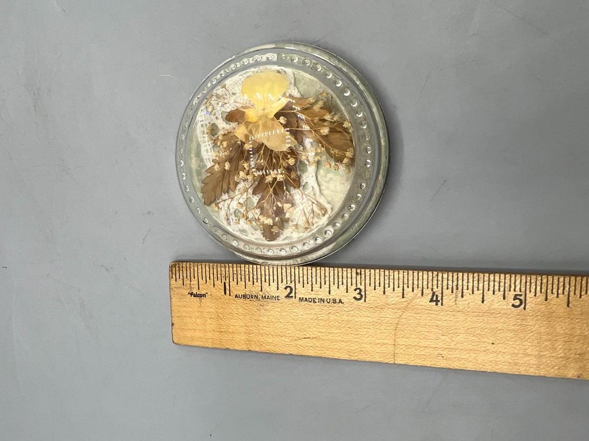 Vintage Art Deco Style Encased Dead Flowers in Glass Dome Paperweight