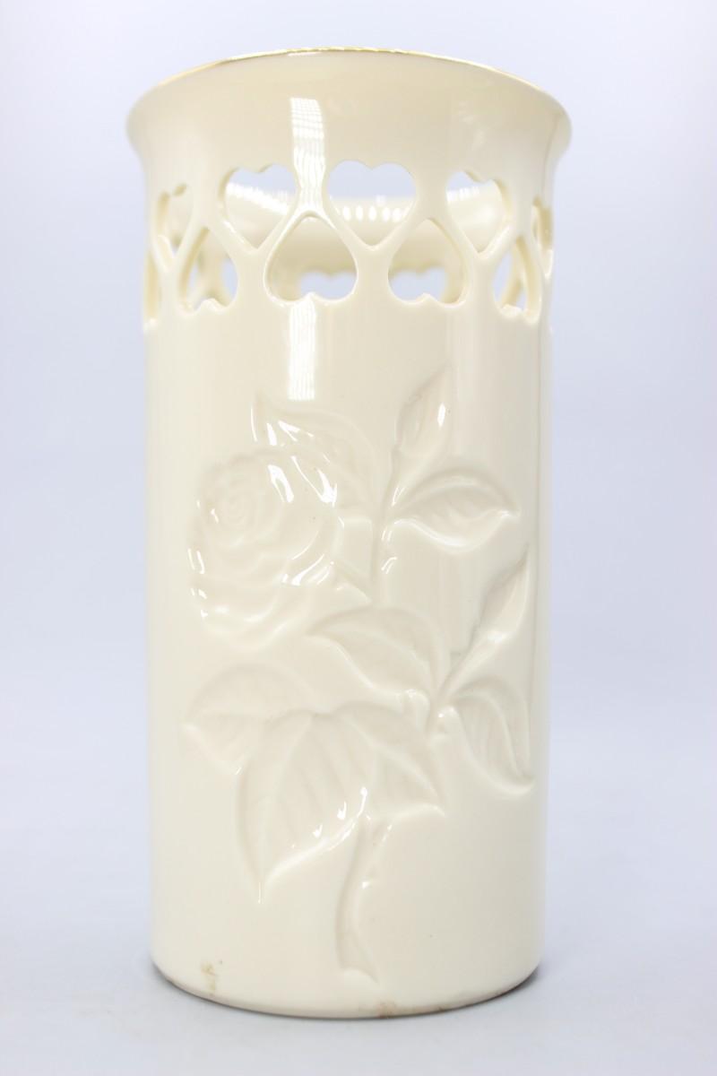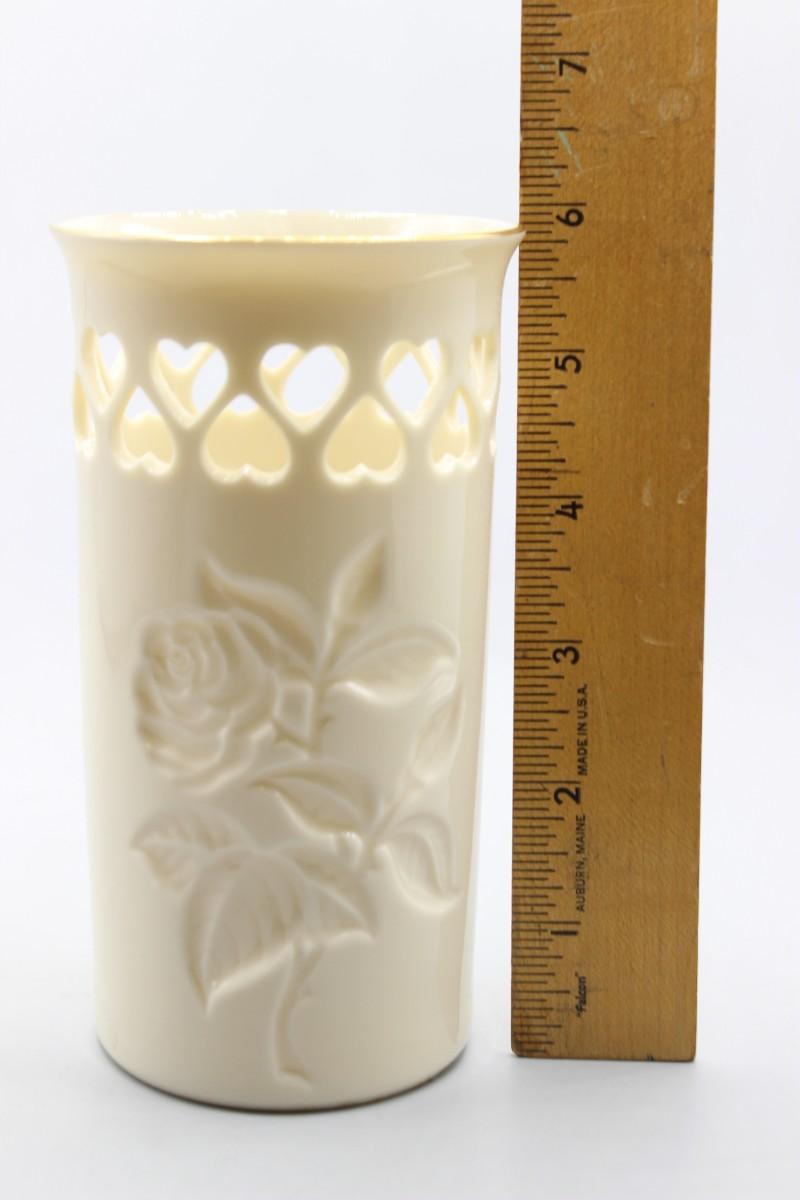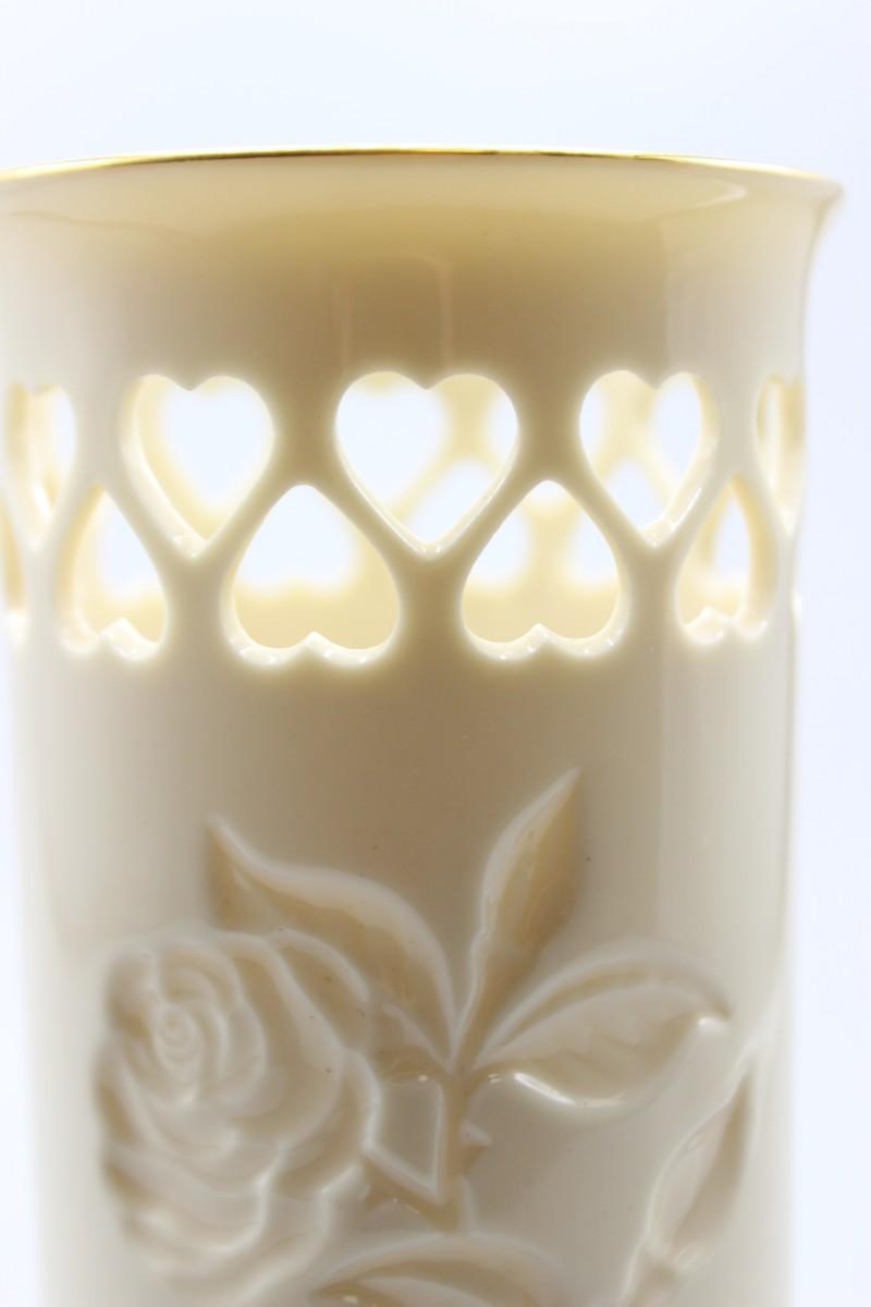Vintage Lenox Intaglio Rose Pierced Heart Gold Trim Flower Vase