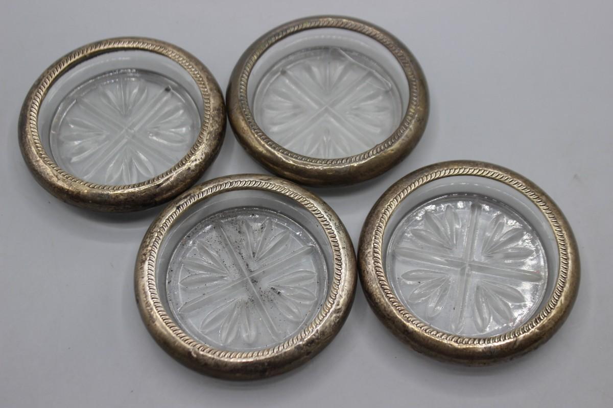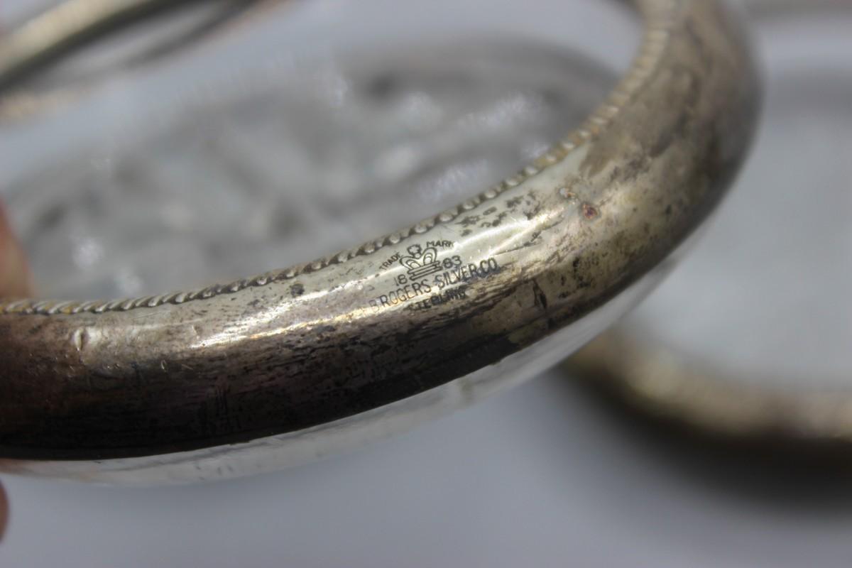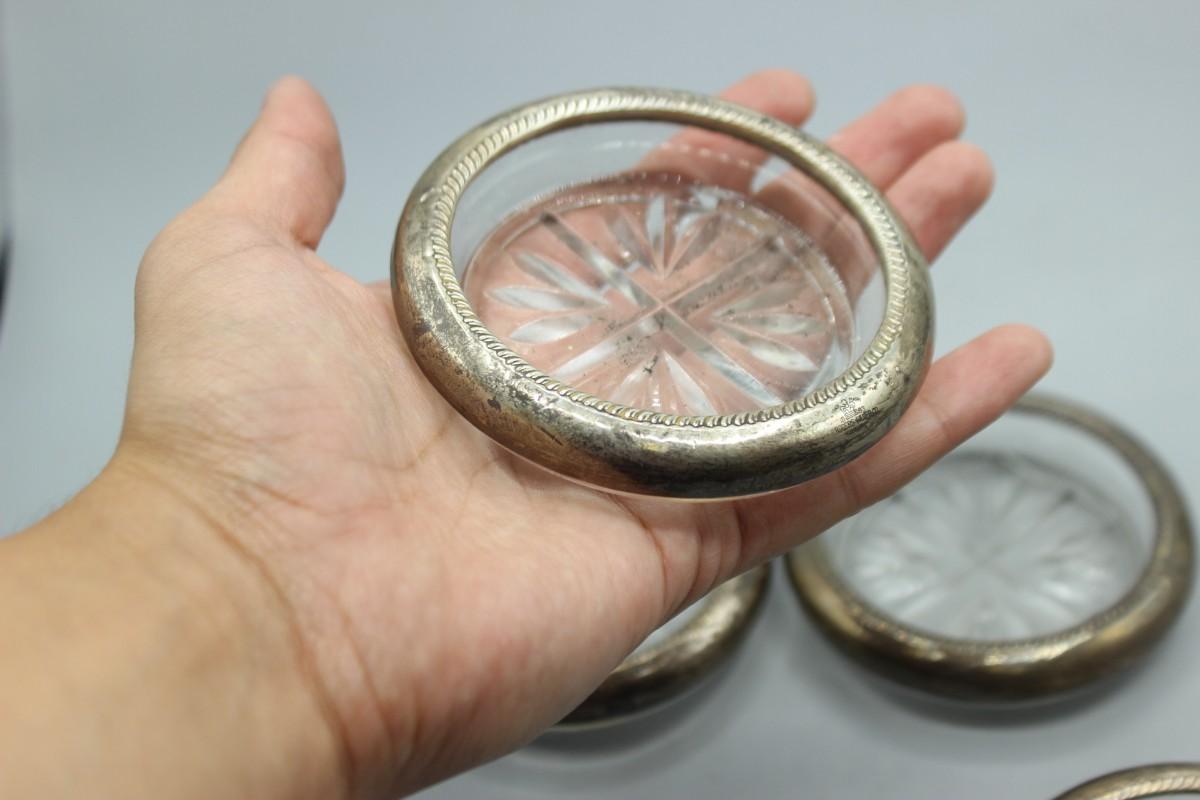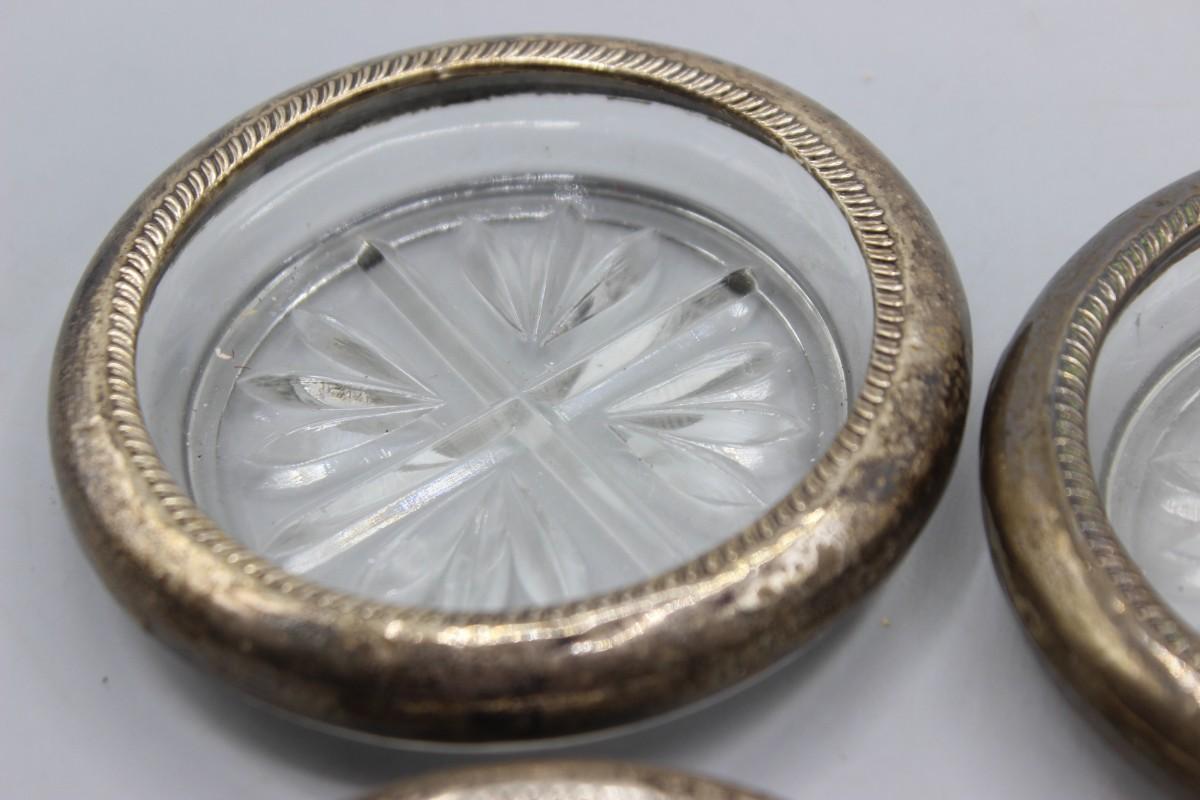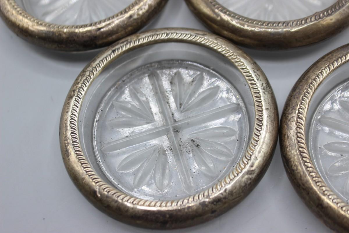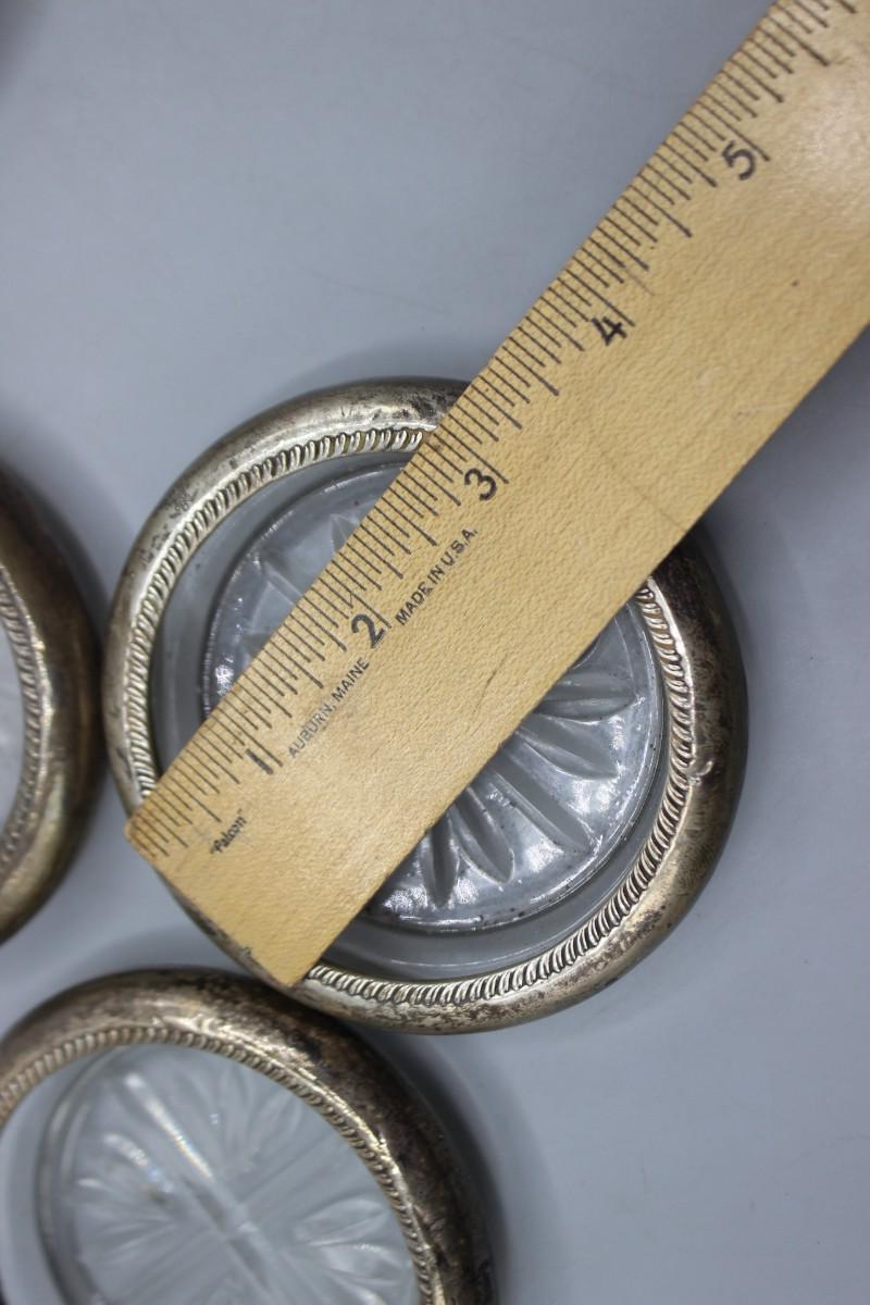 Vintage Rogers Silver Co. Sterling Silver Rim Glass Coasters