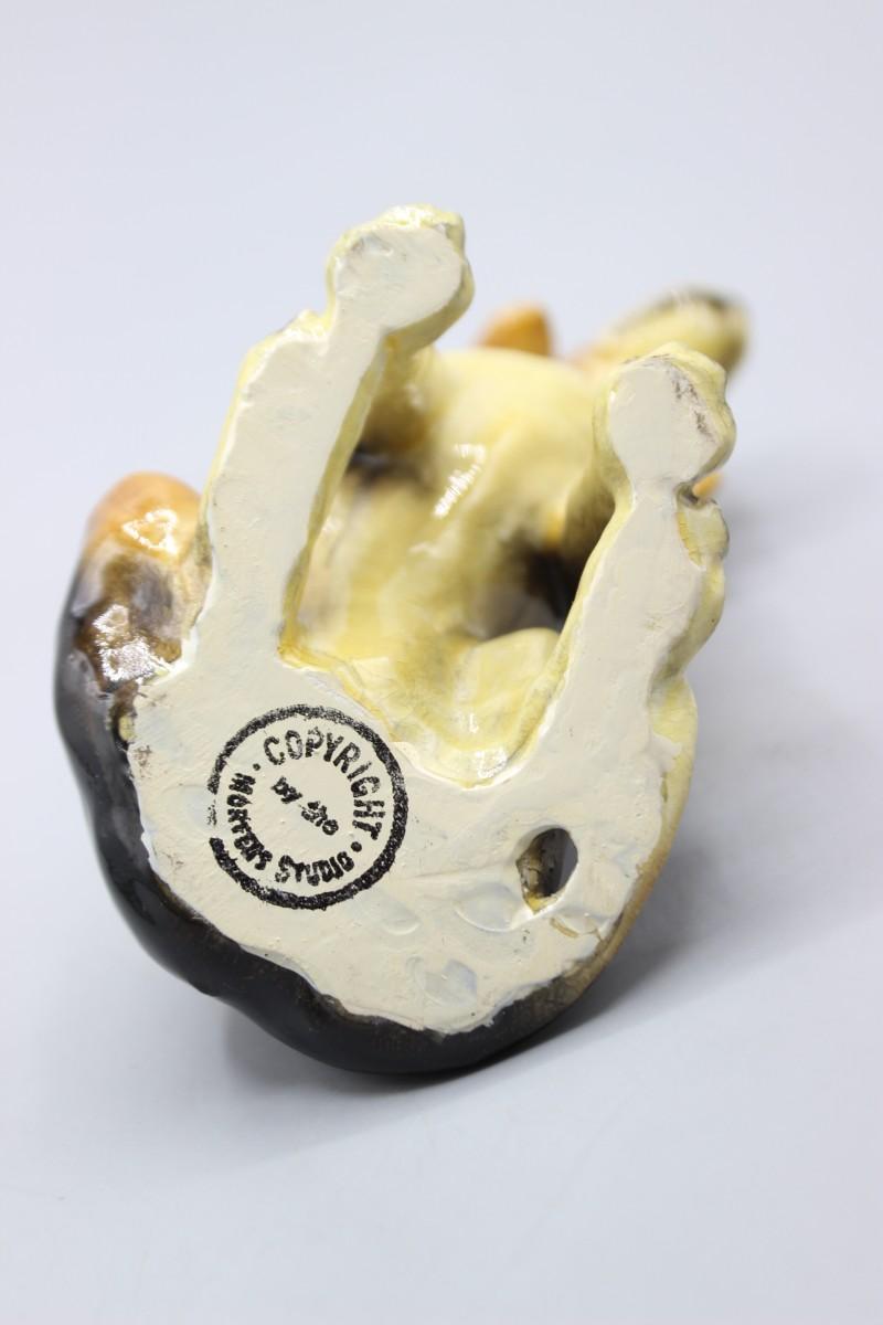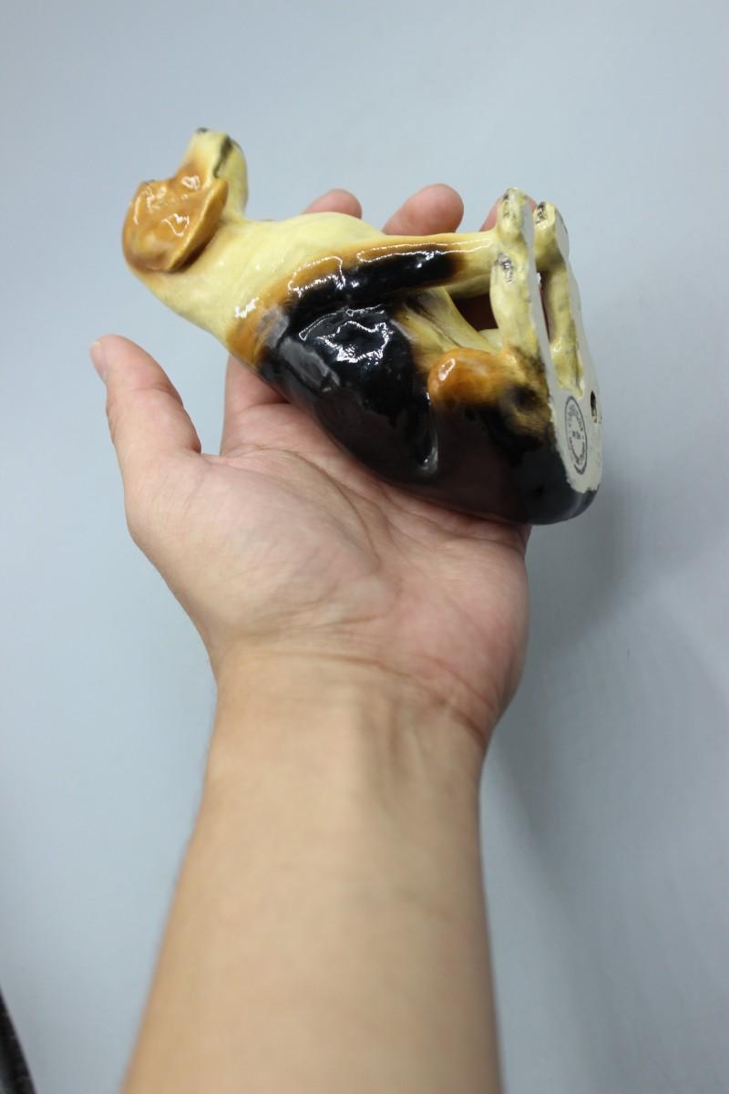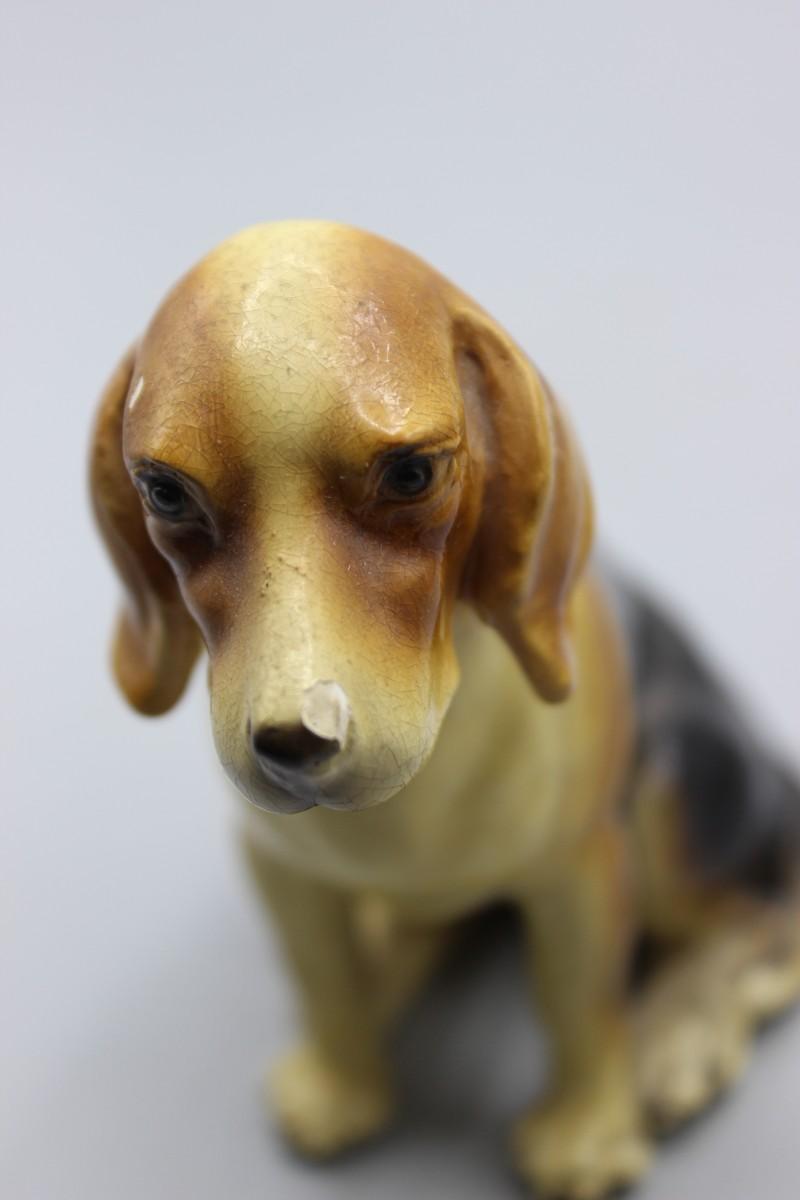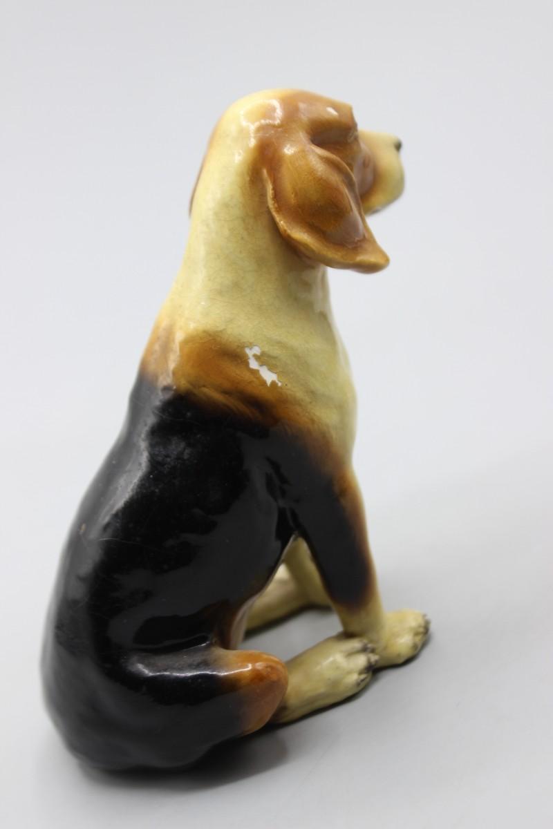 There are two light areas that have scraped off paint on the dog figurine, but there is no other damage and in good collectible condition.