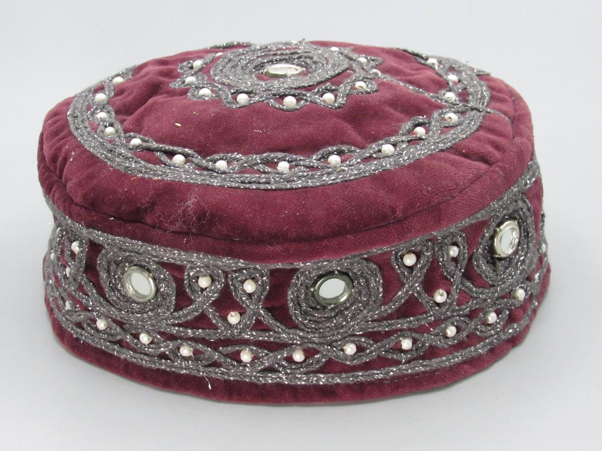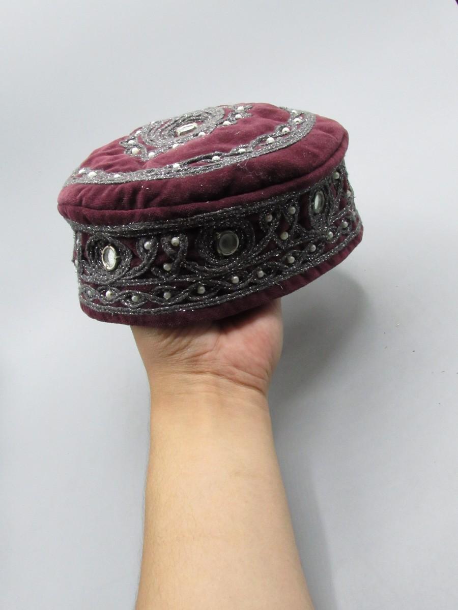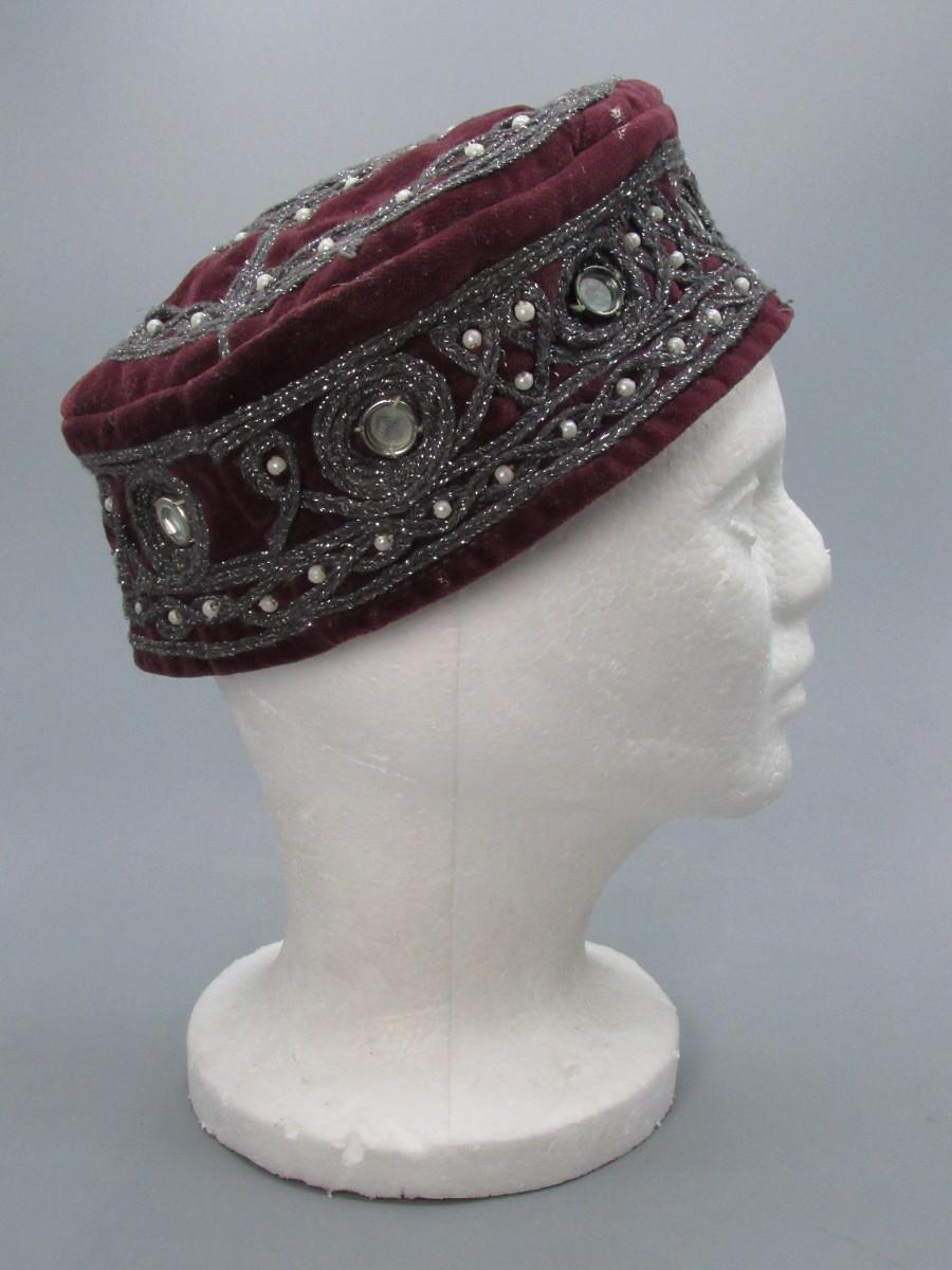 Vintage Fez Style Traditional Headdress Burgundy Cap