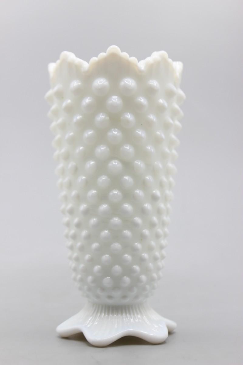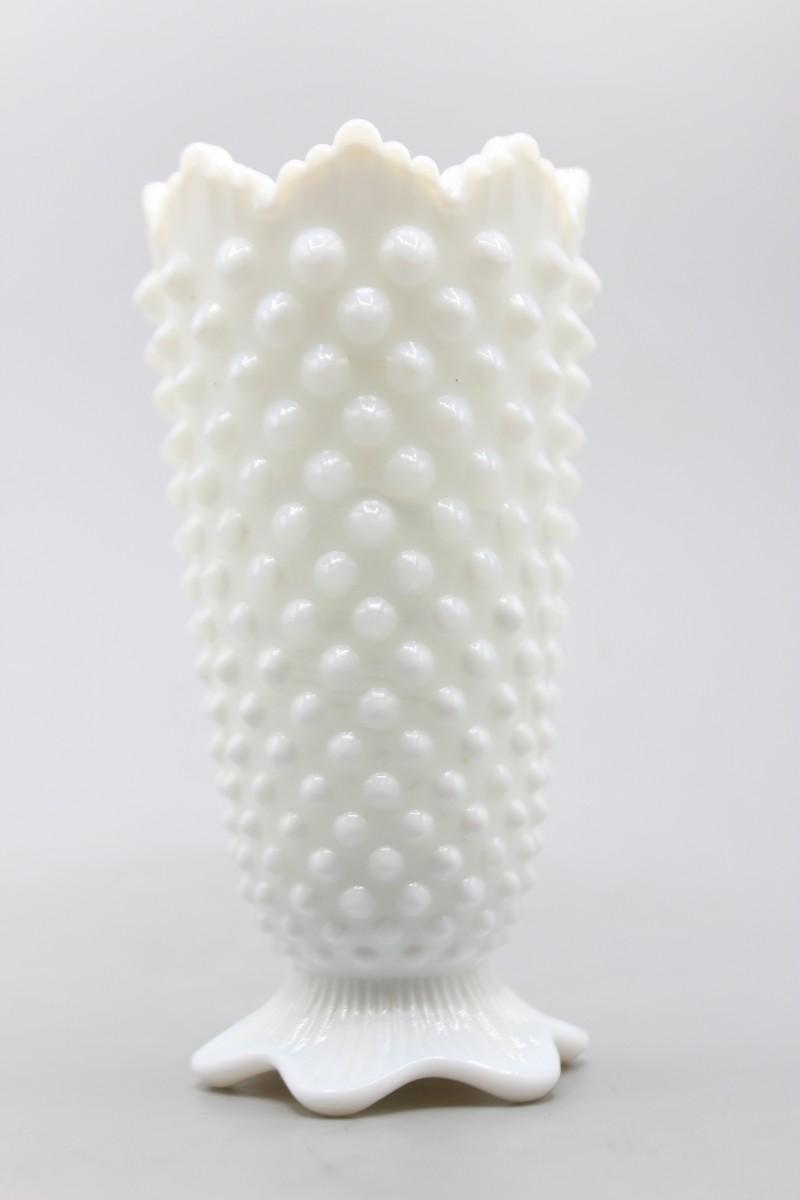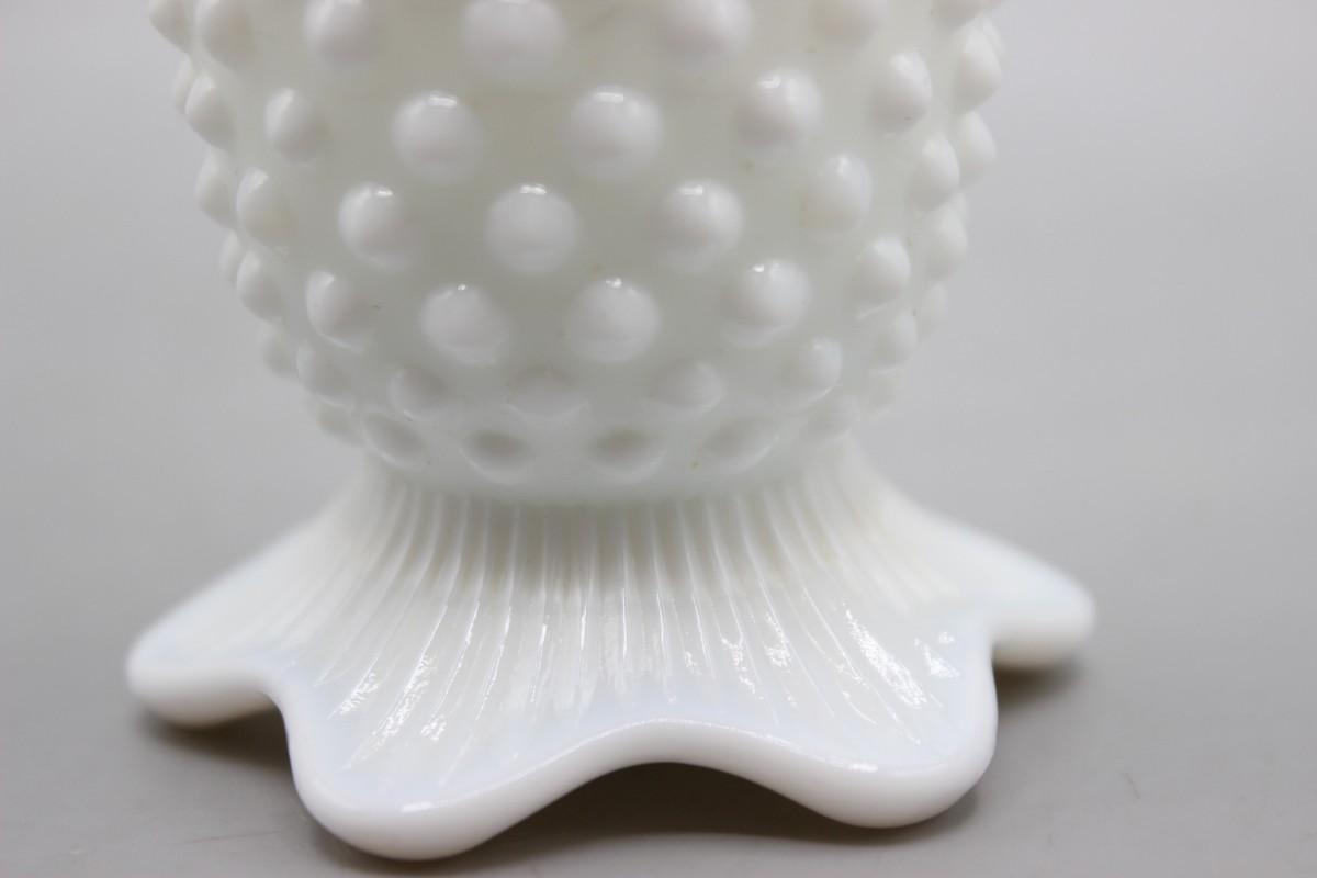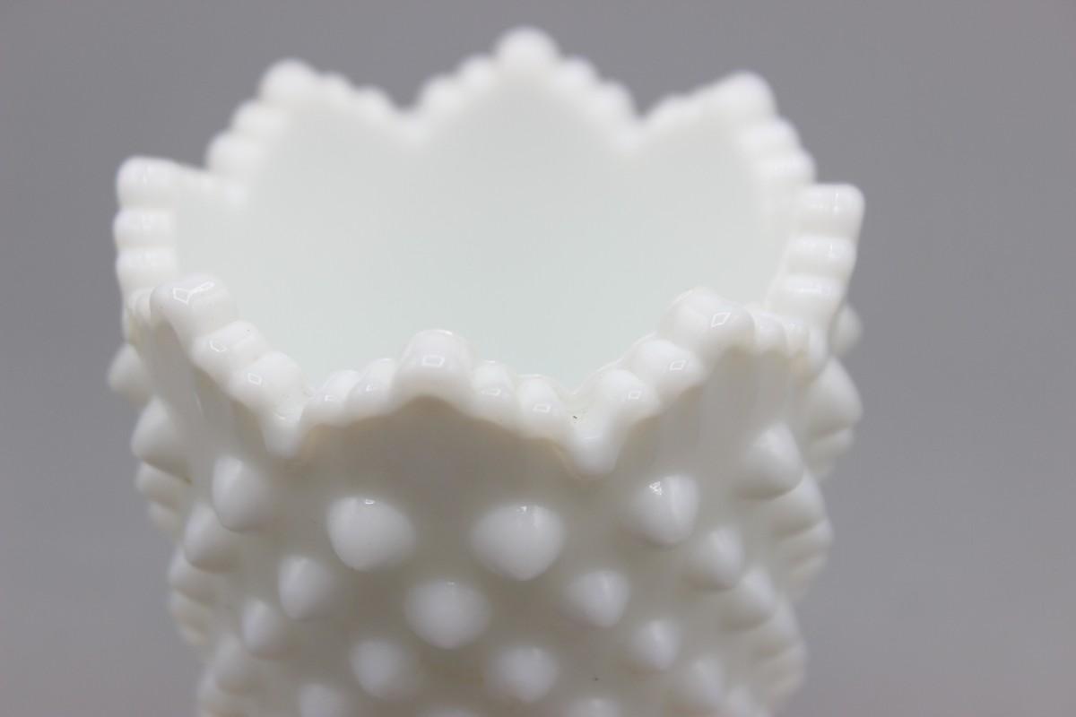Vintage Small Milk Glass Hobnail Mid Century Bud Flower Vase