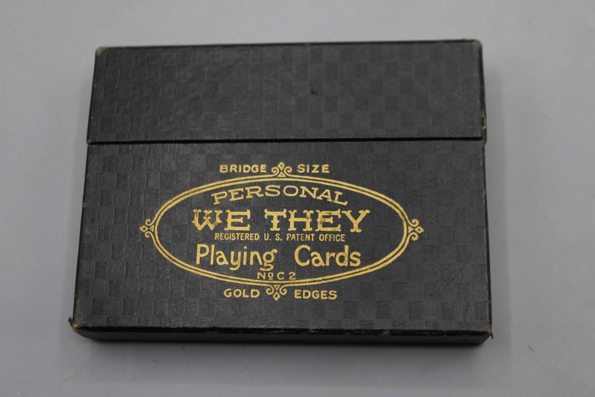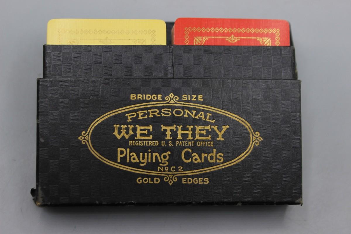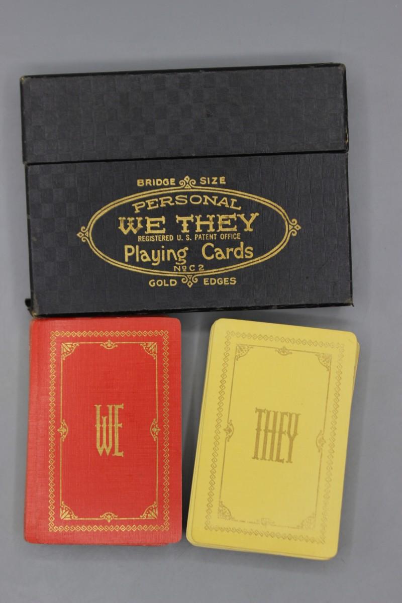 Vintage Novelty Bridge Size Personal We They Playing Cards Gold Edges Set