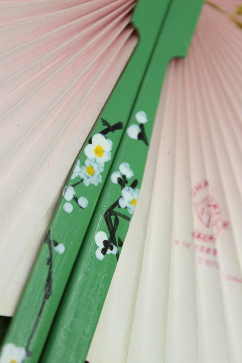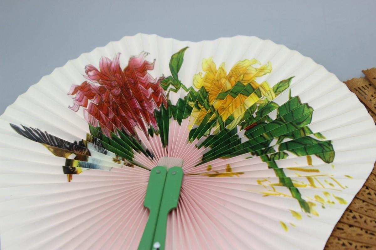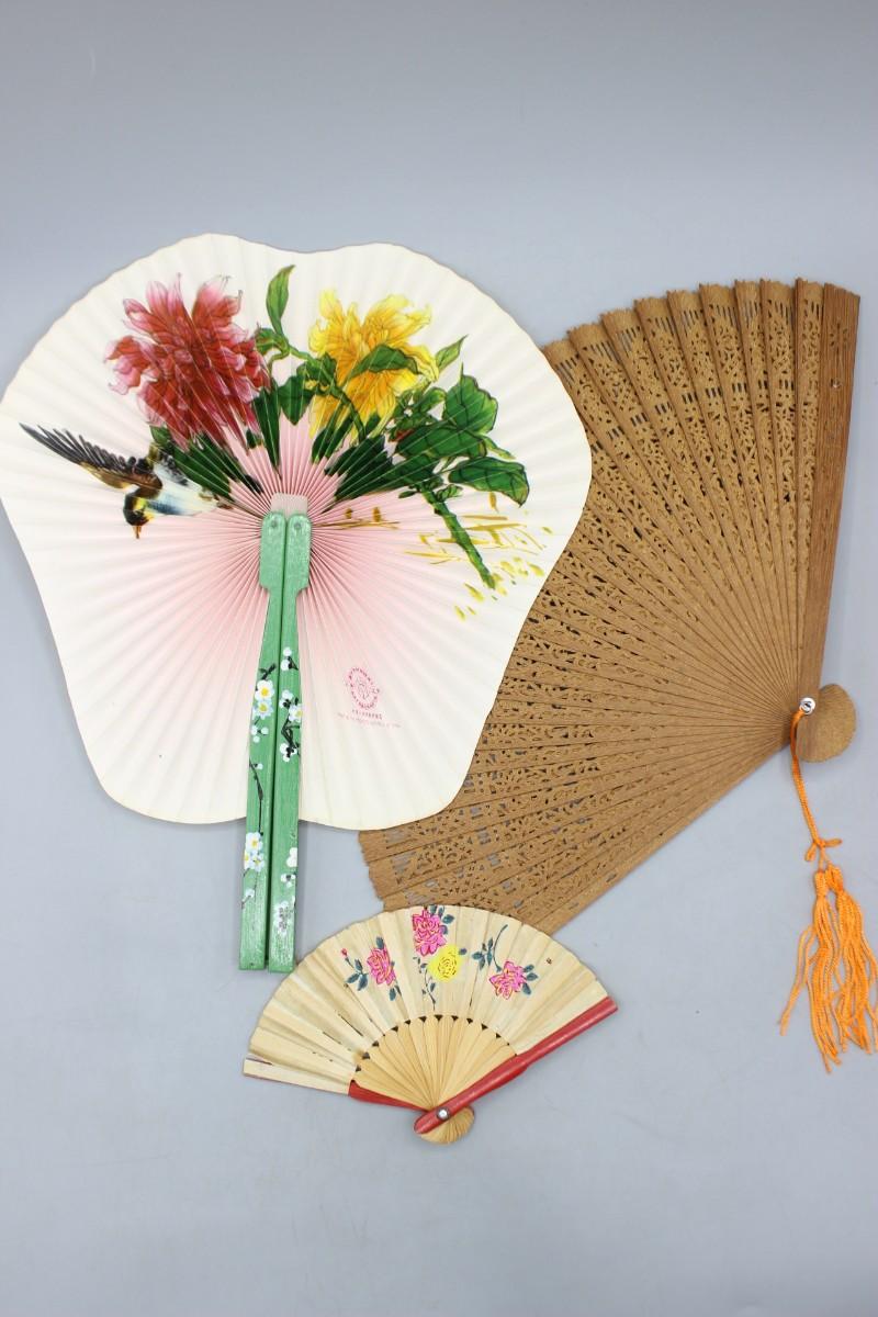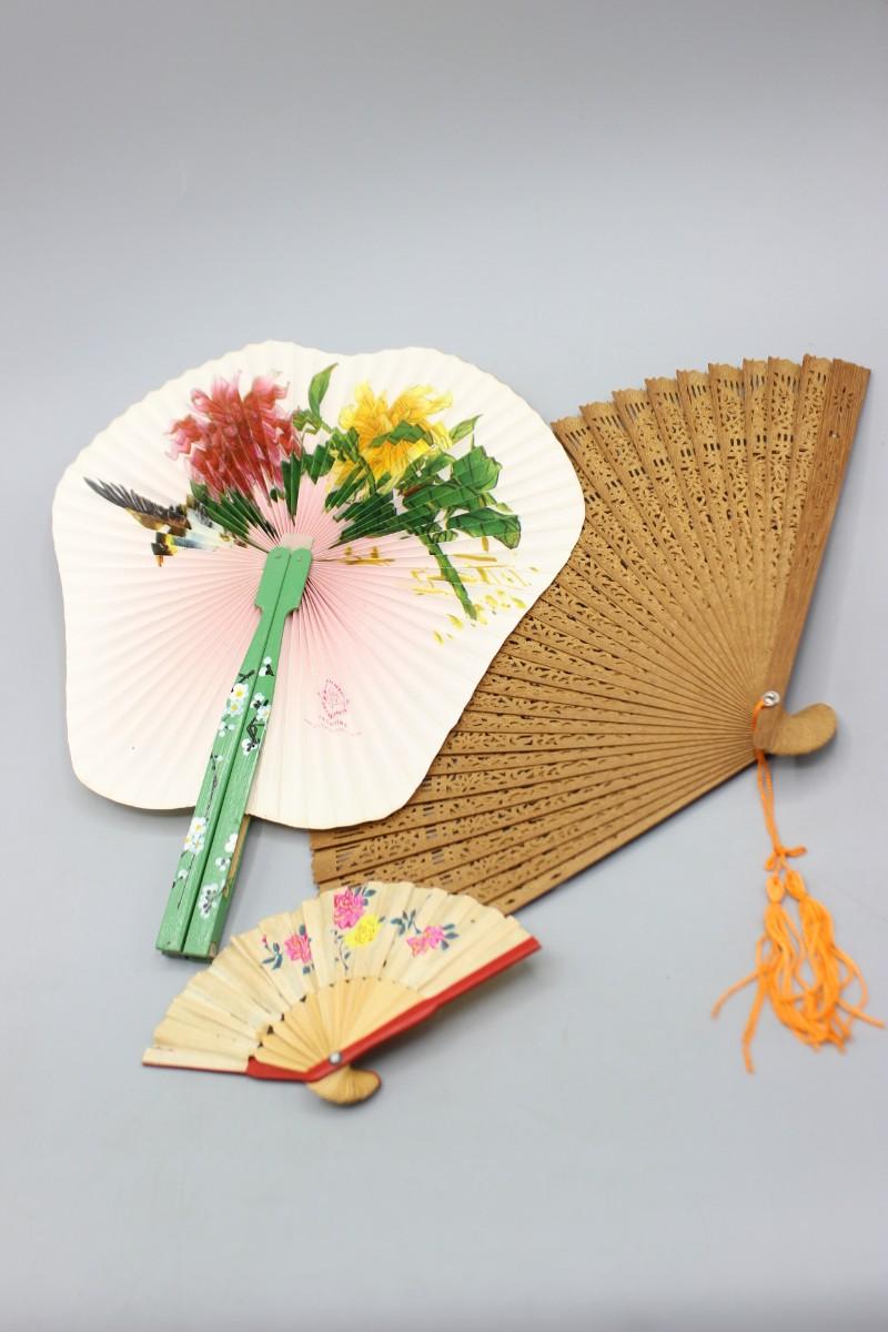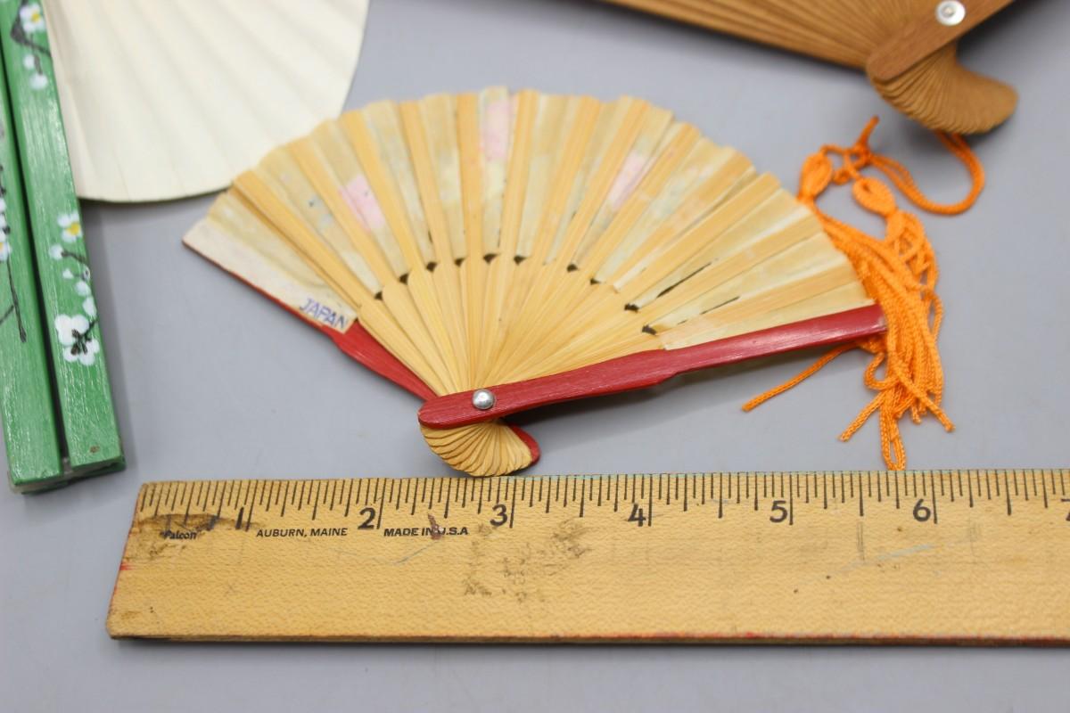 Vintage Shanghai Arts & Crafts People's Republic of China Folding Fan, Miniature Japanese Fan, & All Wood Oriental Design Fan