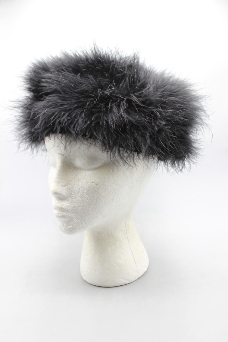 Vintage Nell New York Gray Furry Trimmed Faux Feathered Fashion Womens Cap