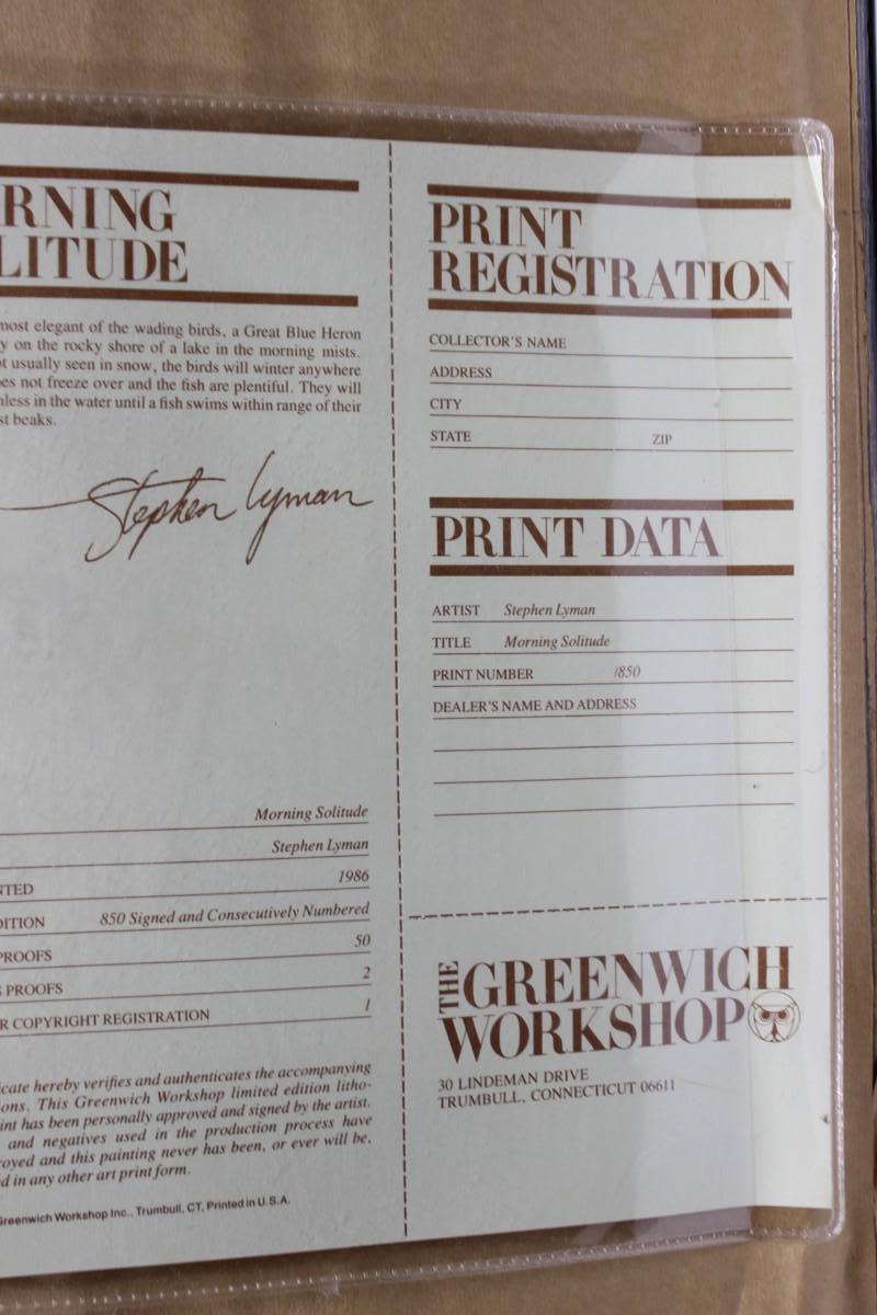 Stephen Lyman Morning Solitude Great Blue Heron Print on Paper Numbered & Signed