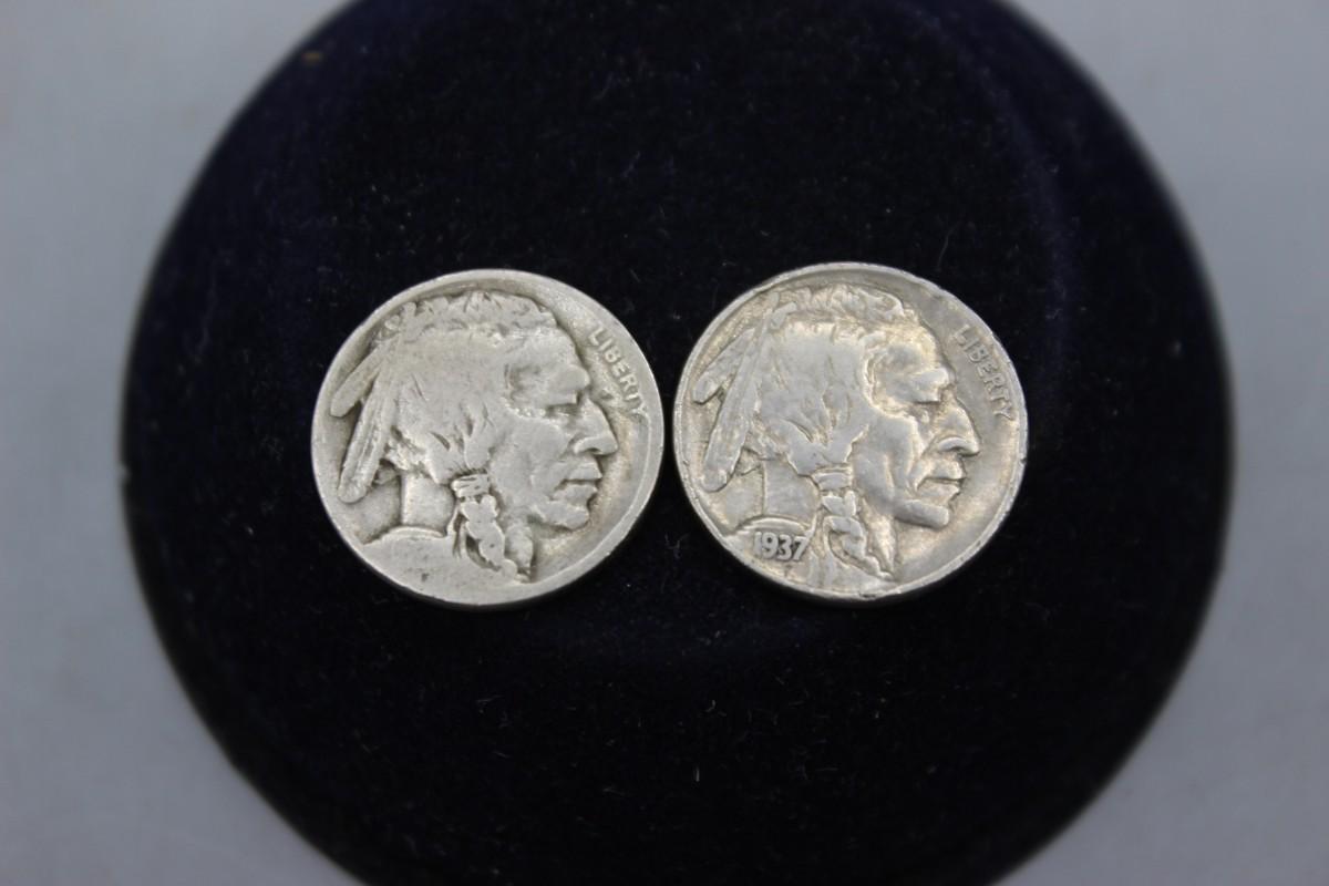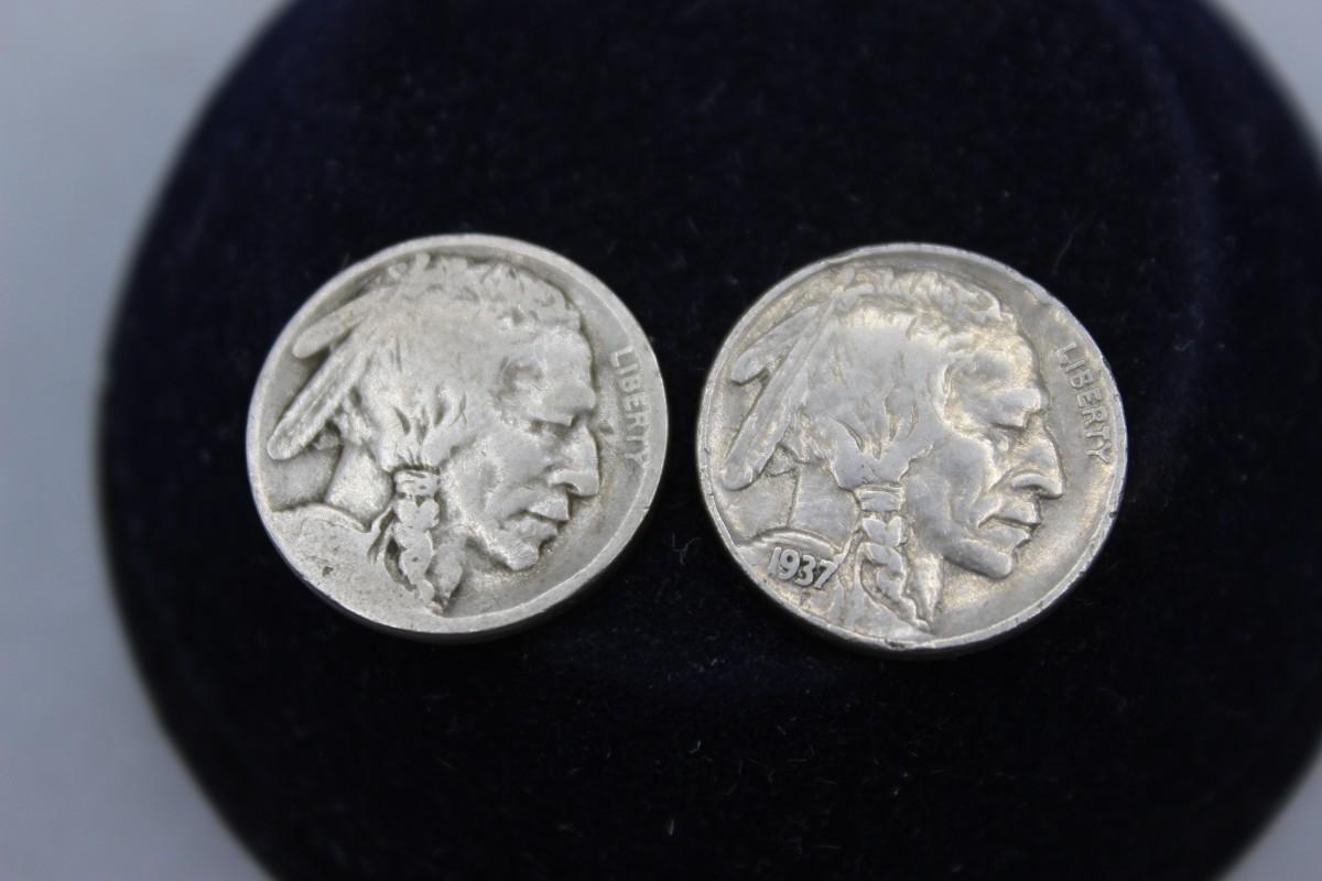 Vintage 1937 Buffalo Indian Native American Head Nickels