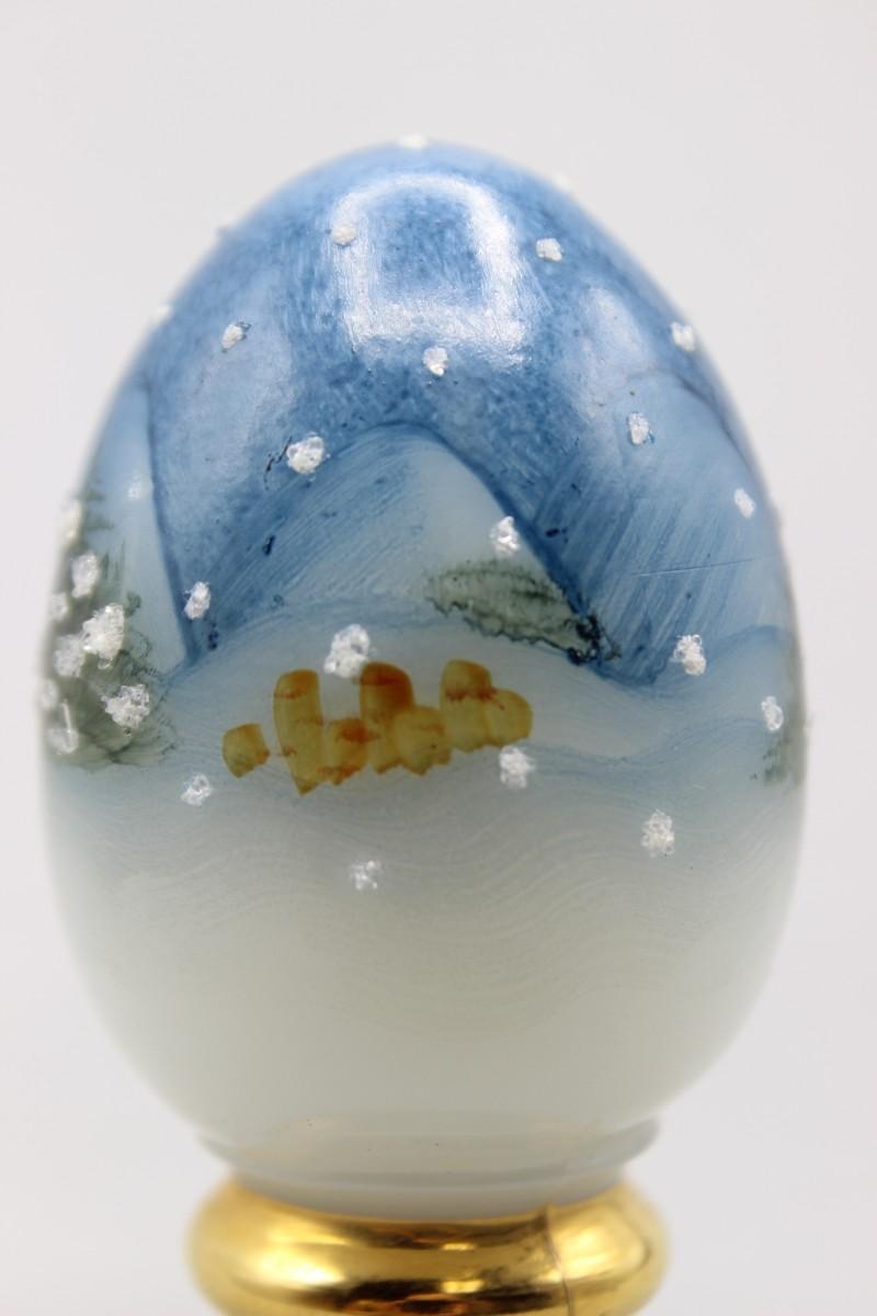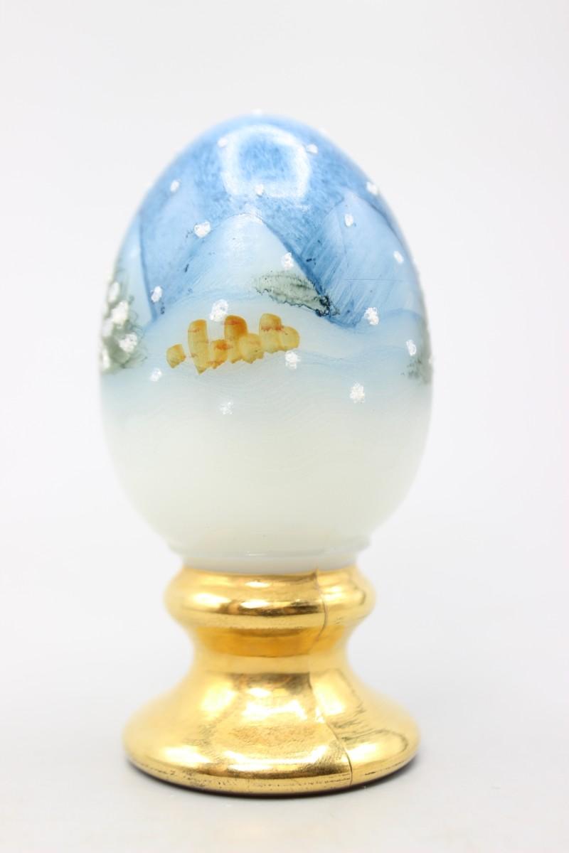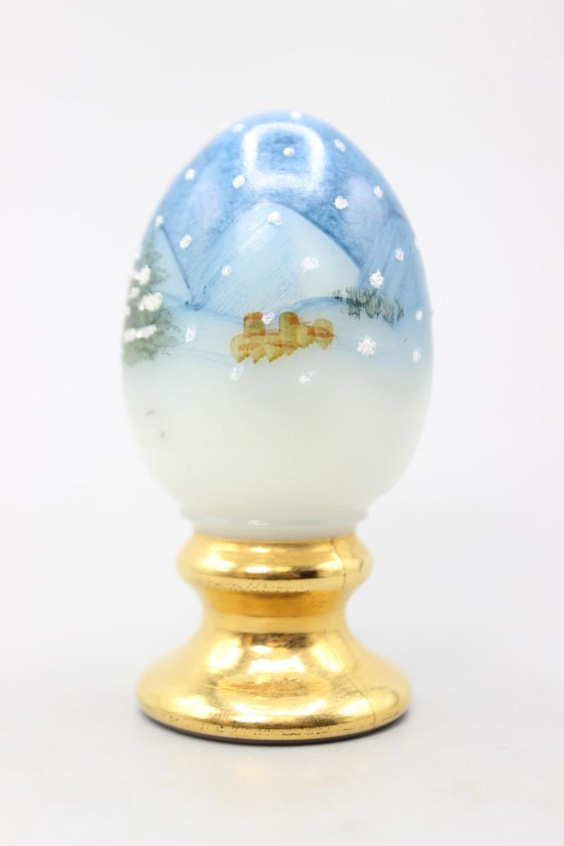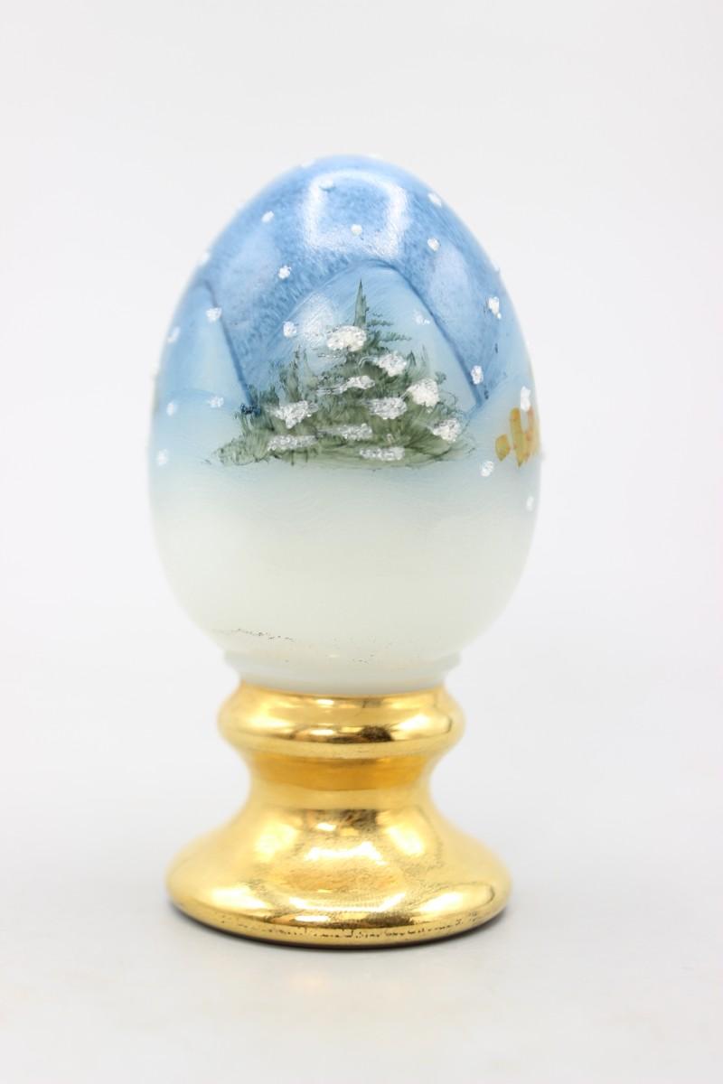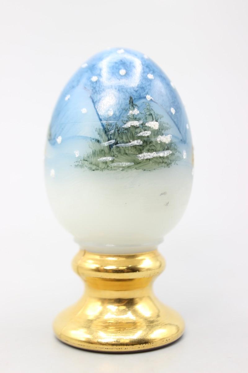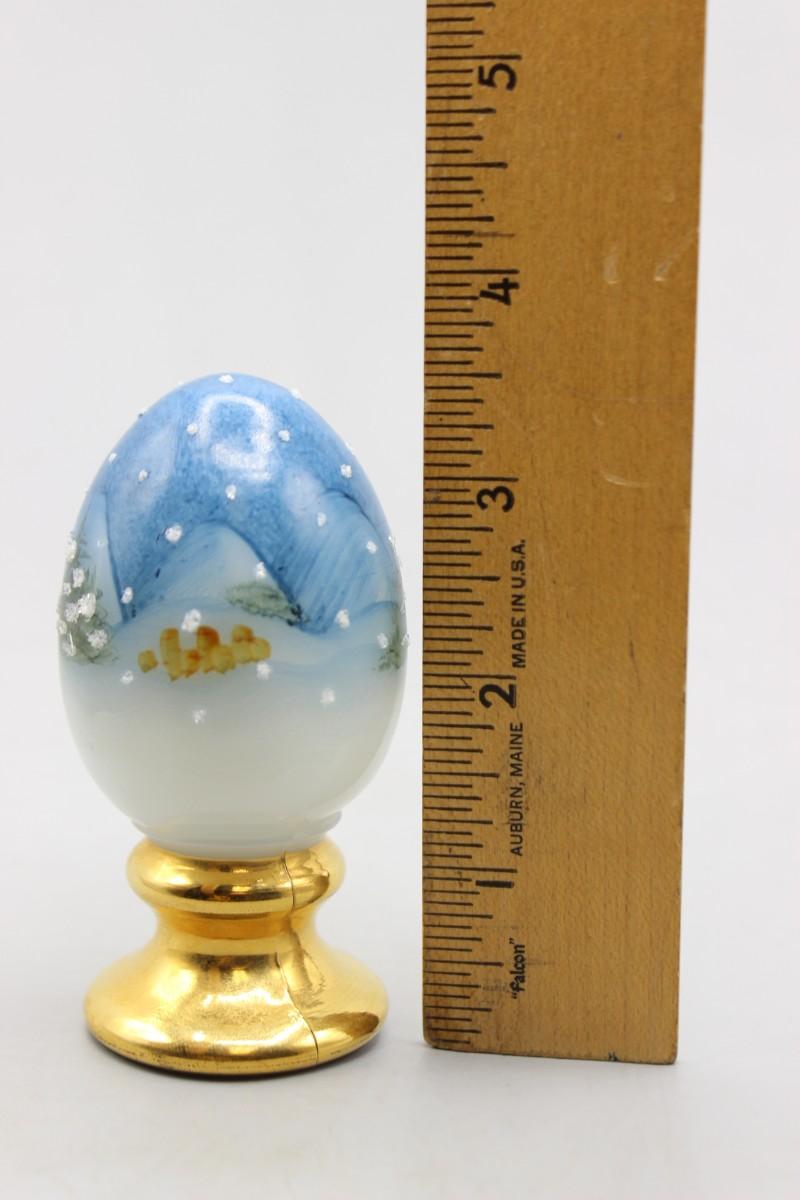 Vintage Fenton Hand Painted Pedestal Egg Snowing Christmas Pine Tree Scenery Figurine