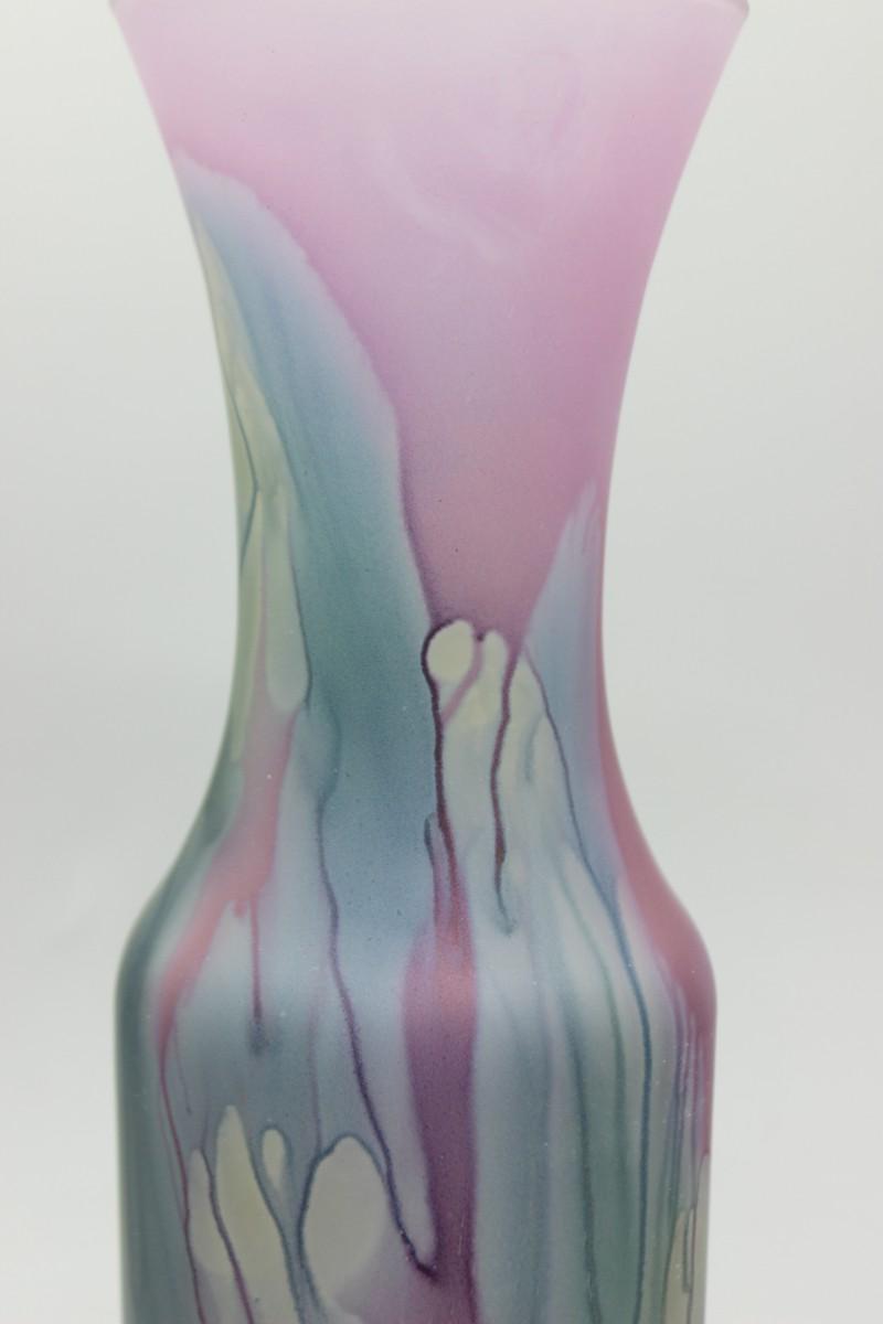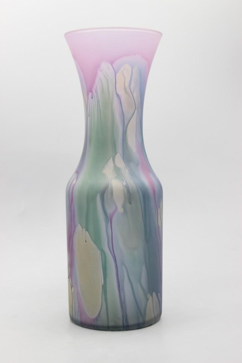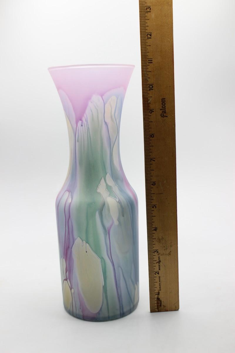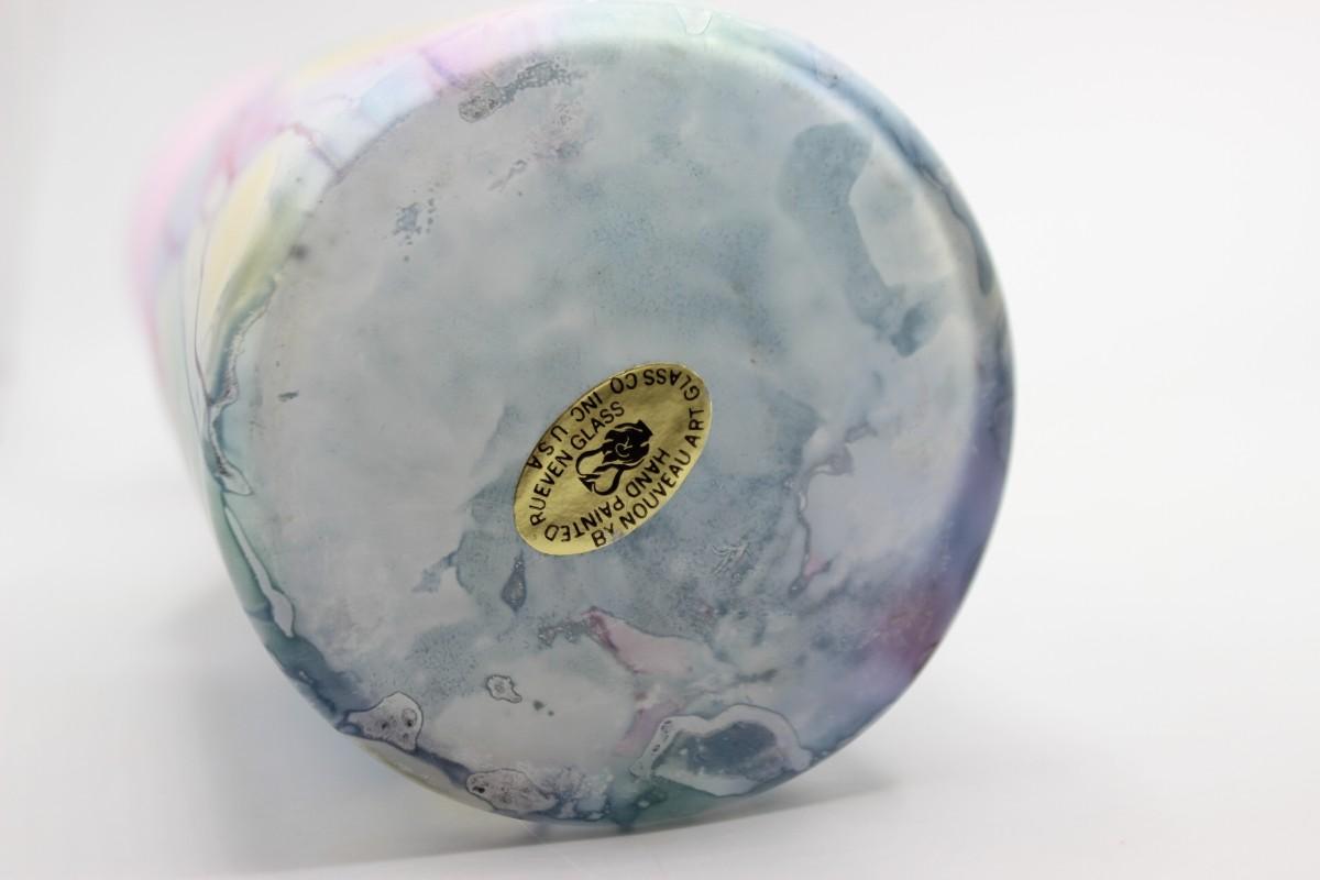 Vintage Hand Painted Colorful Drip Pattern Rueven Glass Nouveau Art Glass Co Inc. Flower Vase