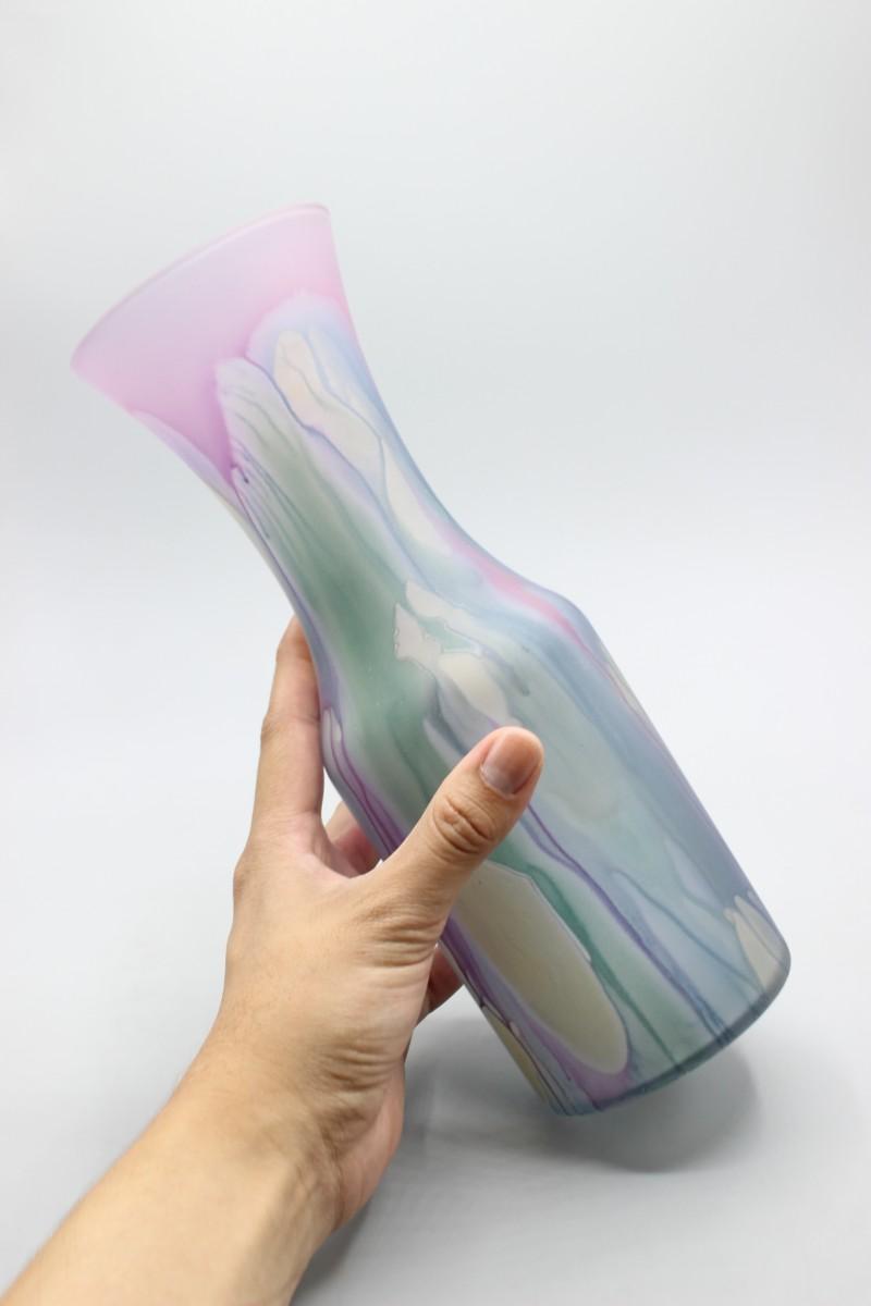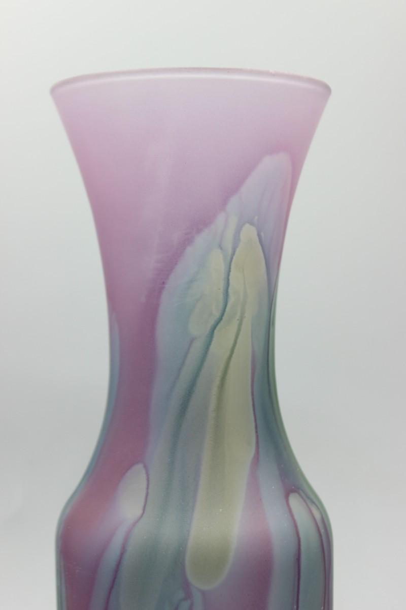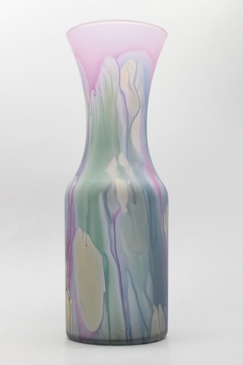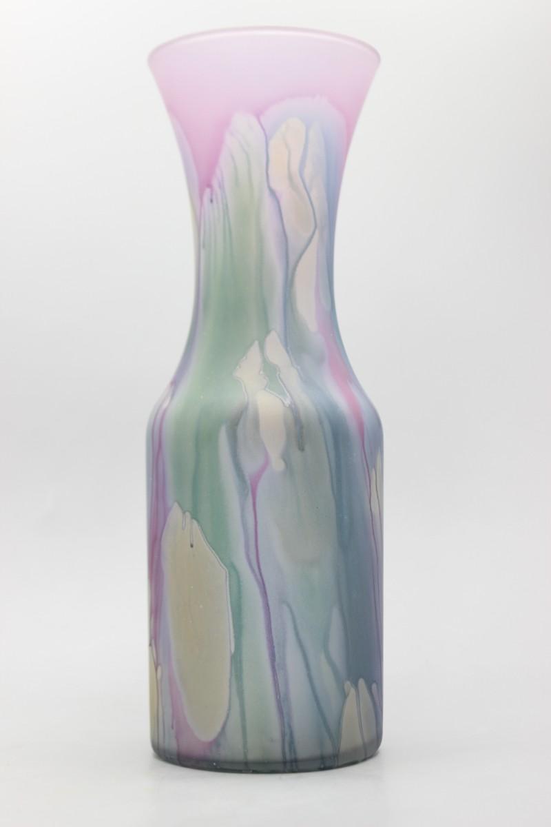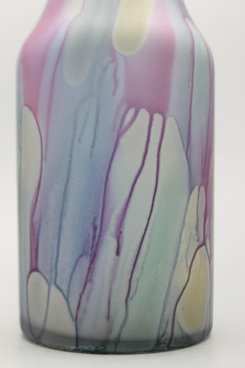 Vintage Hand Painted Colorful Drip Pattern Rueven Glass Nouveau Art Glass Co Inc. Flower Vase