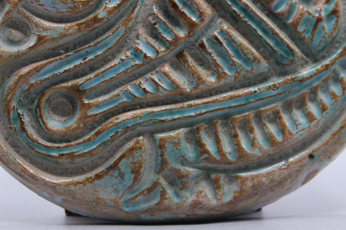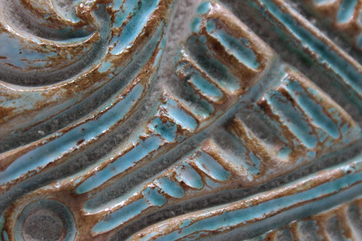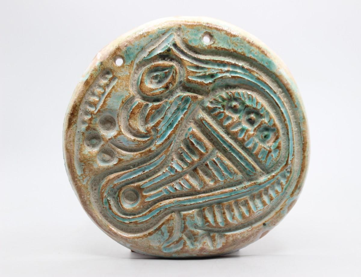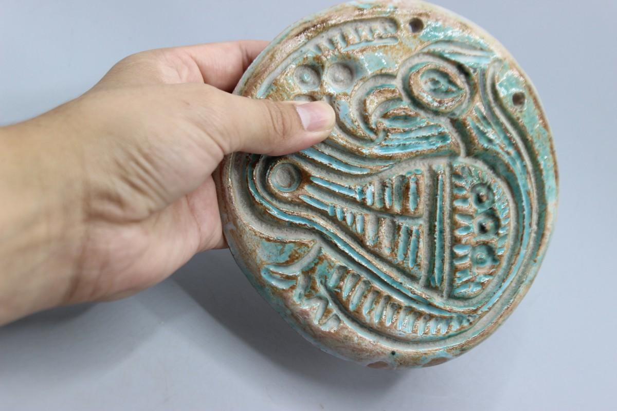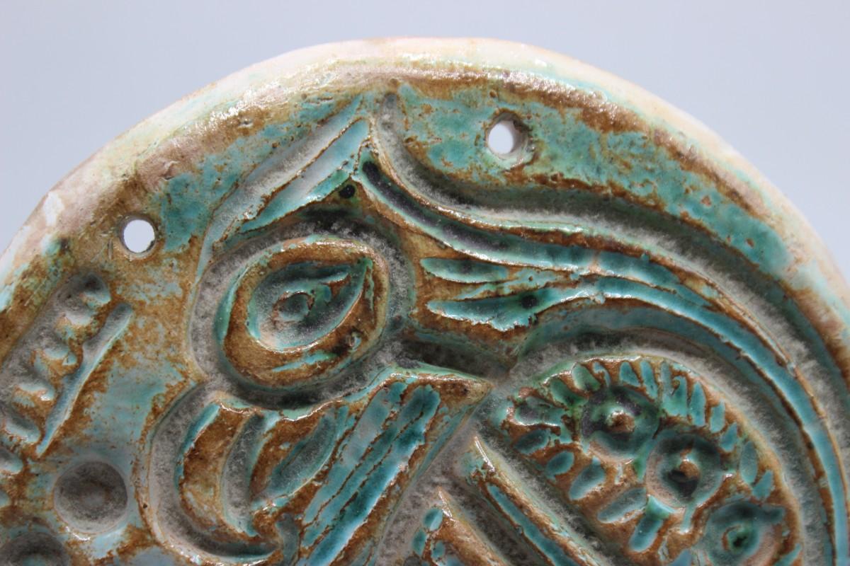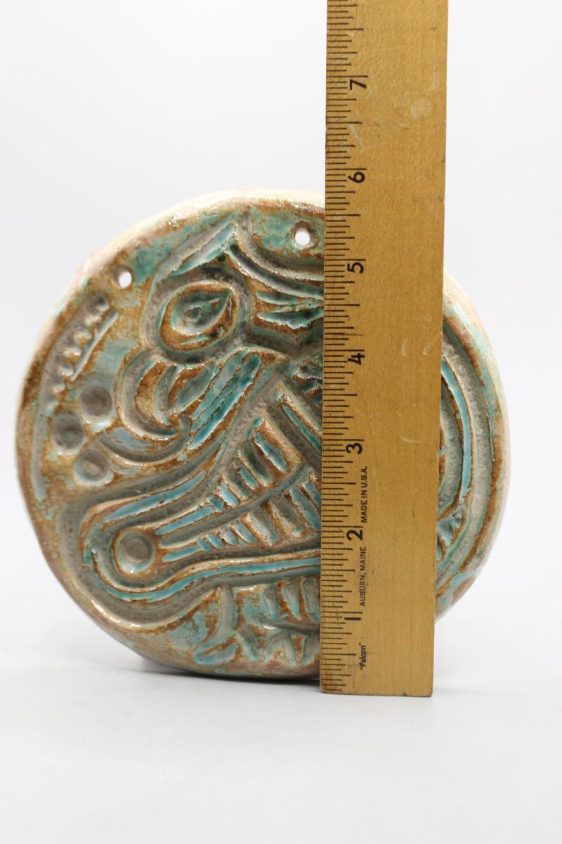 Retro Hanging Glazed Turquoise Color Pottery Art Hanging Trivet Piece