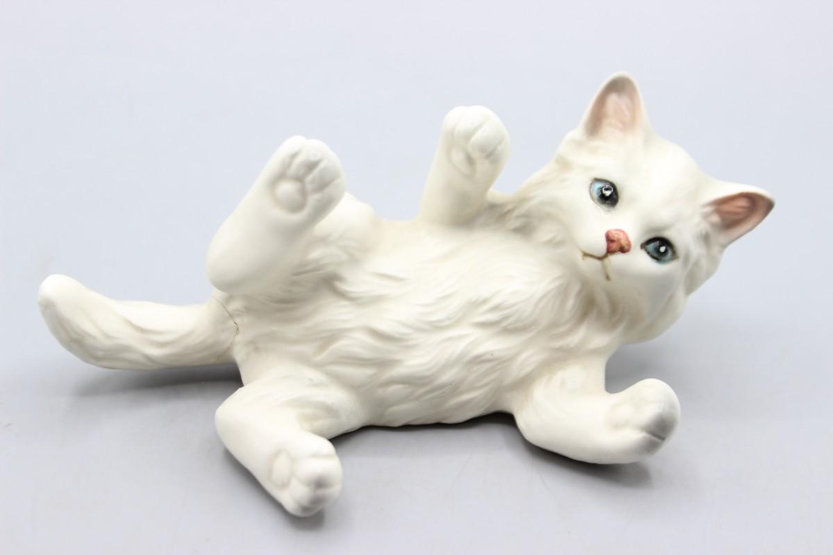 Vintage Lefton White Persian Cute Playful Kitten Figurine