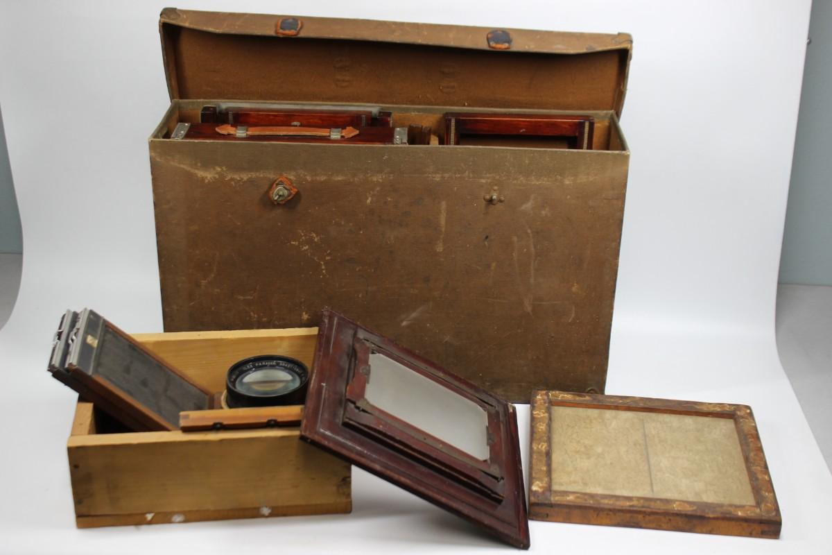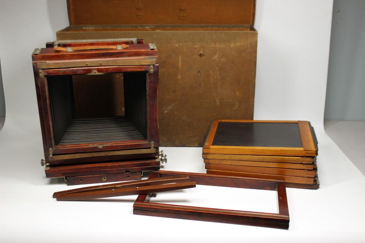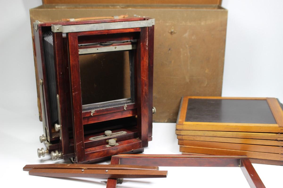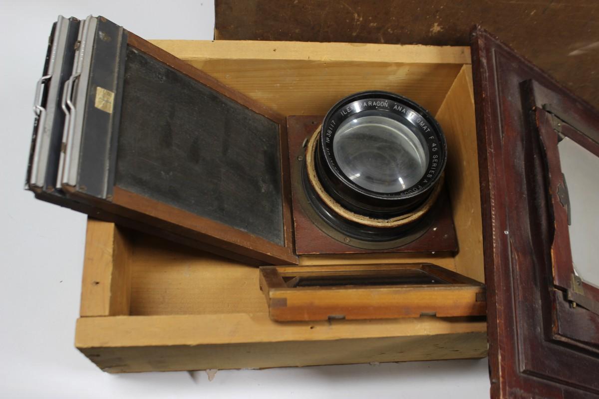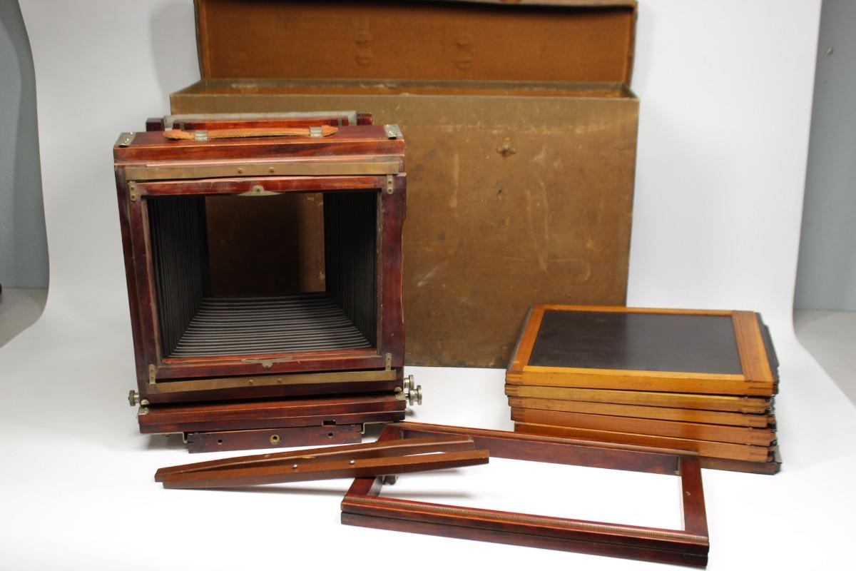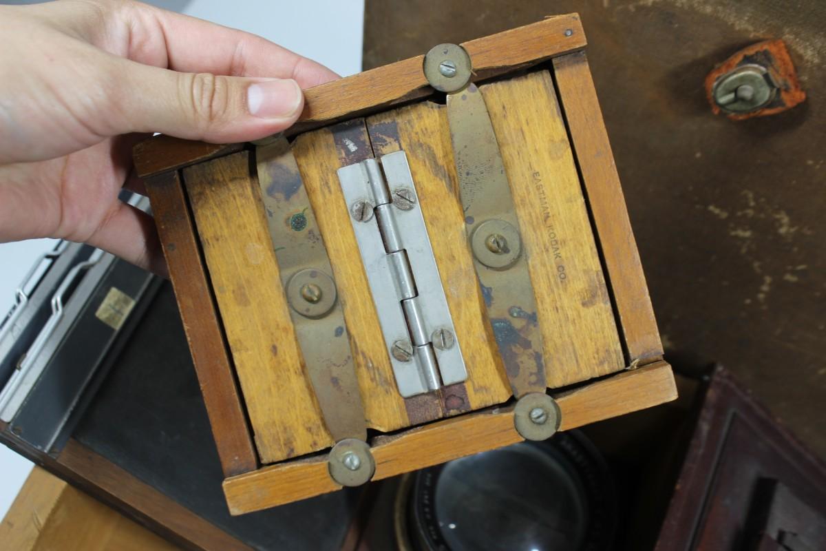 Vintage Gundlach Bellows Plate Camera with Extra Plates, Kodak Mounted Camera Lens, & More