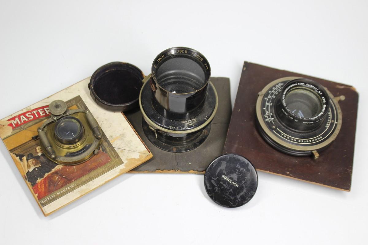 Antique Mounted Camera Lenses Kodak, Gundlach Turner Reich, Wollensak Optical Co., & More