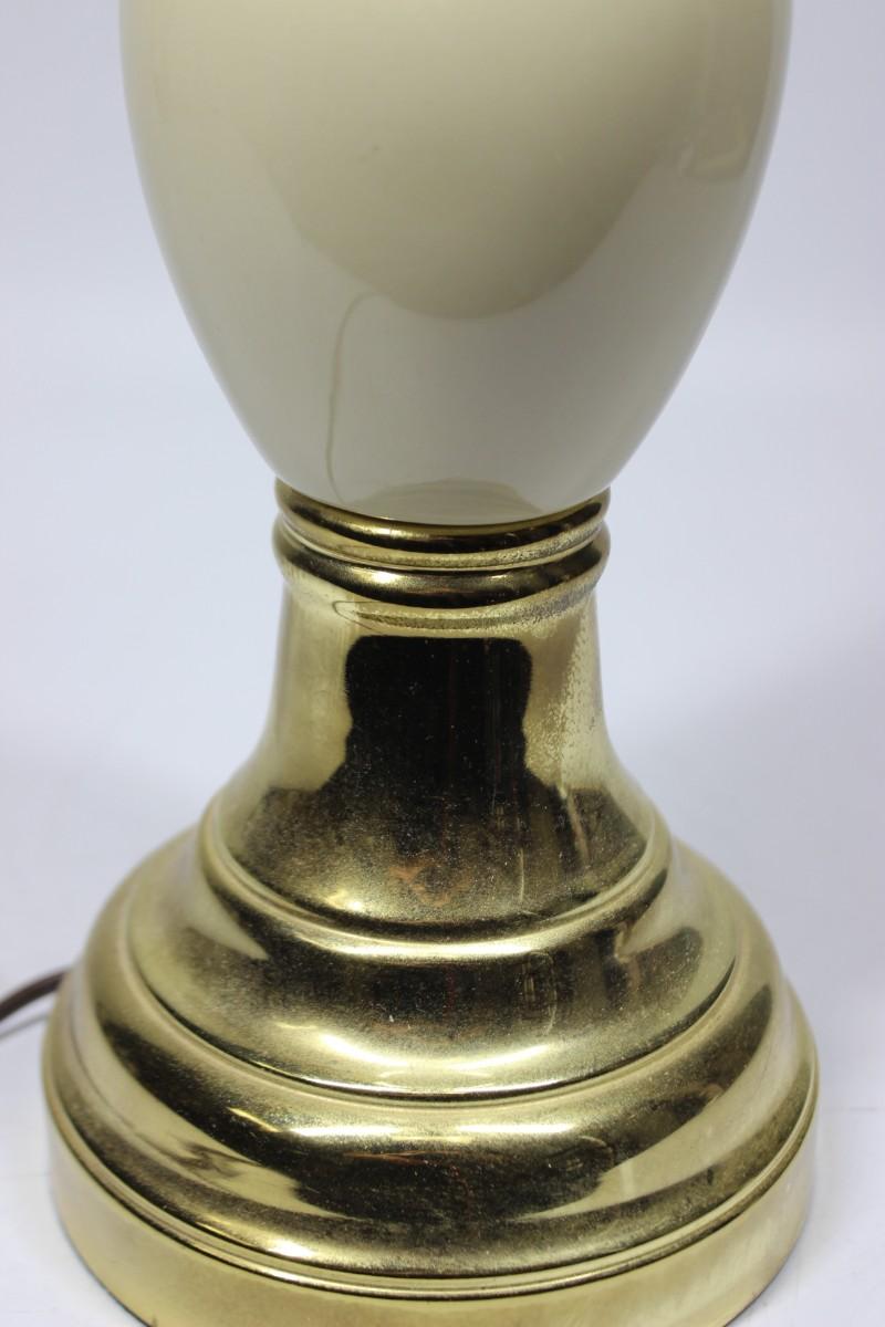 Small Midcentury Brass and Off-White Ceramic Table Reading Desk Lamp Light