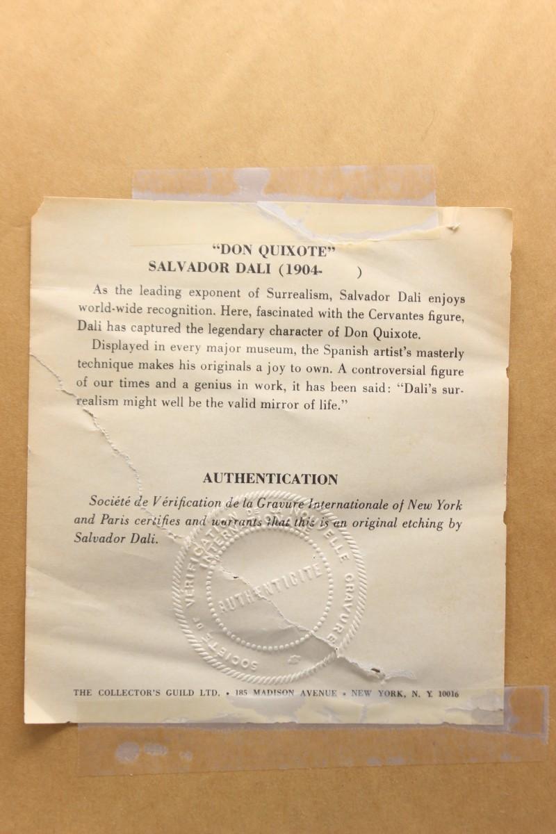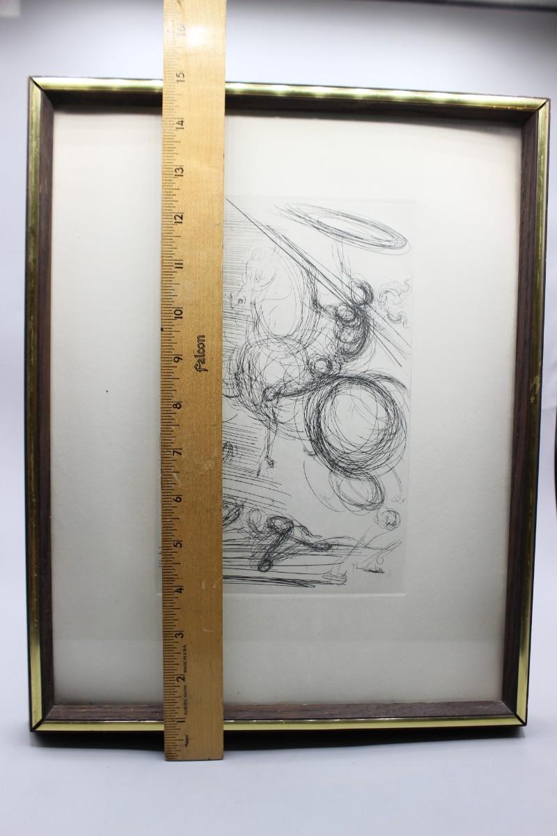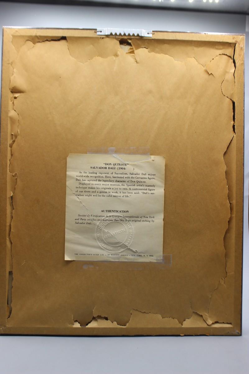 Vintage Salvador Dali Don Quixote Moon Rider Framed Etching with Embossed Studio COA Stamp