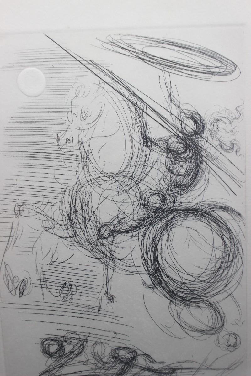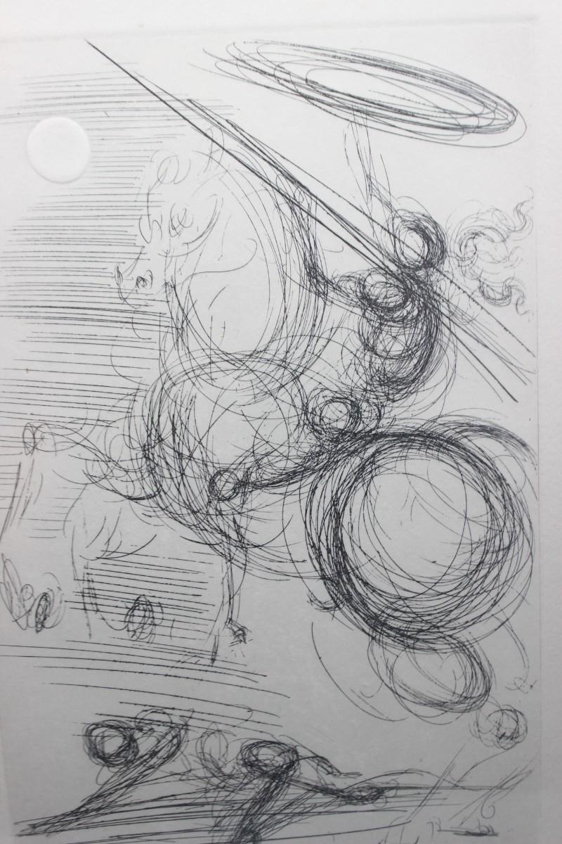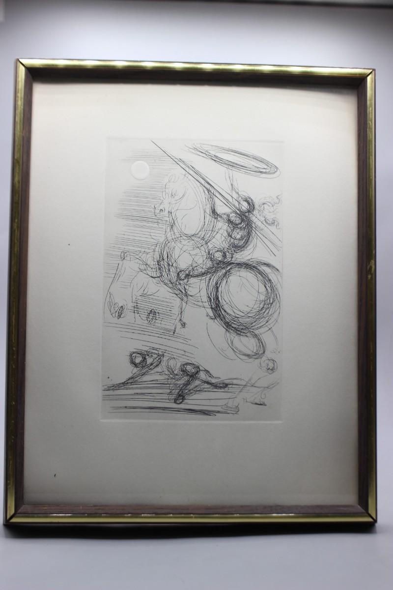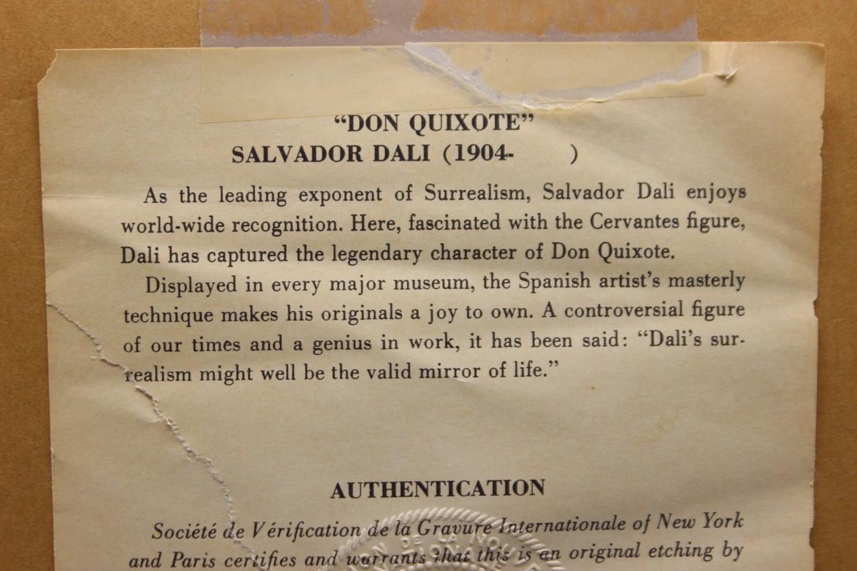 Vintage Salvador Dali Don Quixote Moon Rider Framed Etching with Embossed Studio COA Stamp