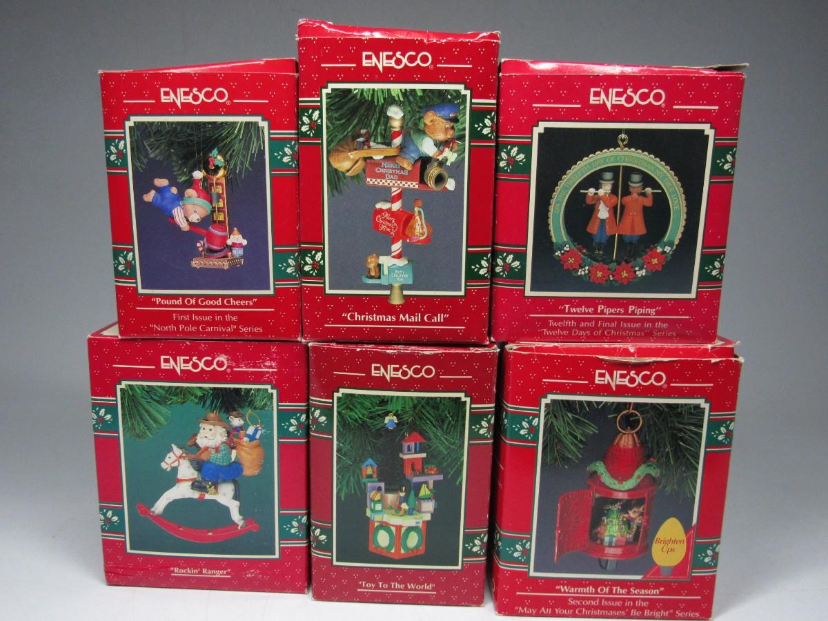Lot of Enesco Christmas Tree Holiday Decor Ornaments with Original Boxes Twelve Pipers Piping, Toy Bears, & More