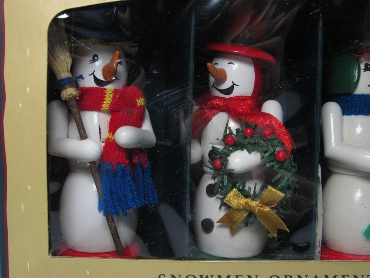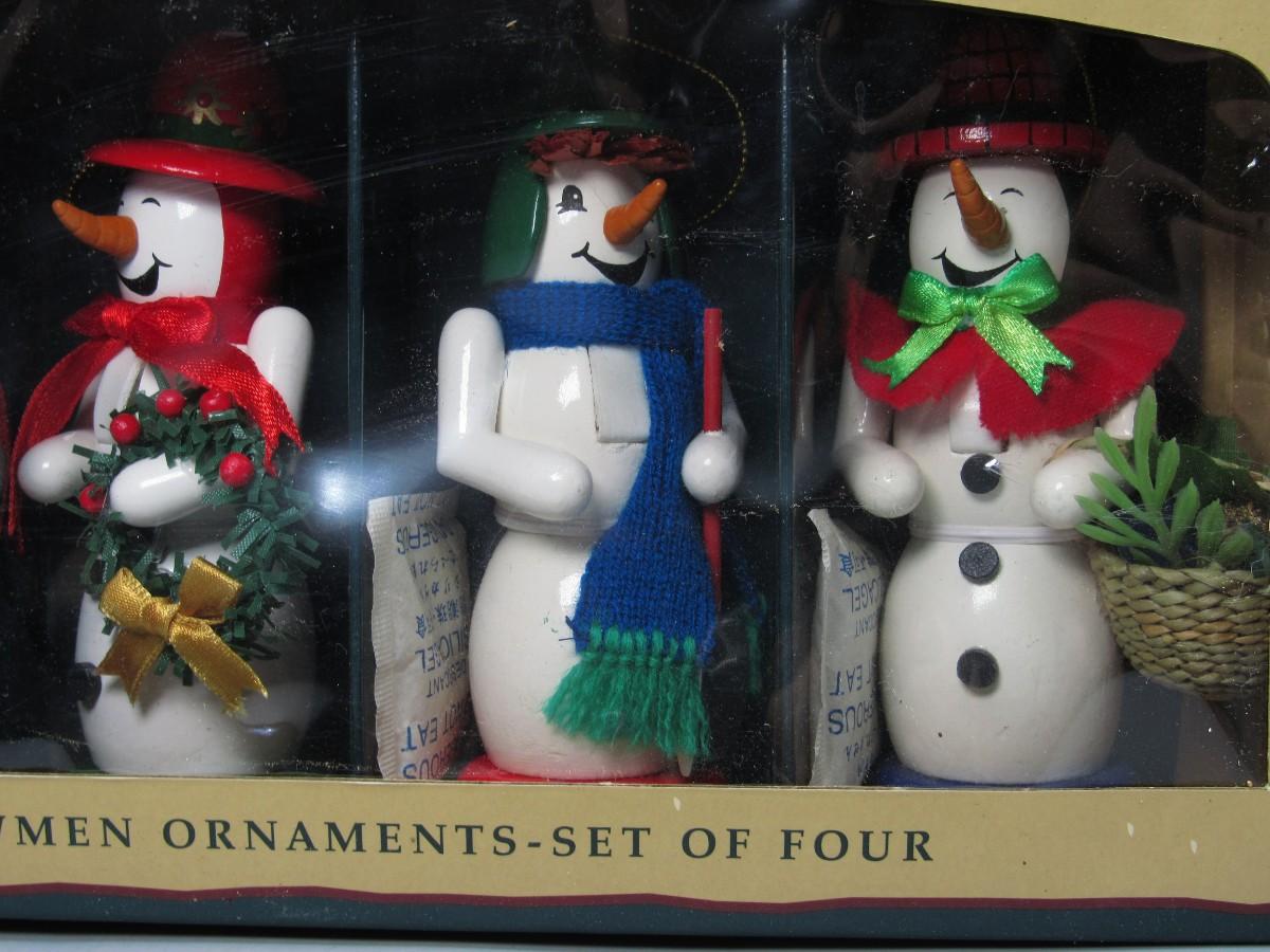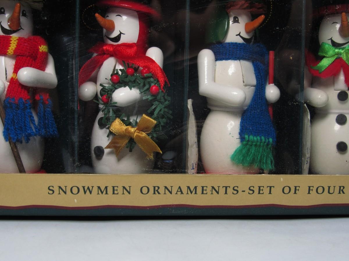 Nutcracker Village Snowmen Ornaments Set of Four Handcrafted in Old World Tradition Home Decor