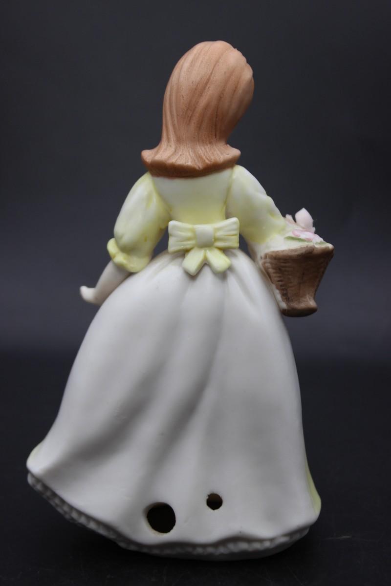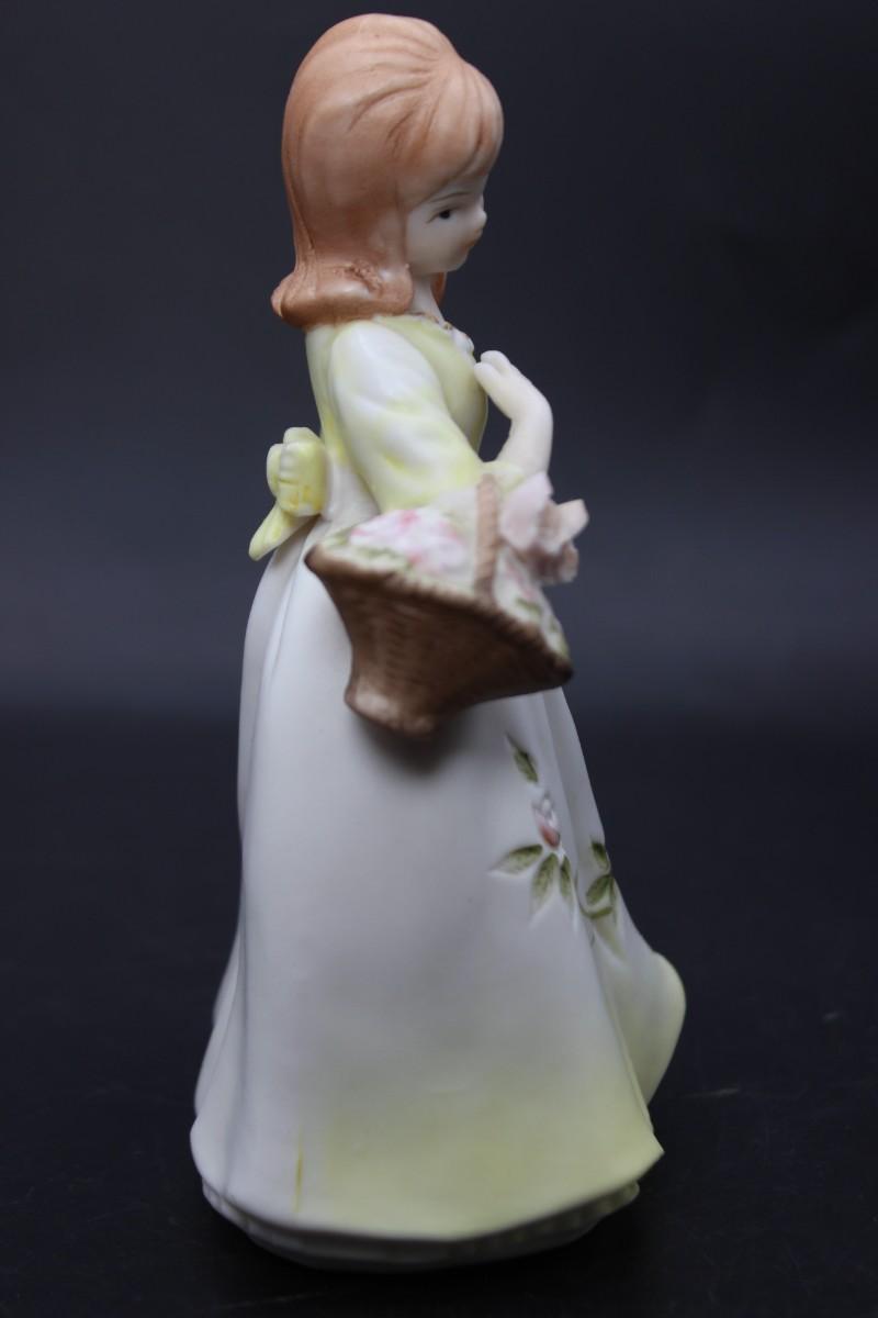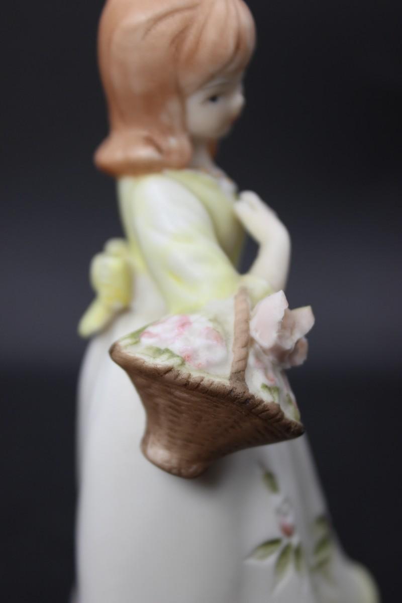 Vintage Hollow Ceramic Girl with Flower Basket Mid Century Figurine