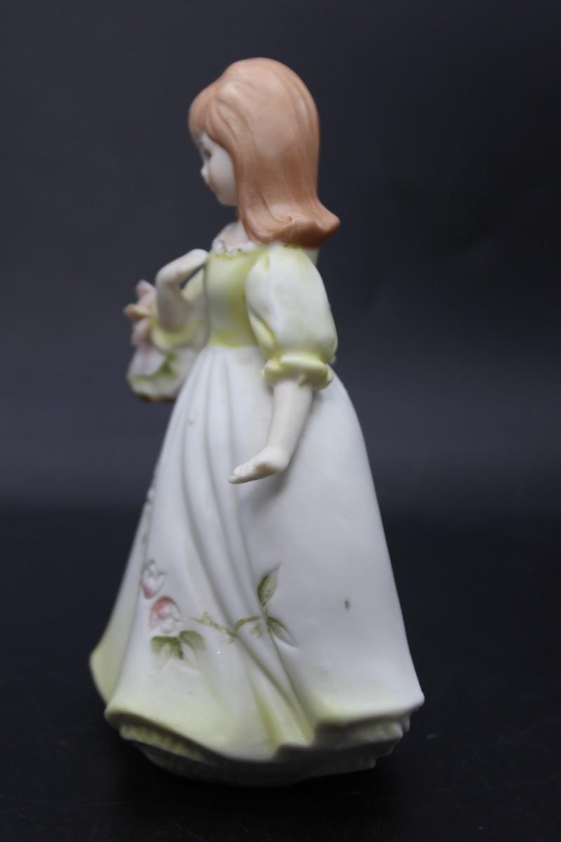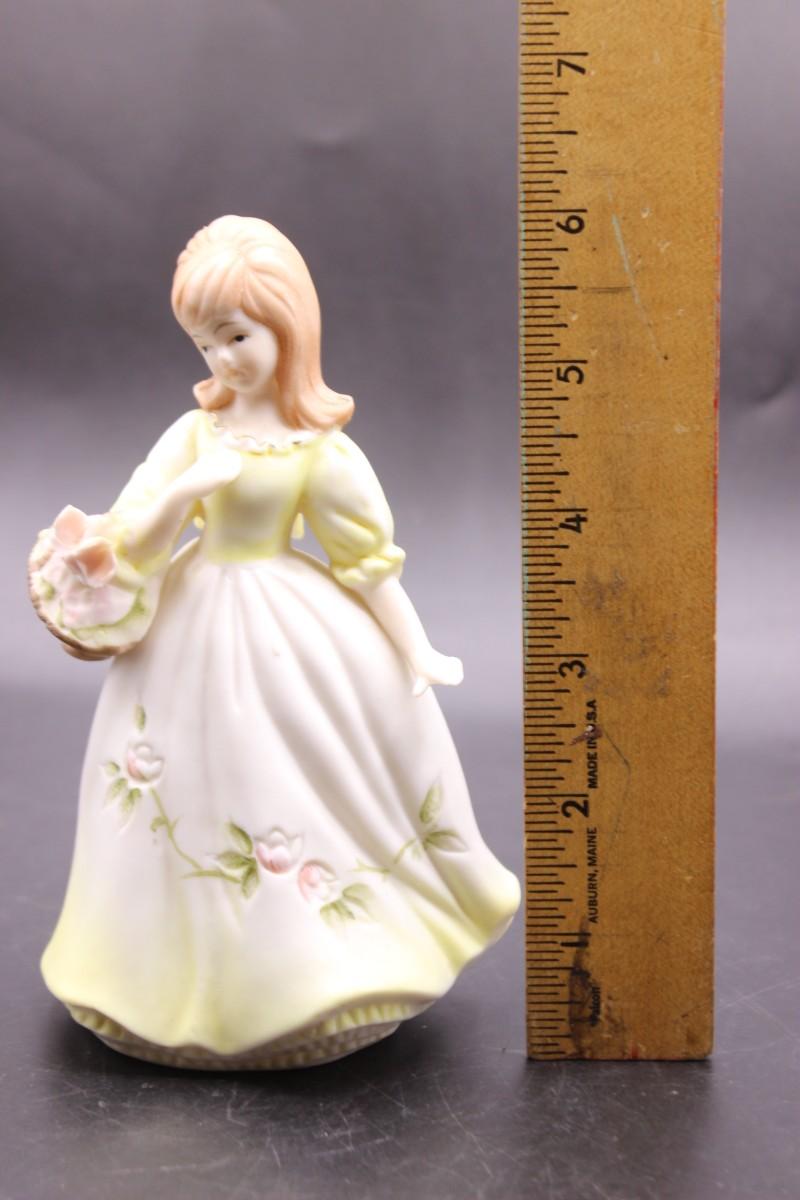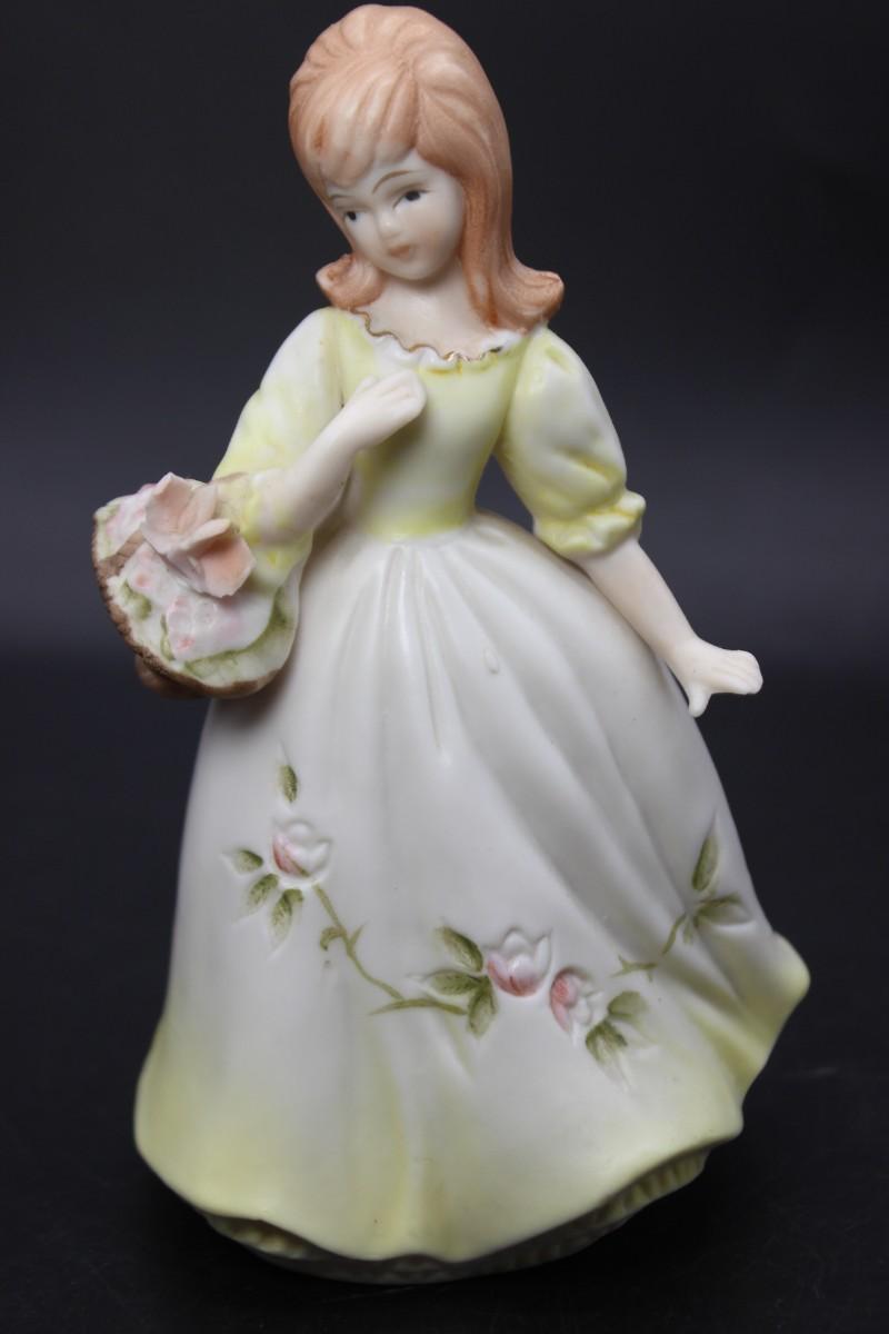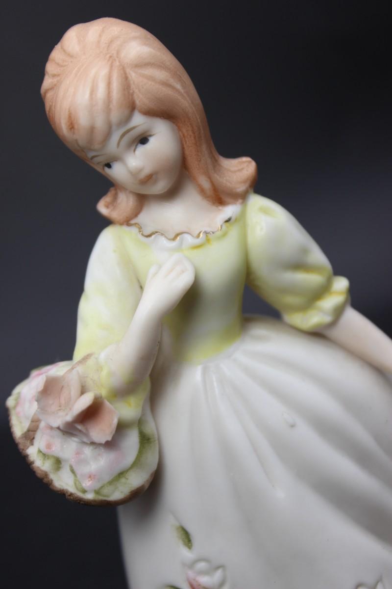 Vintage Hollow Ceramic Girl with Flower Basket Mid Century Figurine