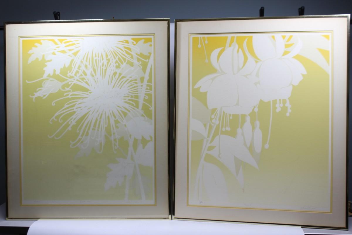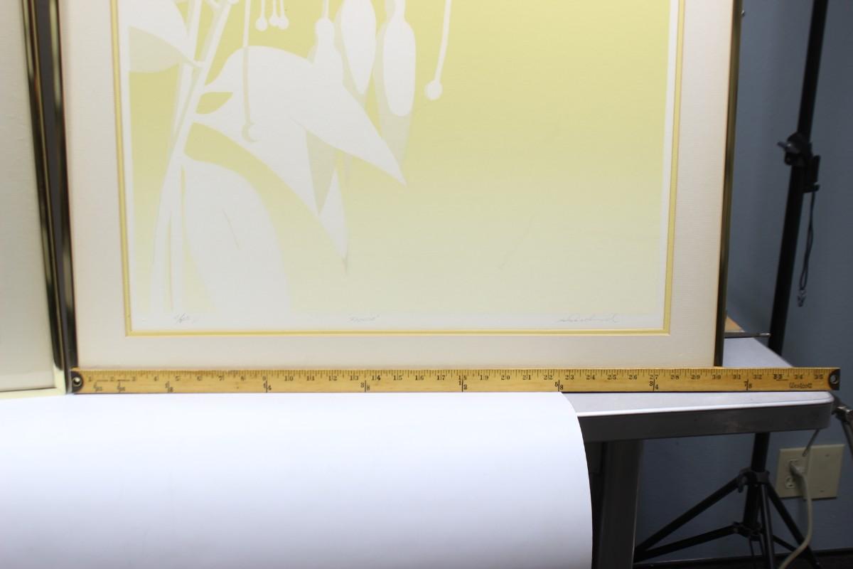 Pair of Signed & Numbered Warren Woodward Serigraph Large Yellow Art Deco Art Prints