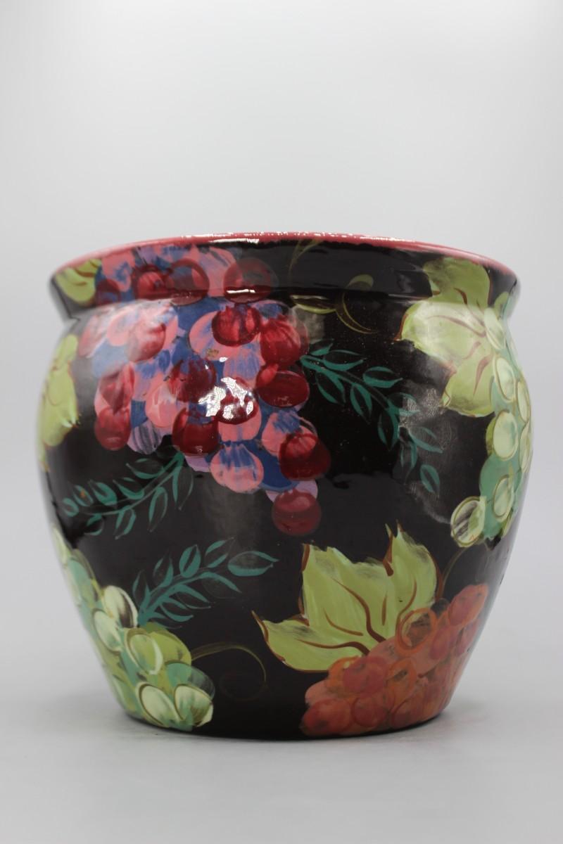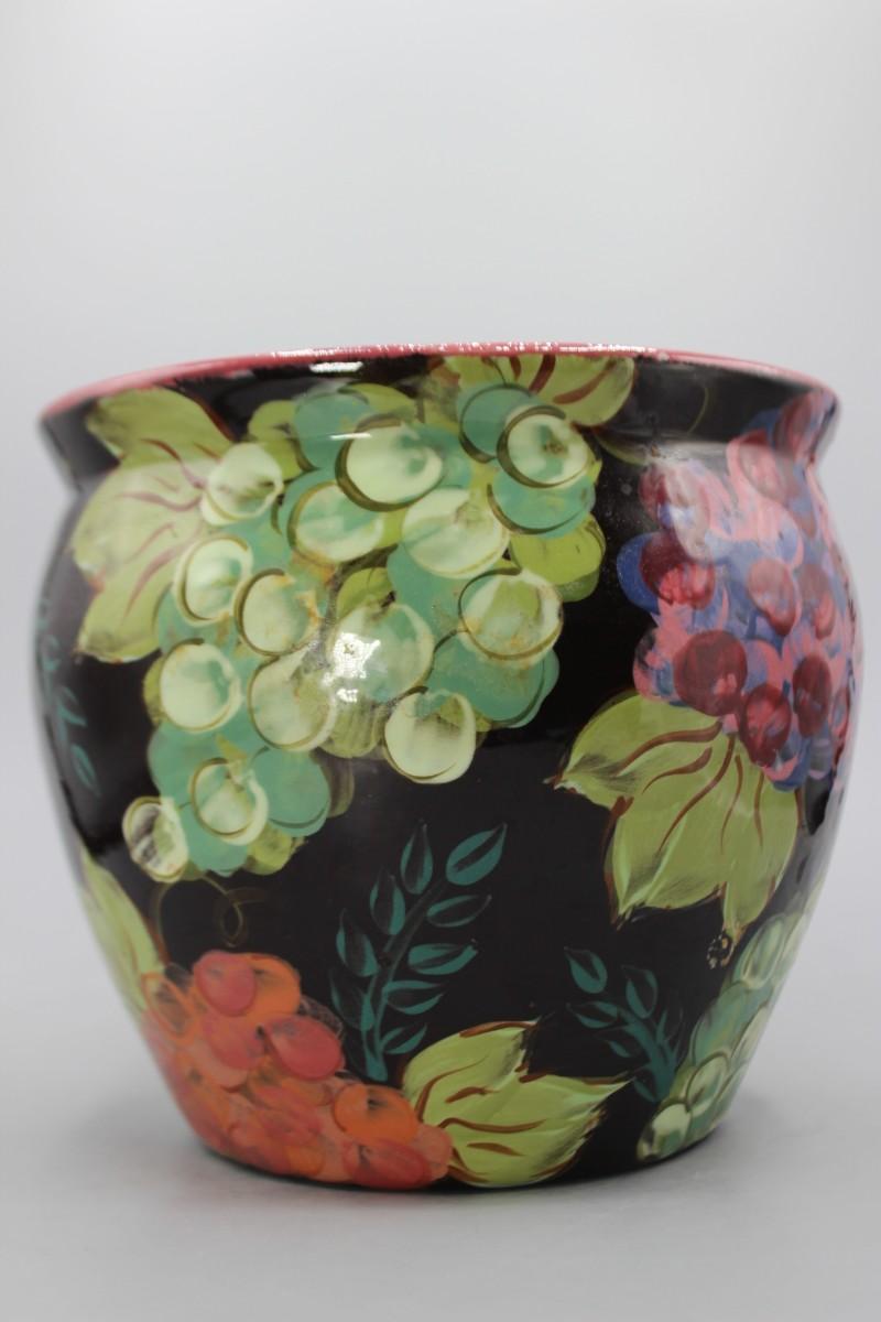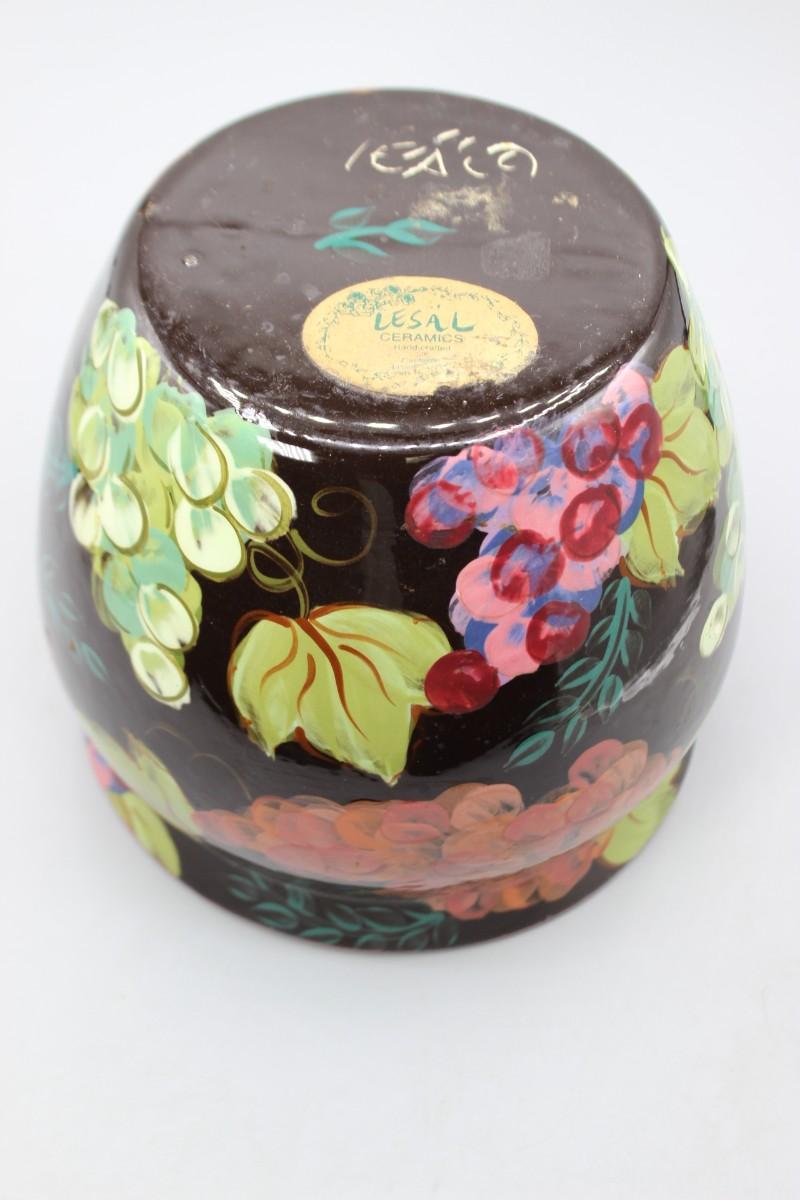 Vintage Lesal Ceramics Handcrafted Green Purple Grapes & Leaves Pottery Vase