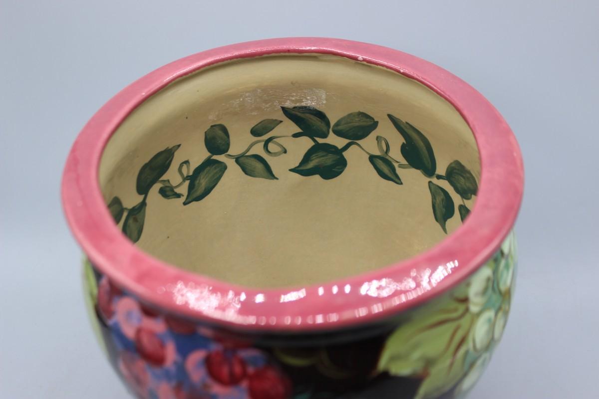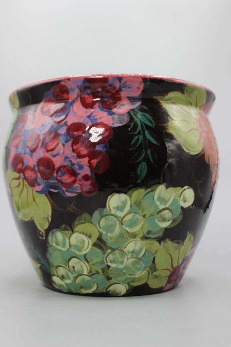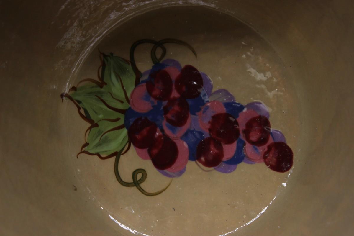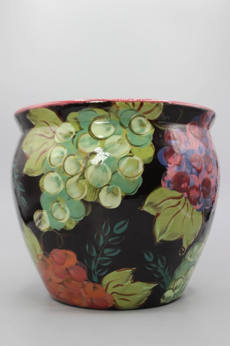 Vintage Lesal Ceramics Handcrafted Green Purple Grapes & Leaves Pottery Vase