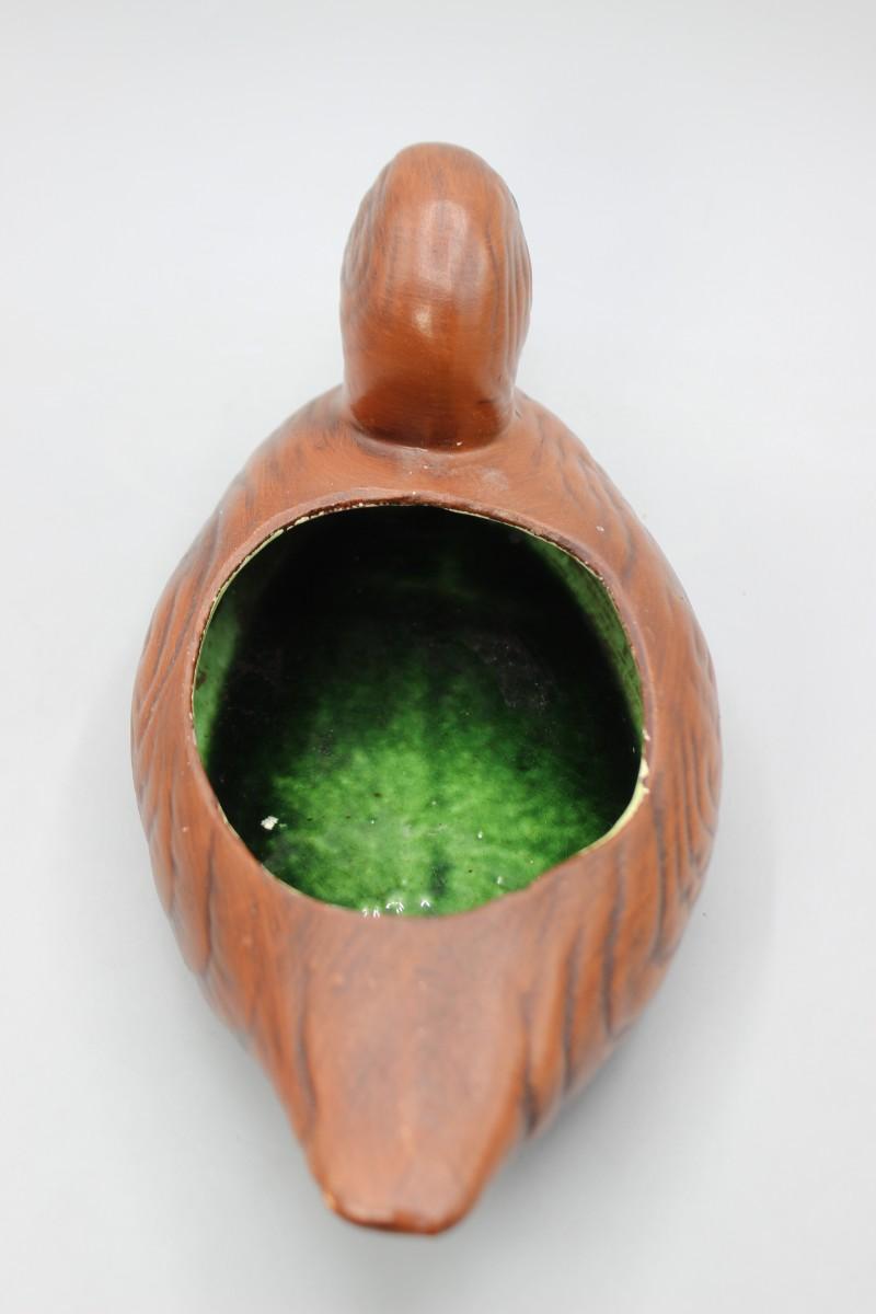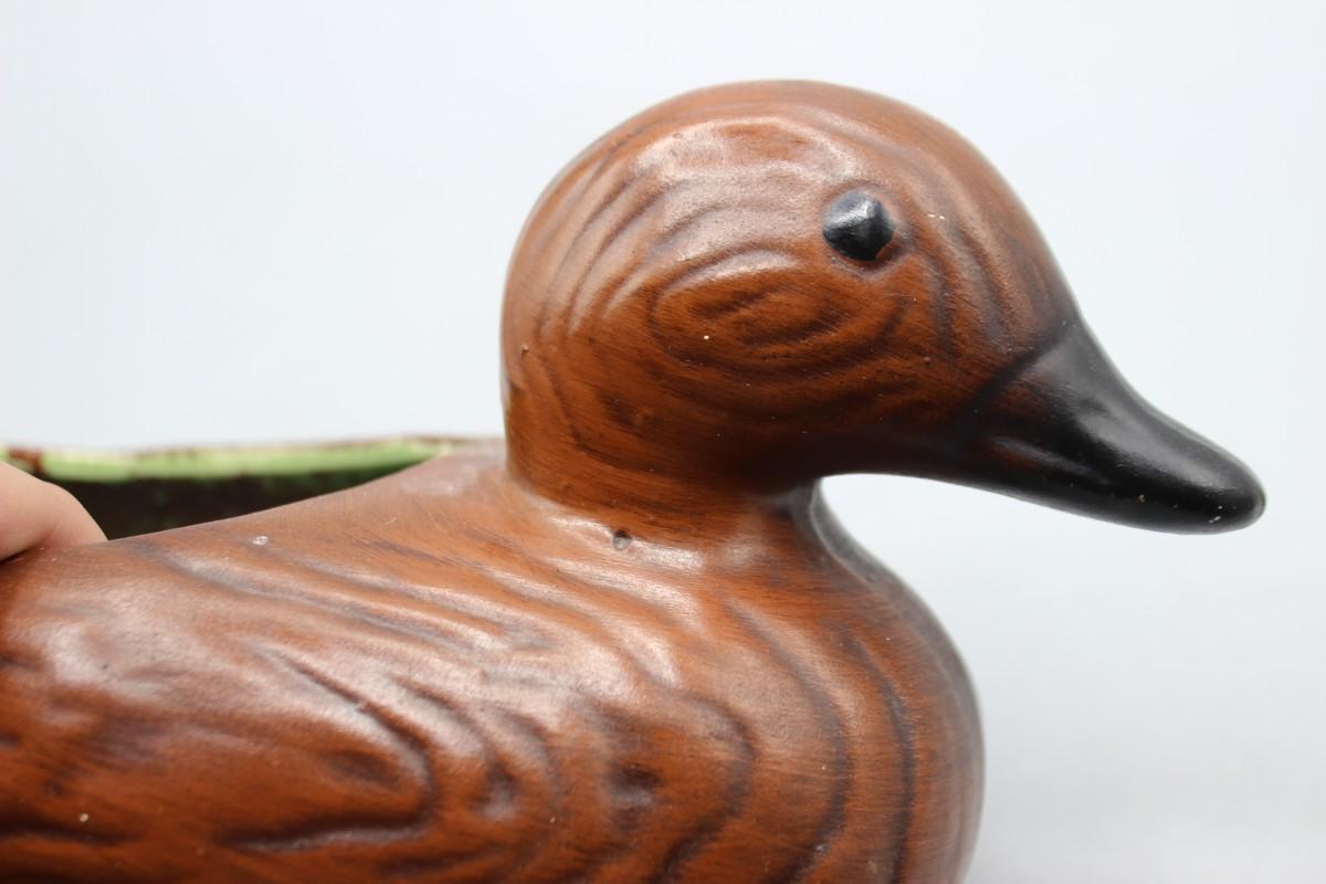 There is no damage to the duck planter and is in good collectible or displayable condition. Check pictures for more details and for sizing.
