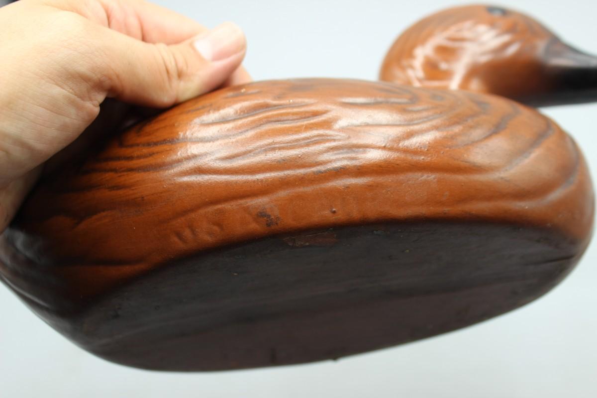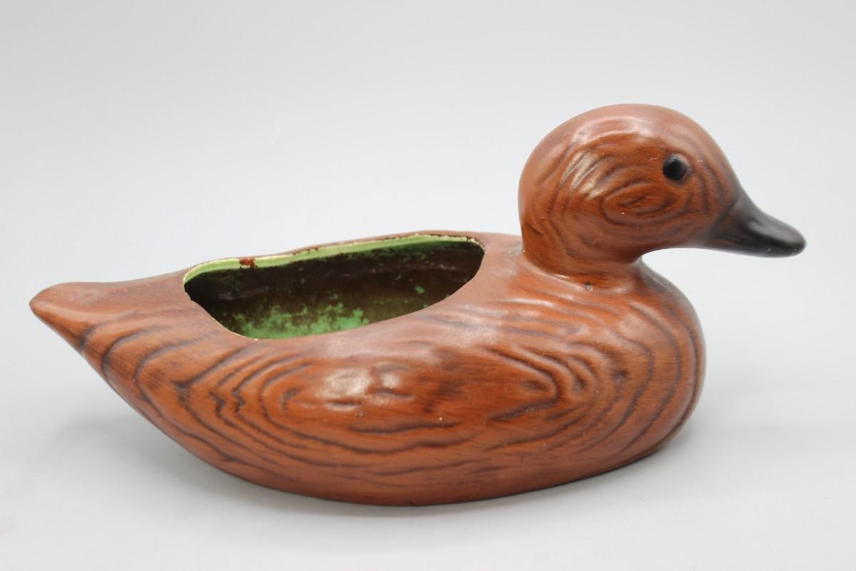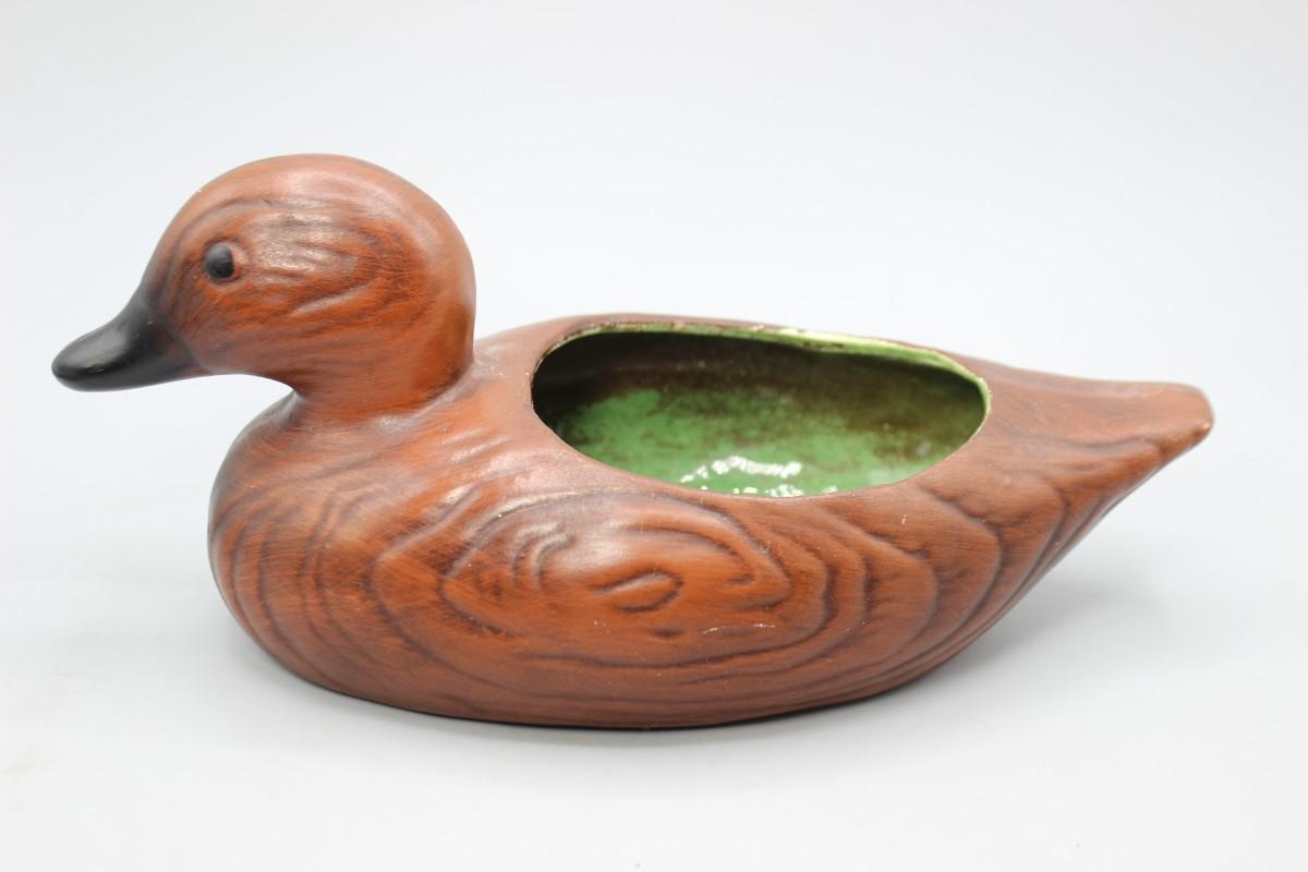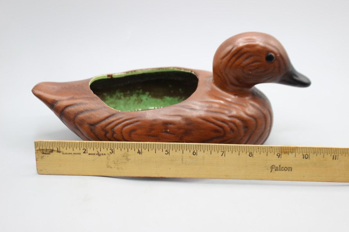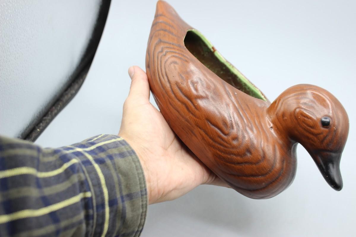 Vintage Wood Grain Look Ceramic Porcelain Duck Mallard Rustic Planter