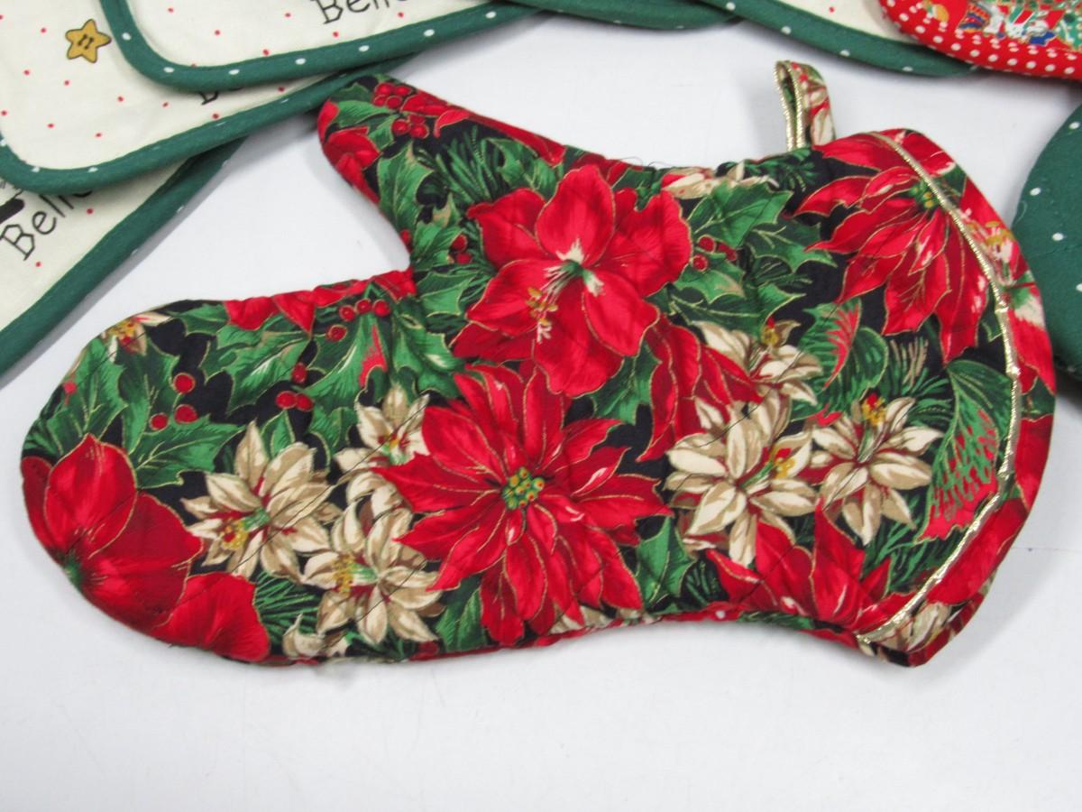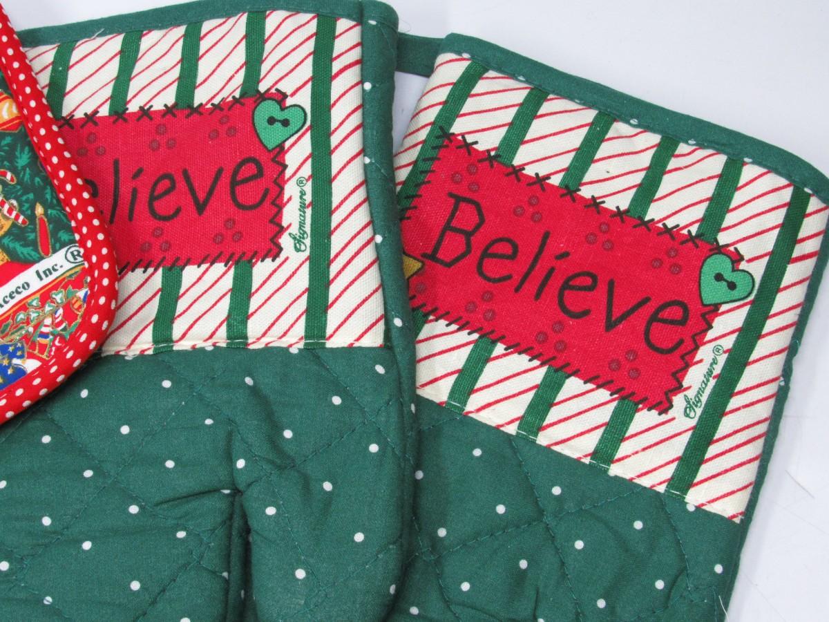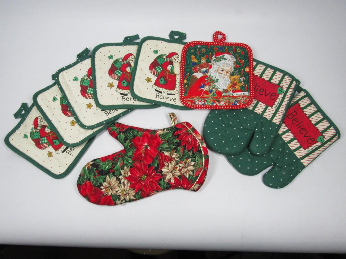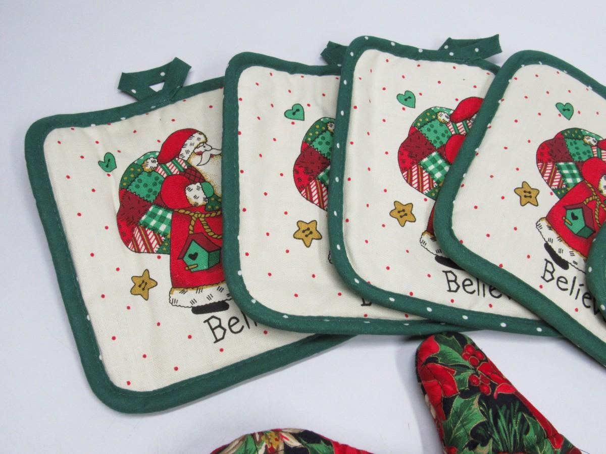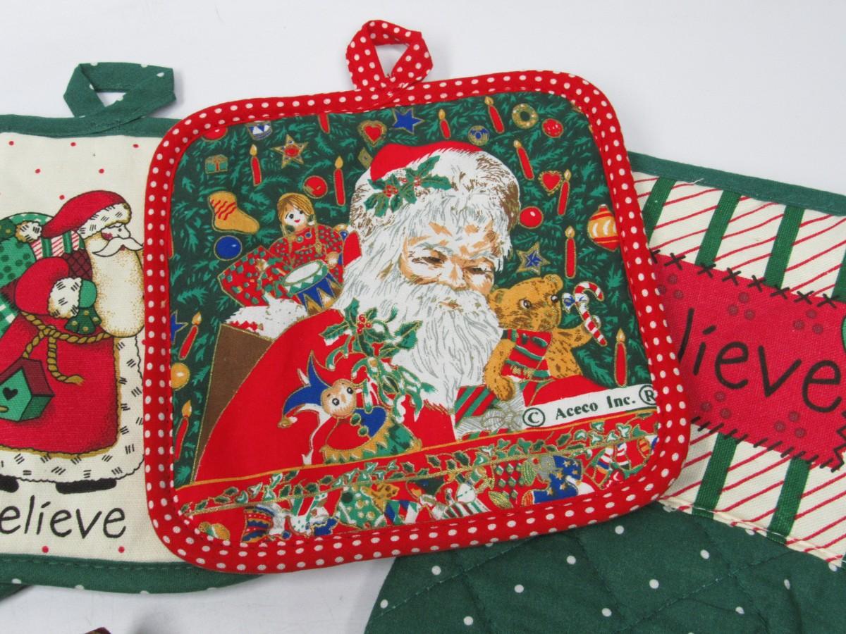 Lot of Retro Christmas Santa Claus Themed Oven Cotton Mitts & Poth Holders