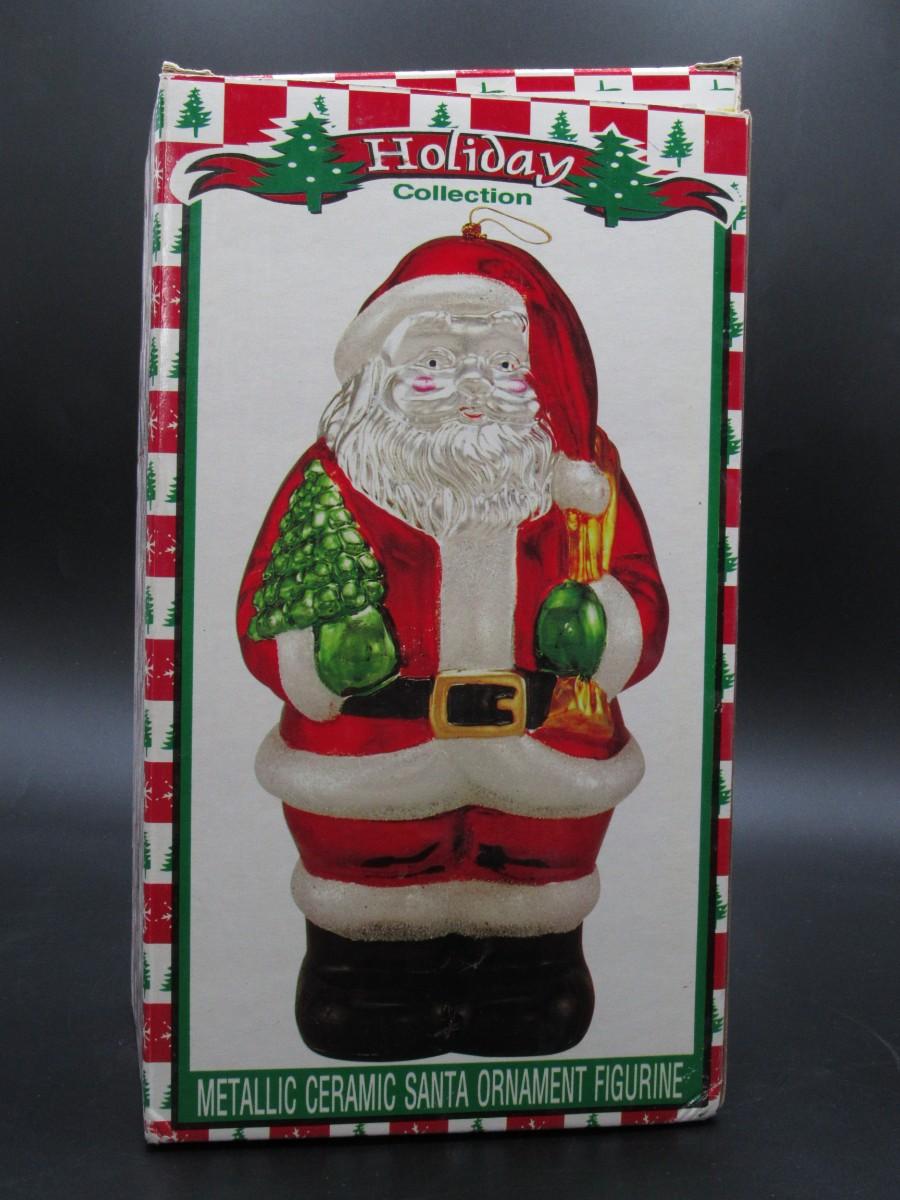 Holiday Collection Metallic Ceramic Santa Christmas Tree Ornament Figurine with Box