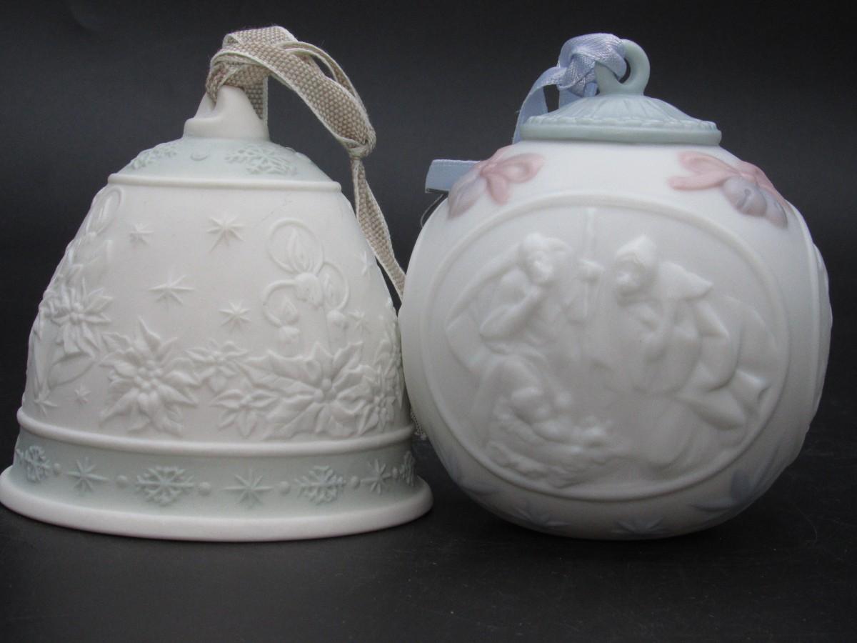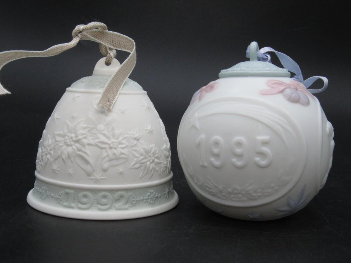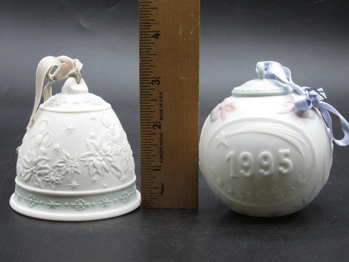 Llardo Handmade Spain Campanita Navidad 1992 Christmas Bell & Bola Navidad 1995 Christmas Ball