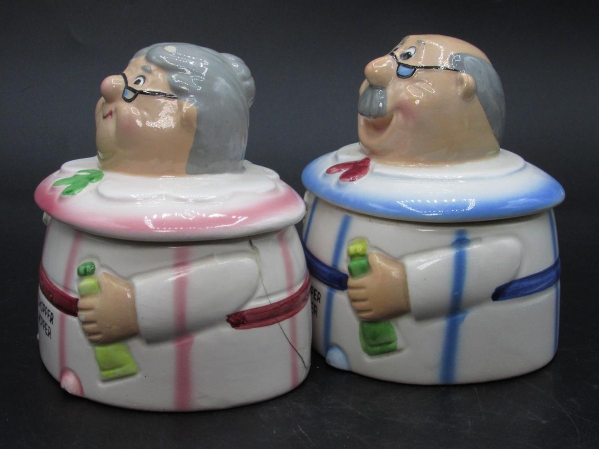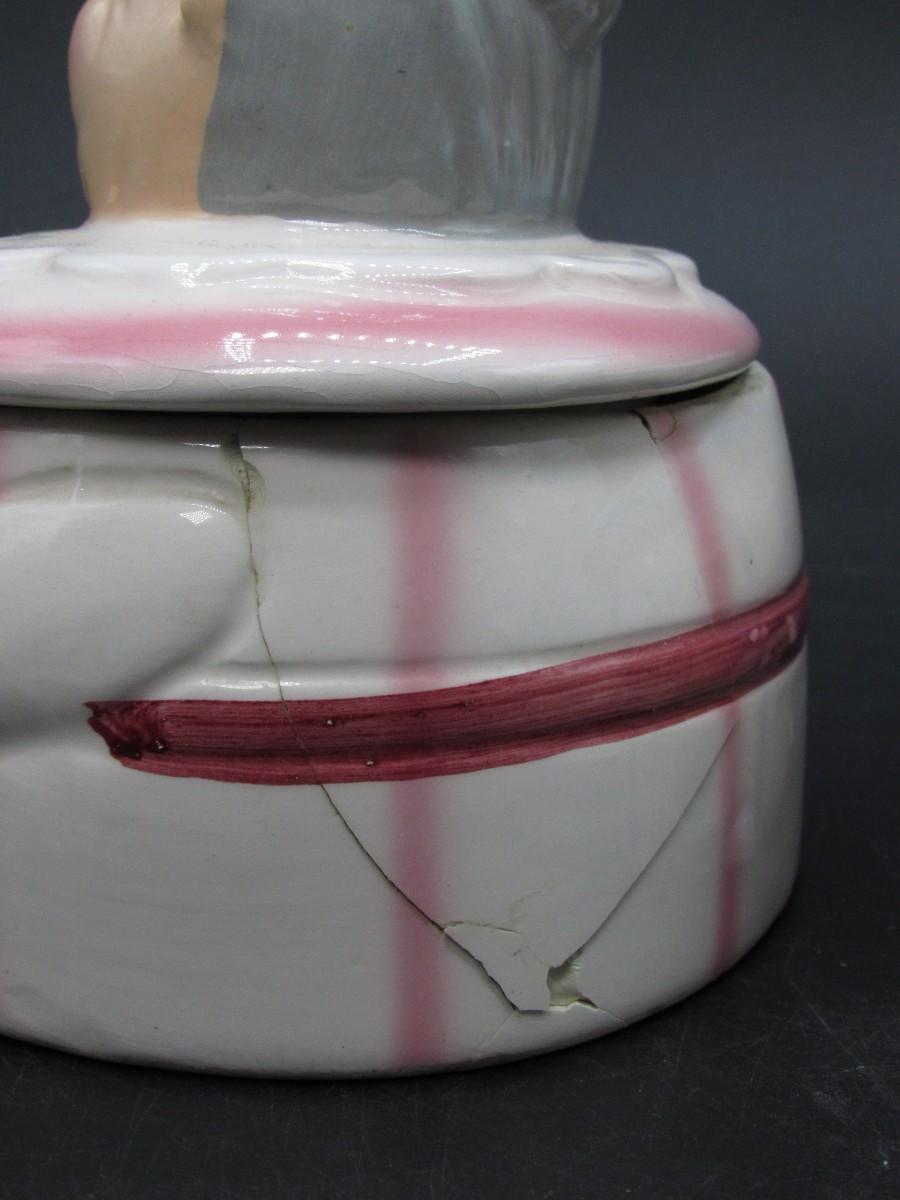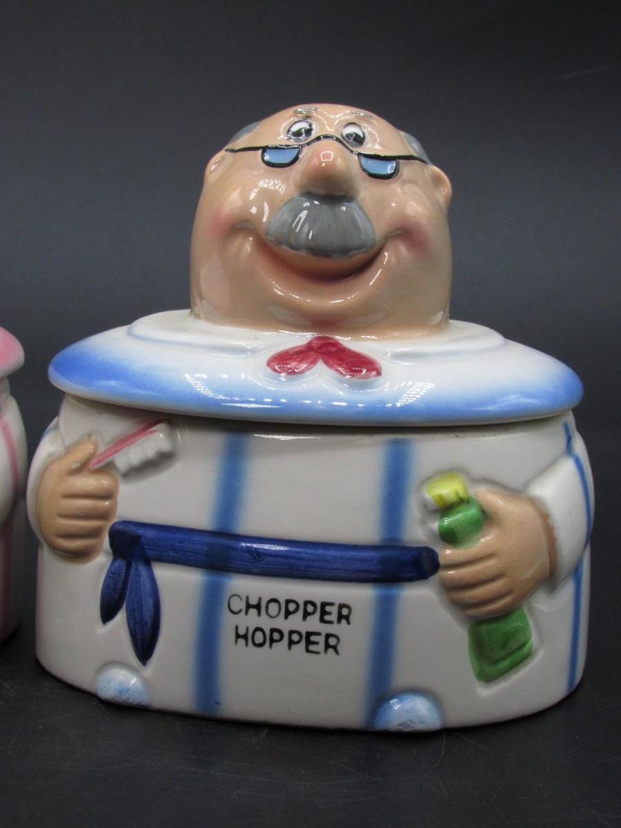 The woman Chopper Hopper has some noticeable cracks, but there is no significant damage to the other ceramic piece and is in overall fair collectible condition. Check pictures for more details.