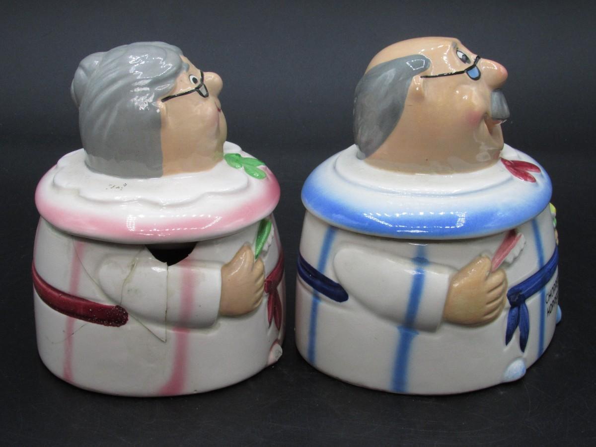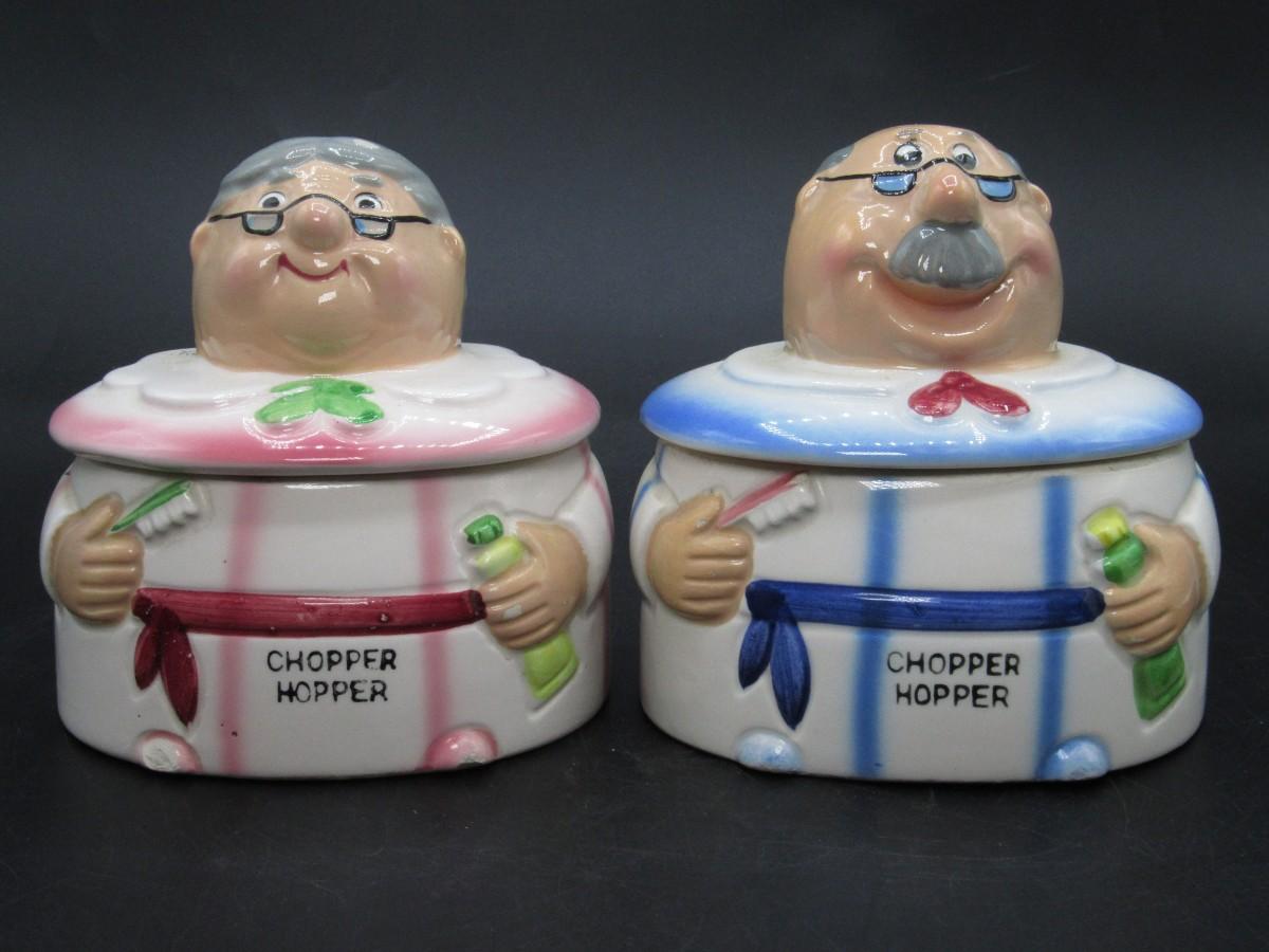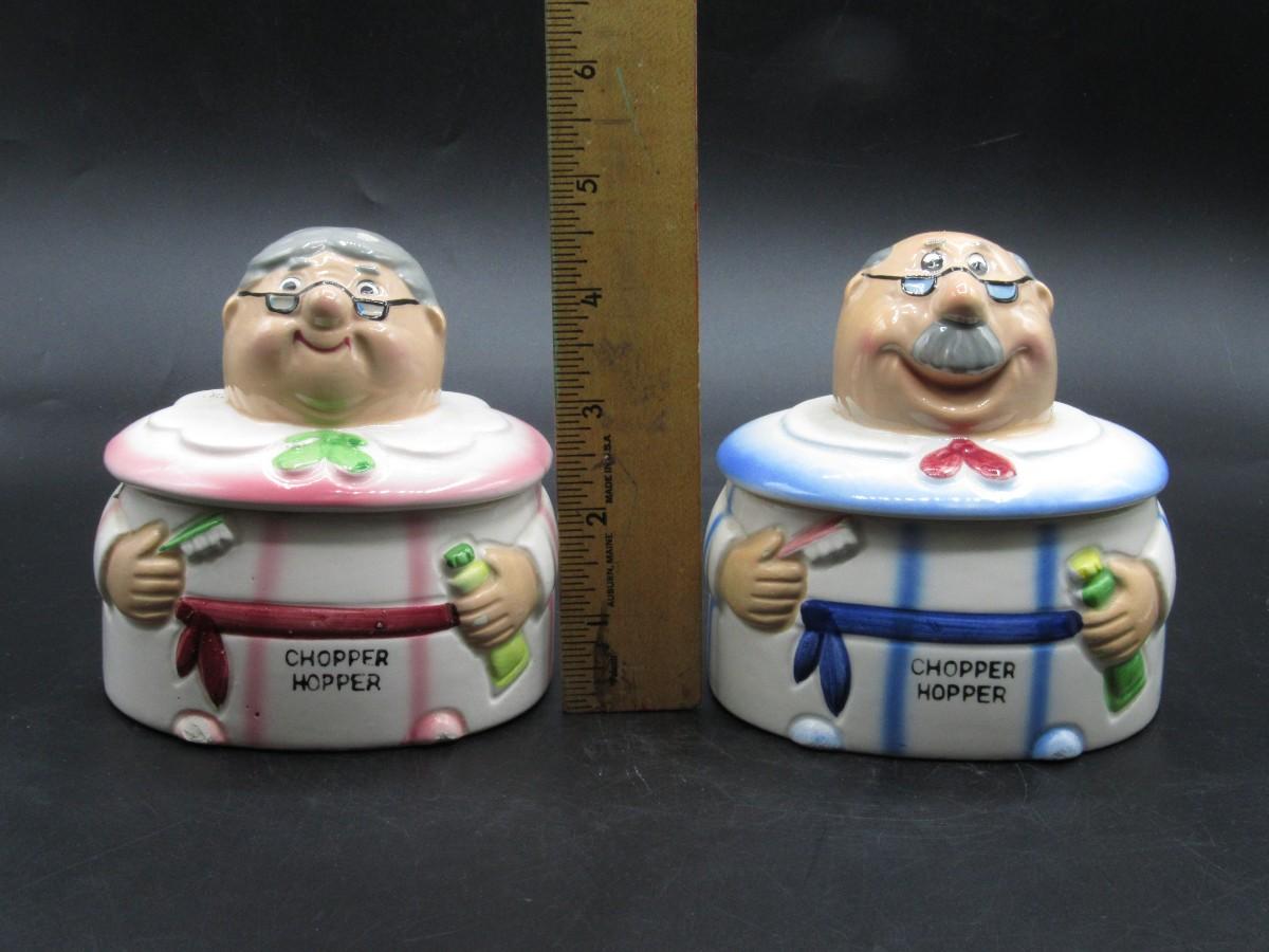 Vintage Chopper Hoppers Ceramic His & Hers Denture Boxes