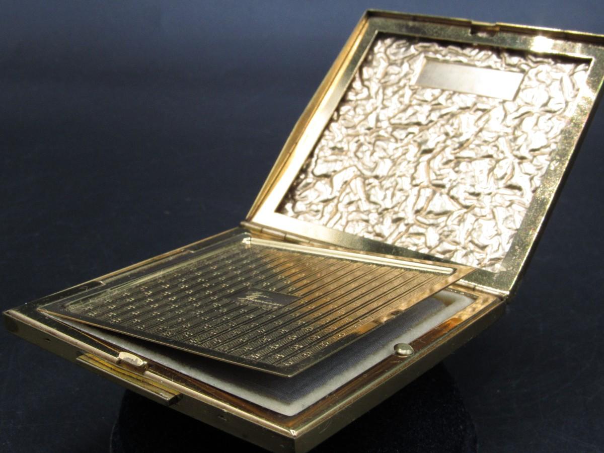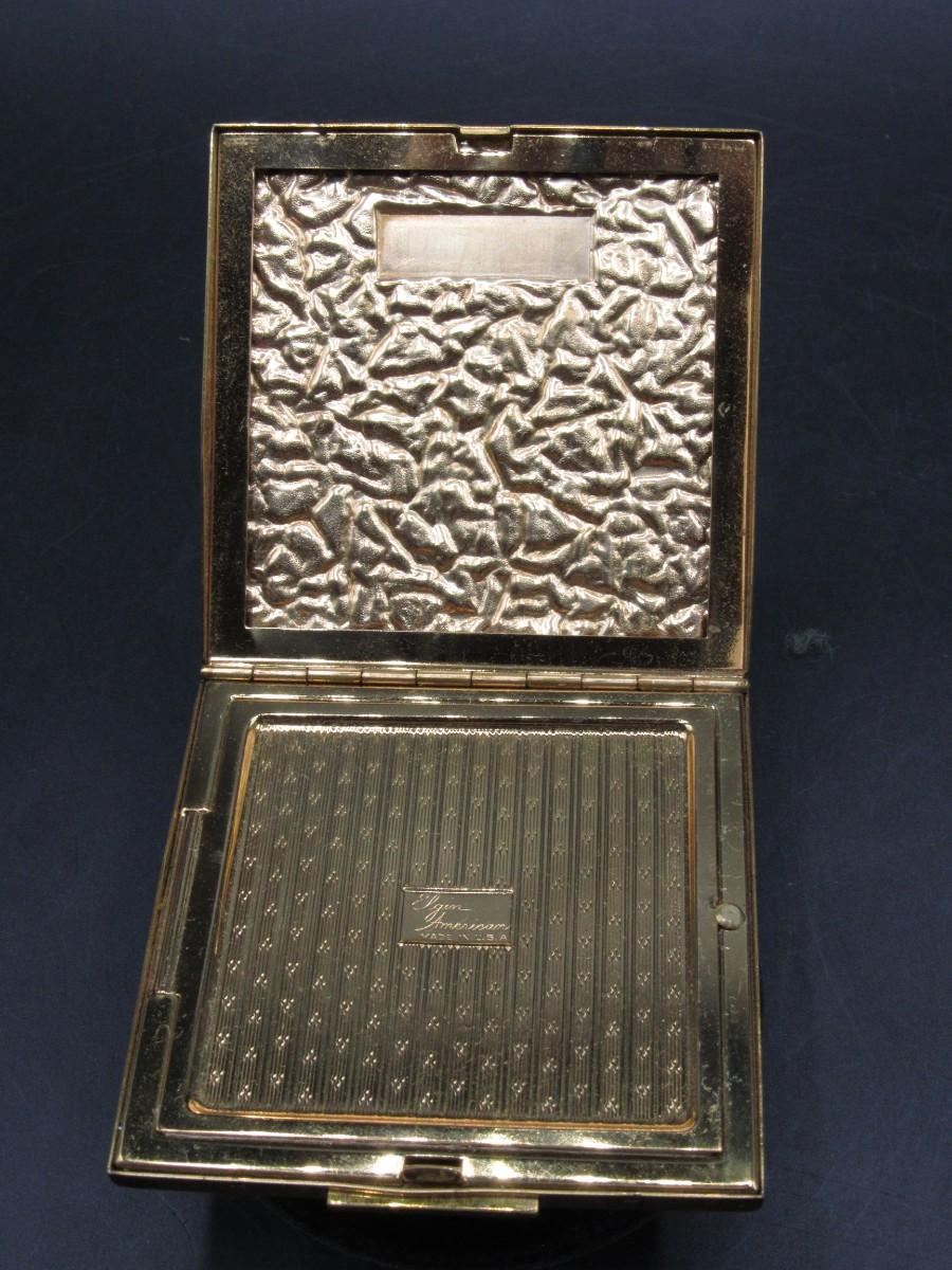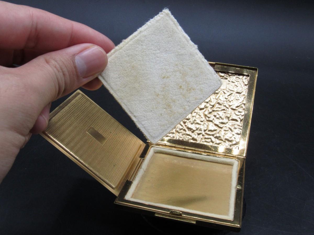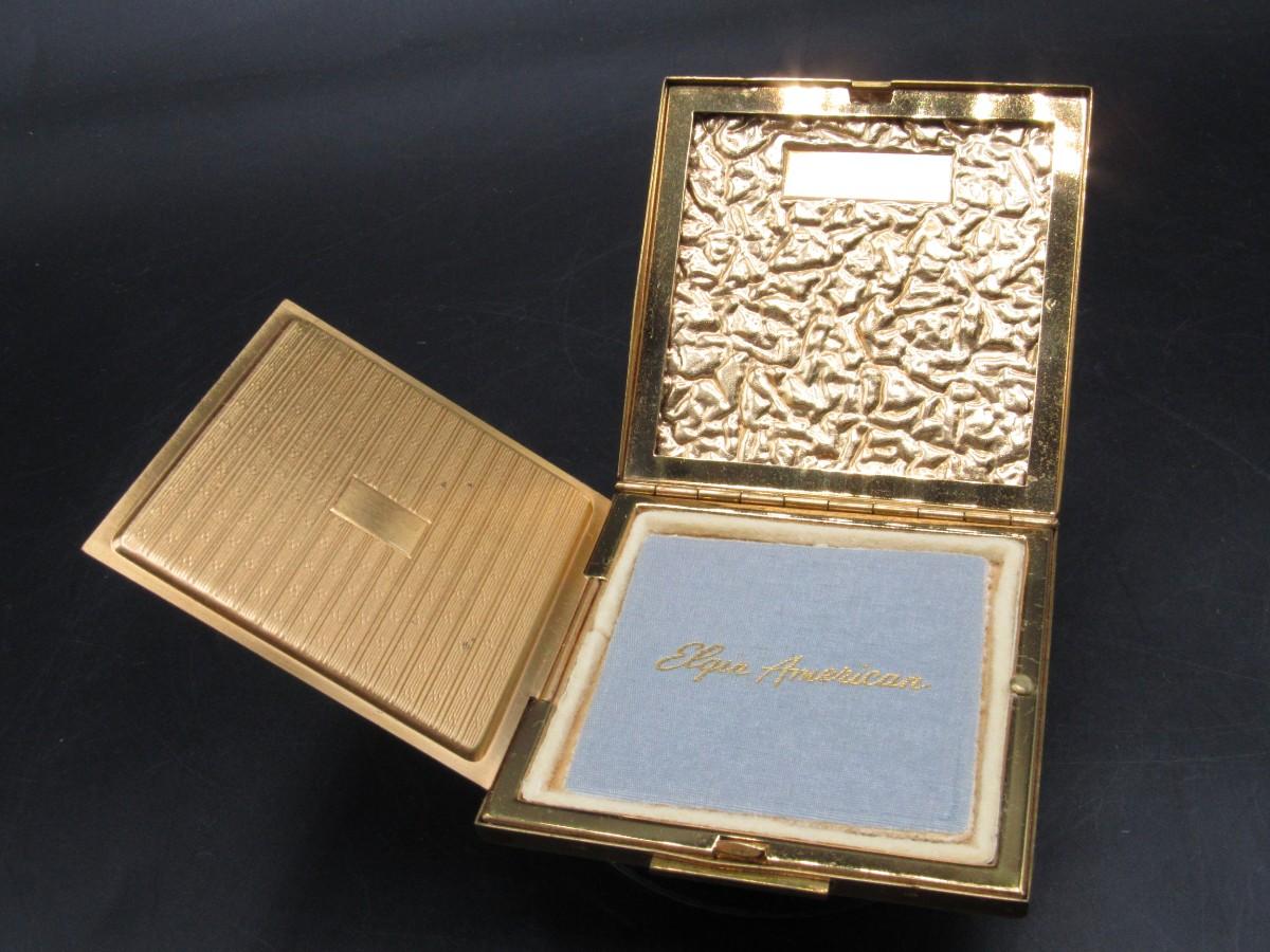Vintage Elgin American Art Deco Gold Tone Square Makeup Powder Compact