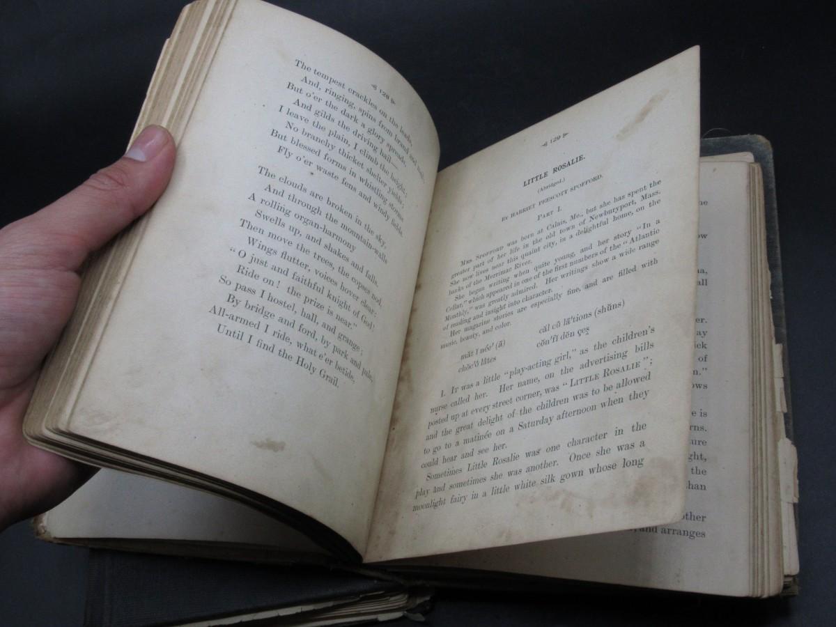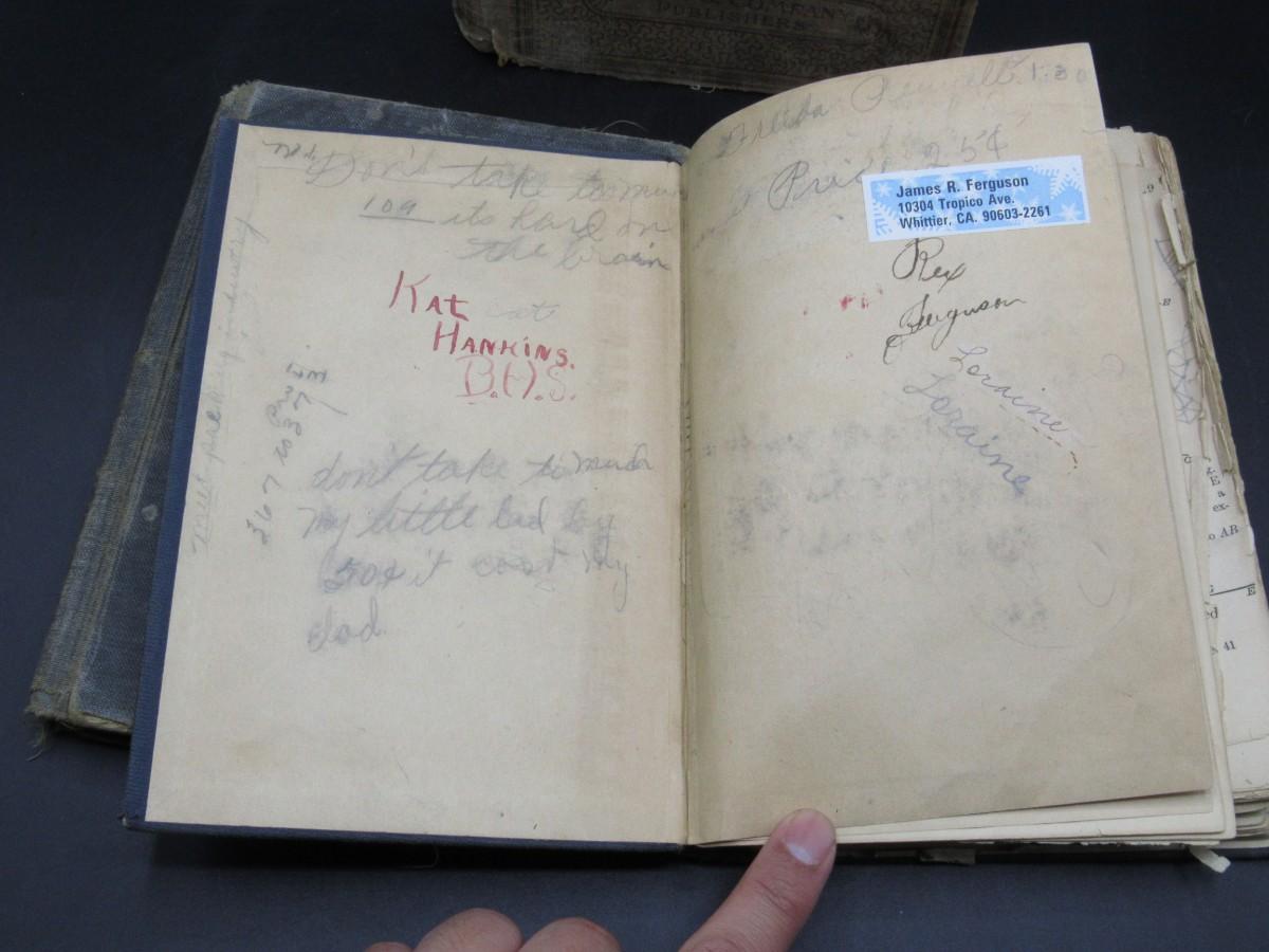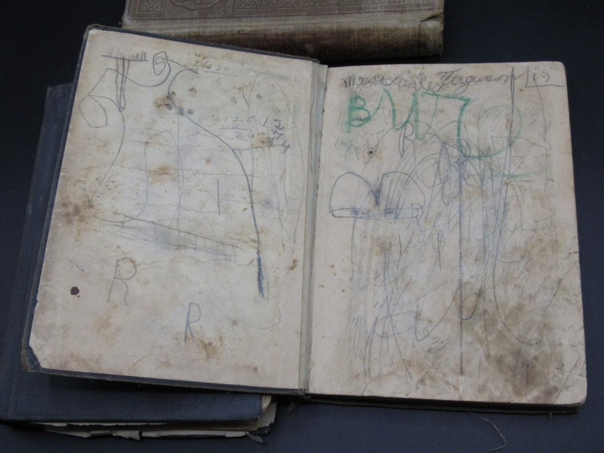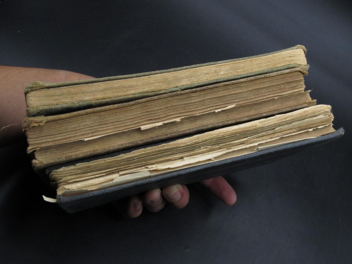 There is wear and signs of use all over the books, from writing to torn pages. The books are still intact and interesting to go through! Check pictures for more details.