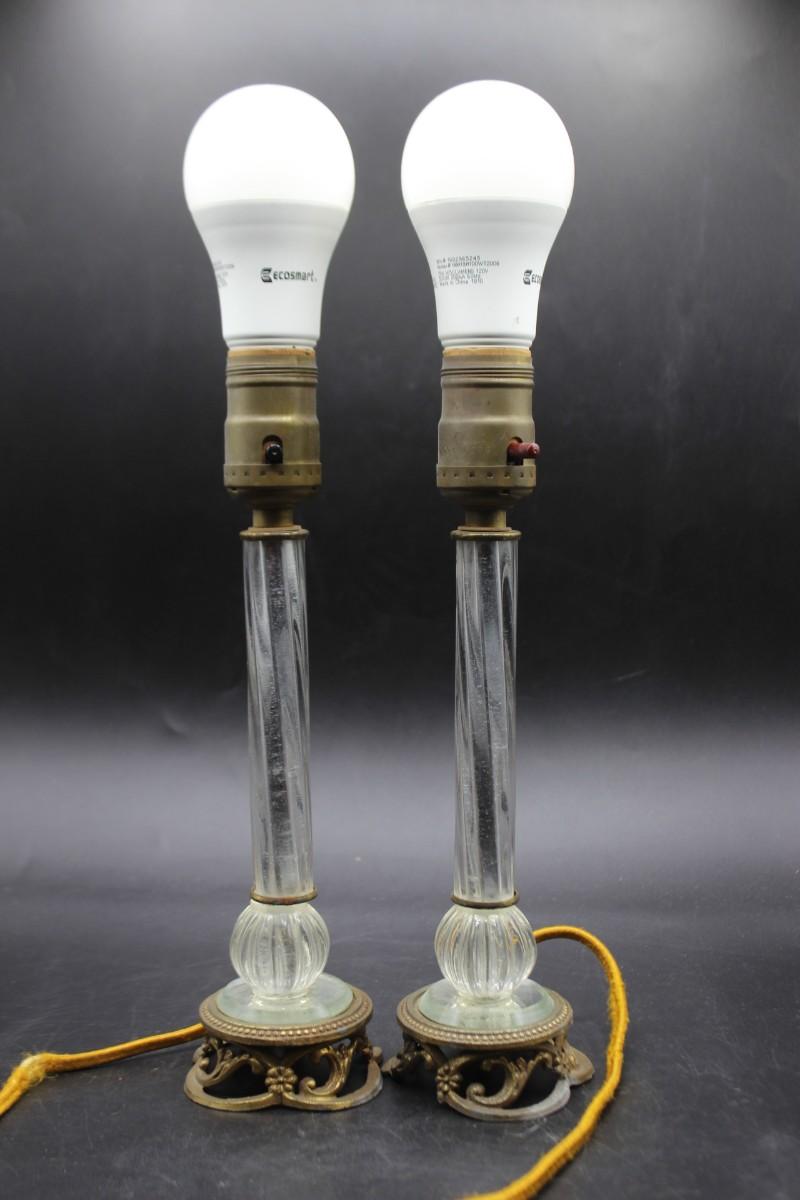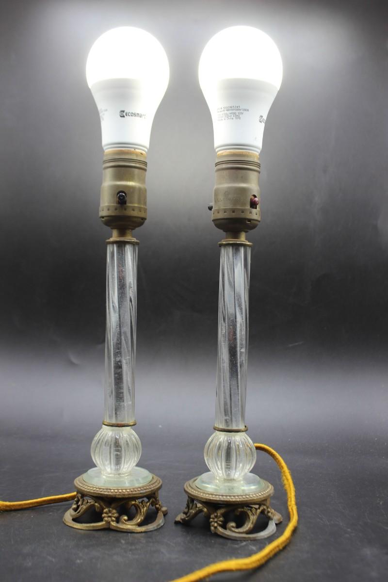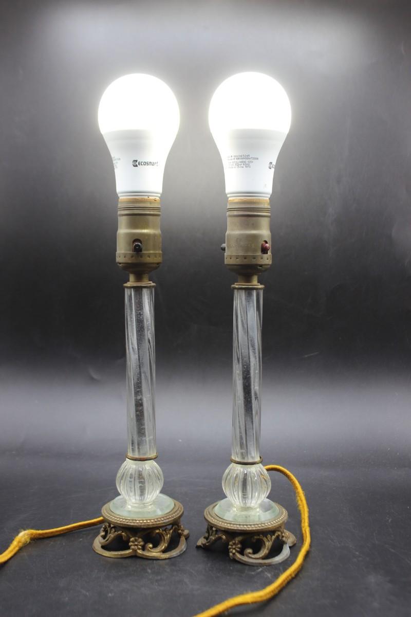 Pair of Small Vintage Mid Century Desktop Flower Motif Table Lamps
