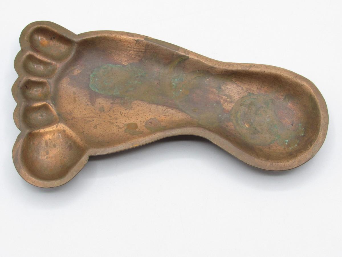 Vintage Brass Foot Imprint Cigarette Ashtray Trinket Dish