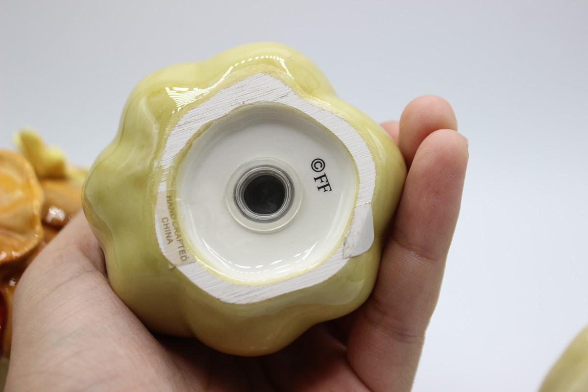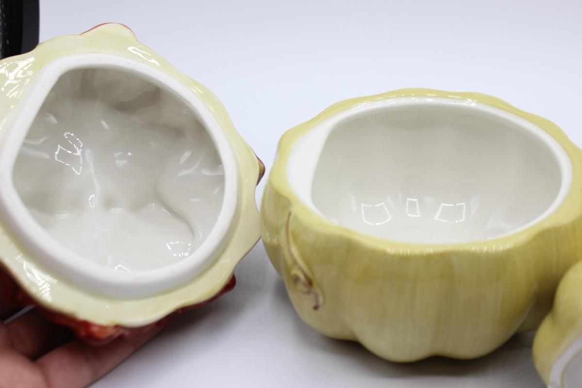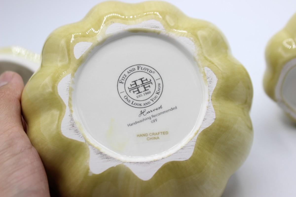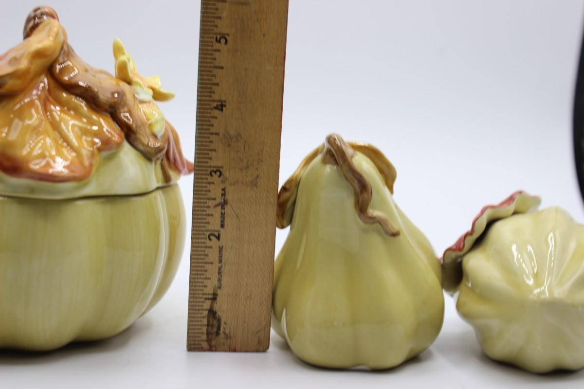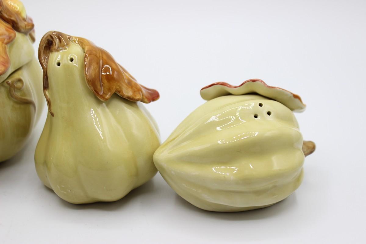 Fitz and Floyd Handcrafted Ceramic Pumpkin Squash Set Sugar Spice Bowl with Salt & Pepper Shakers