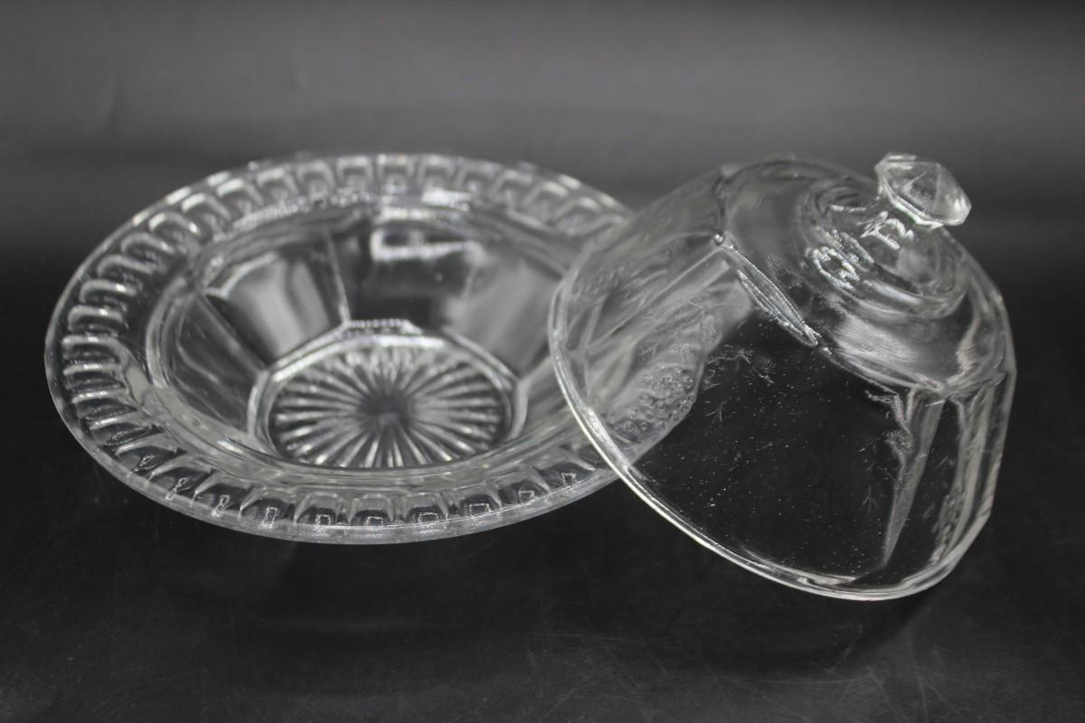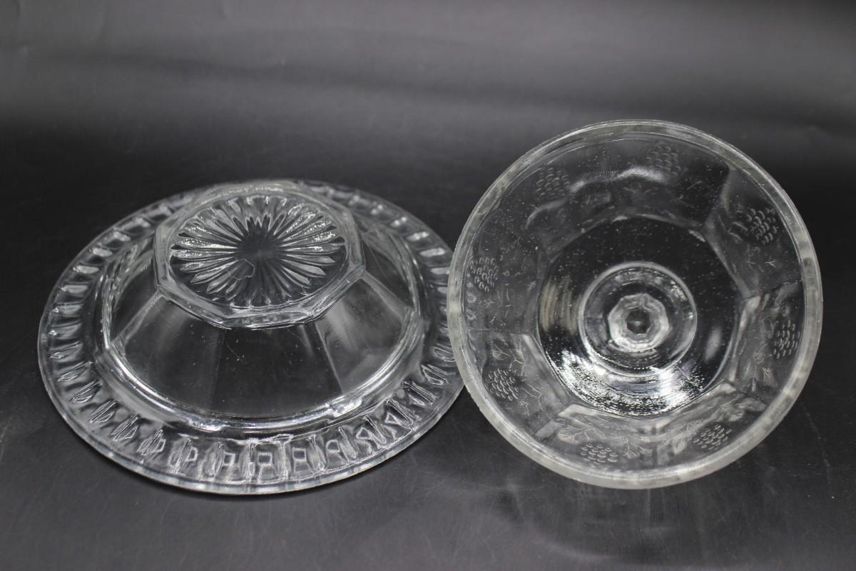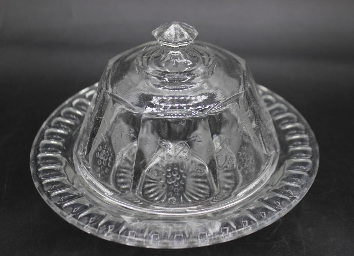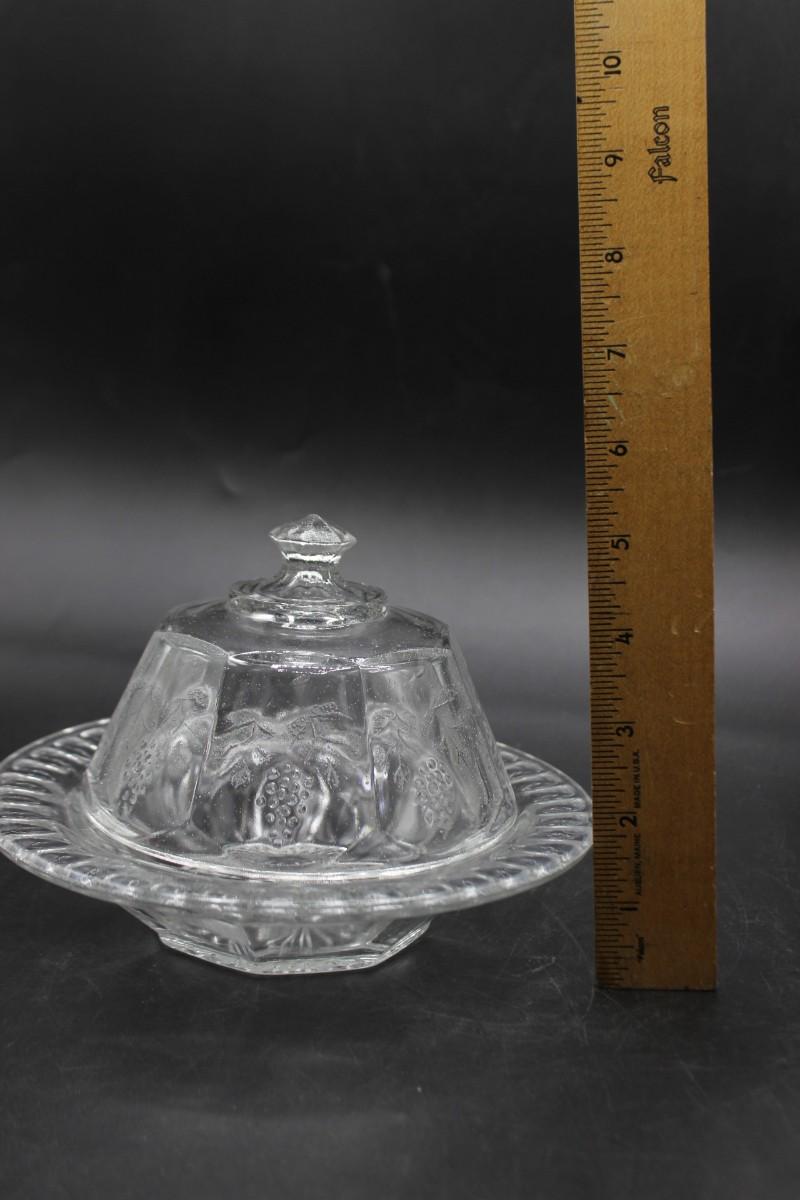 Vintage Clear Glass Grapes Motif Design Round Dome Covered Butter Serving Dish