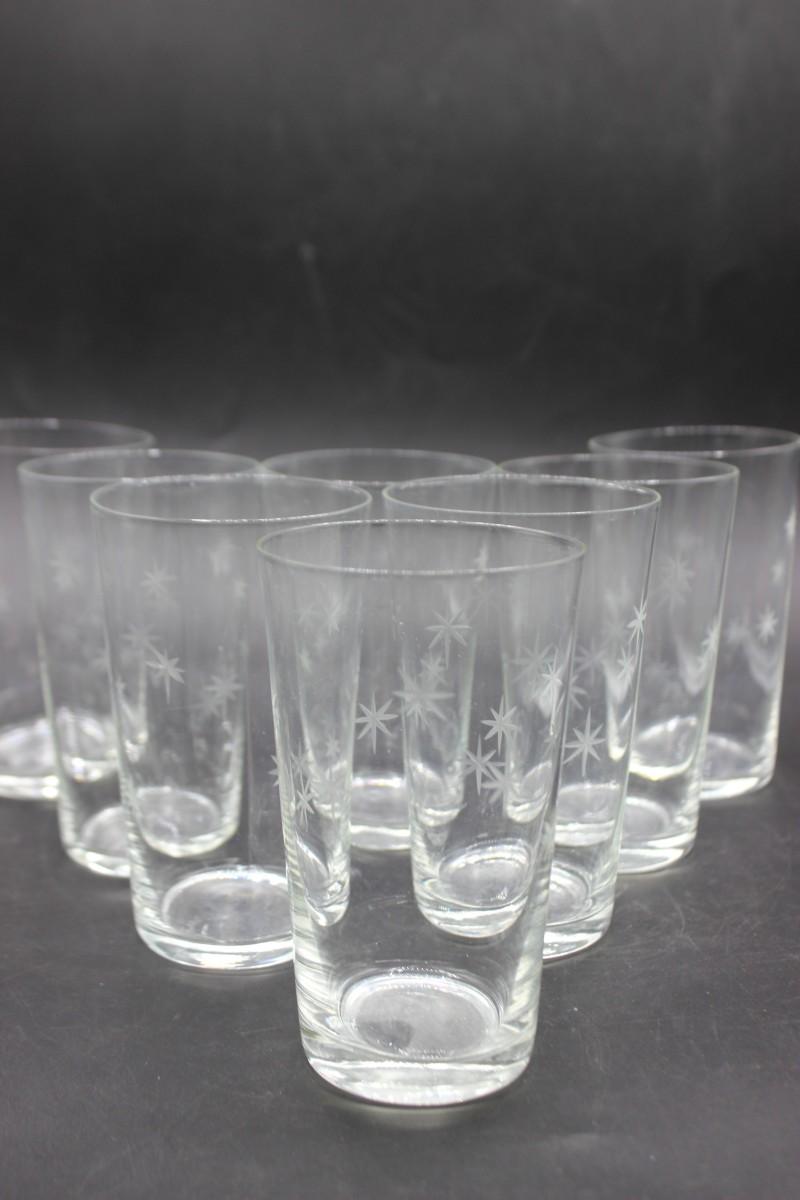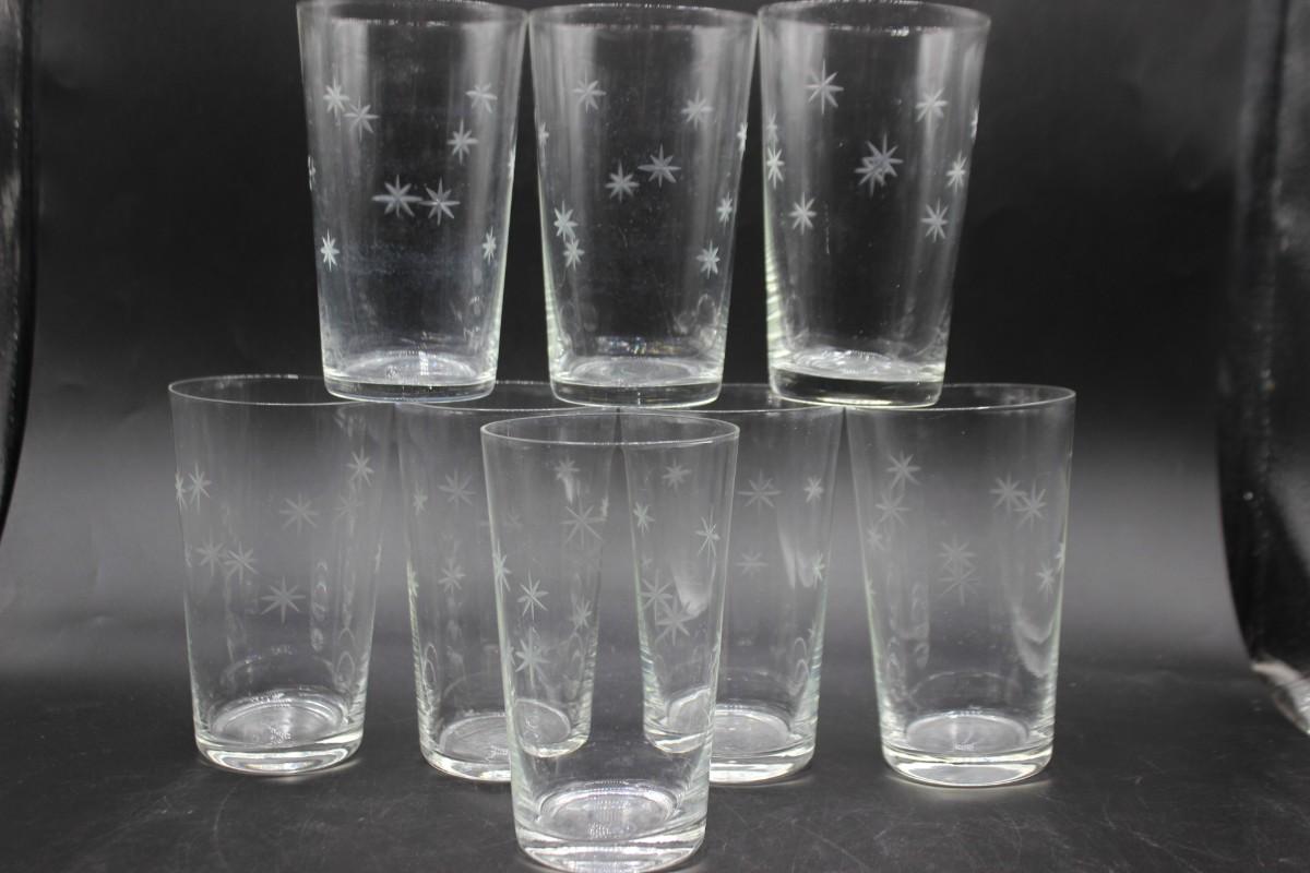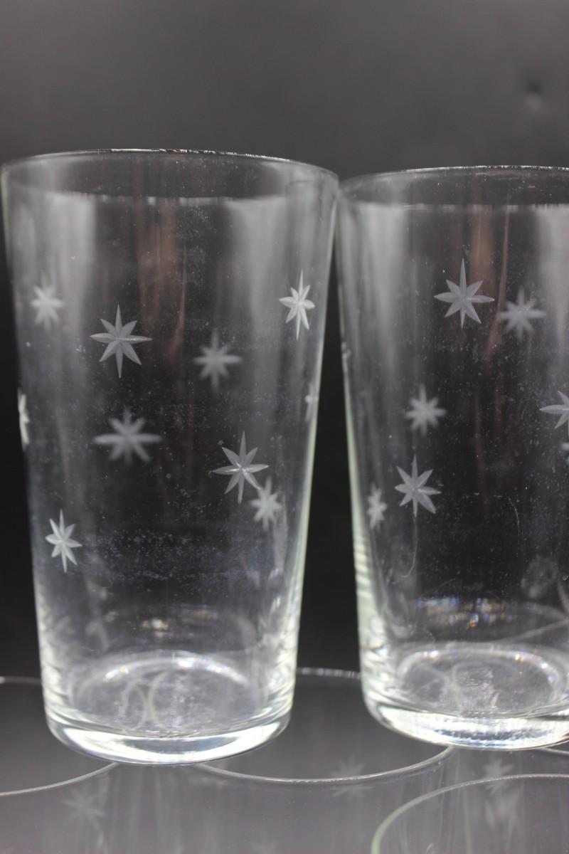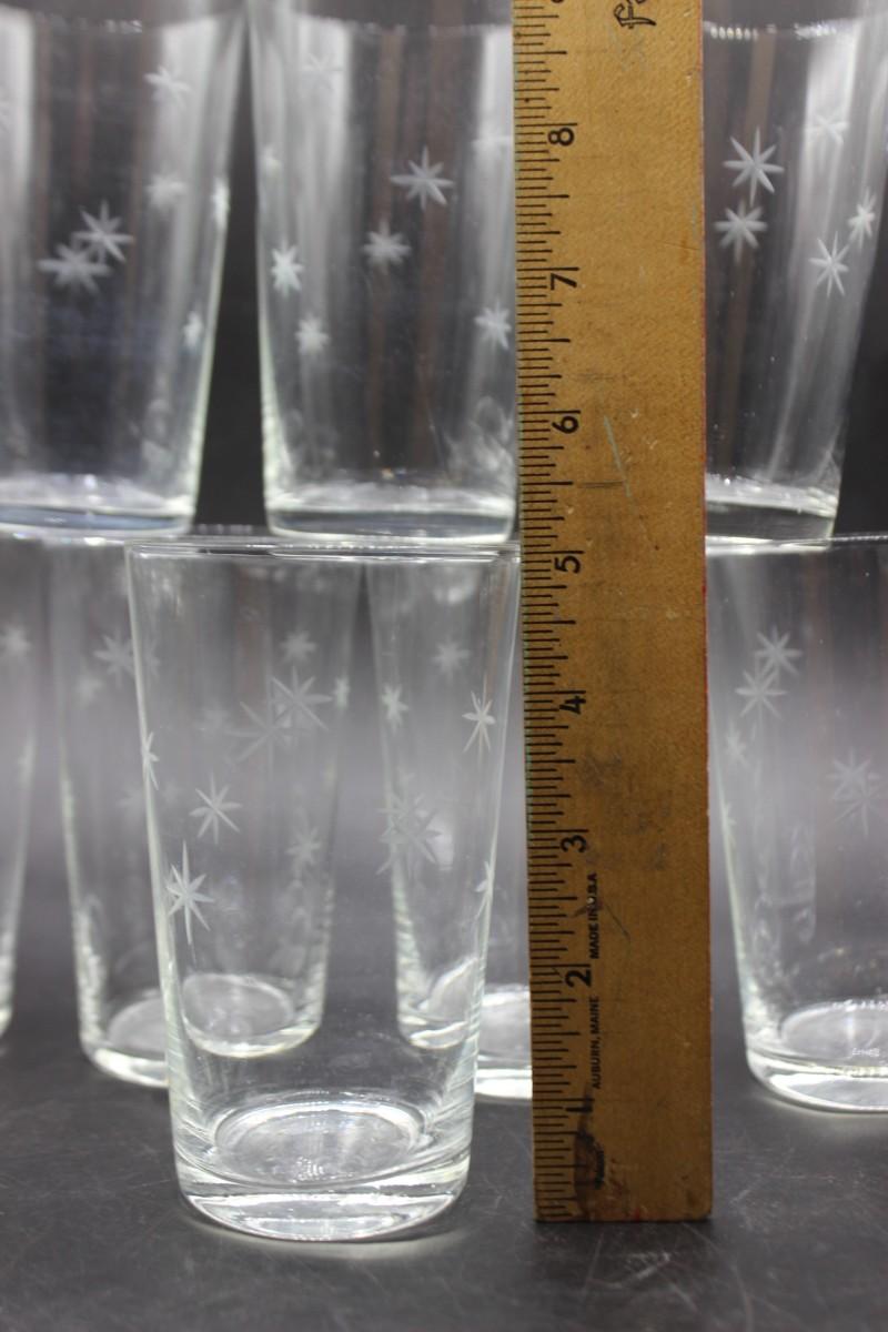 Set of Vintage Federal Glass Mid Century Modern Etched Cut Stars Drinking Glasses