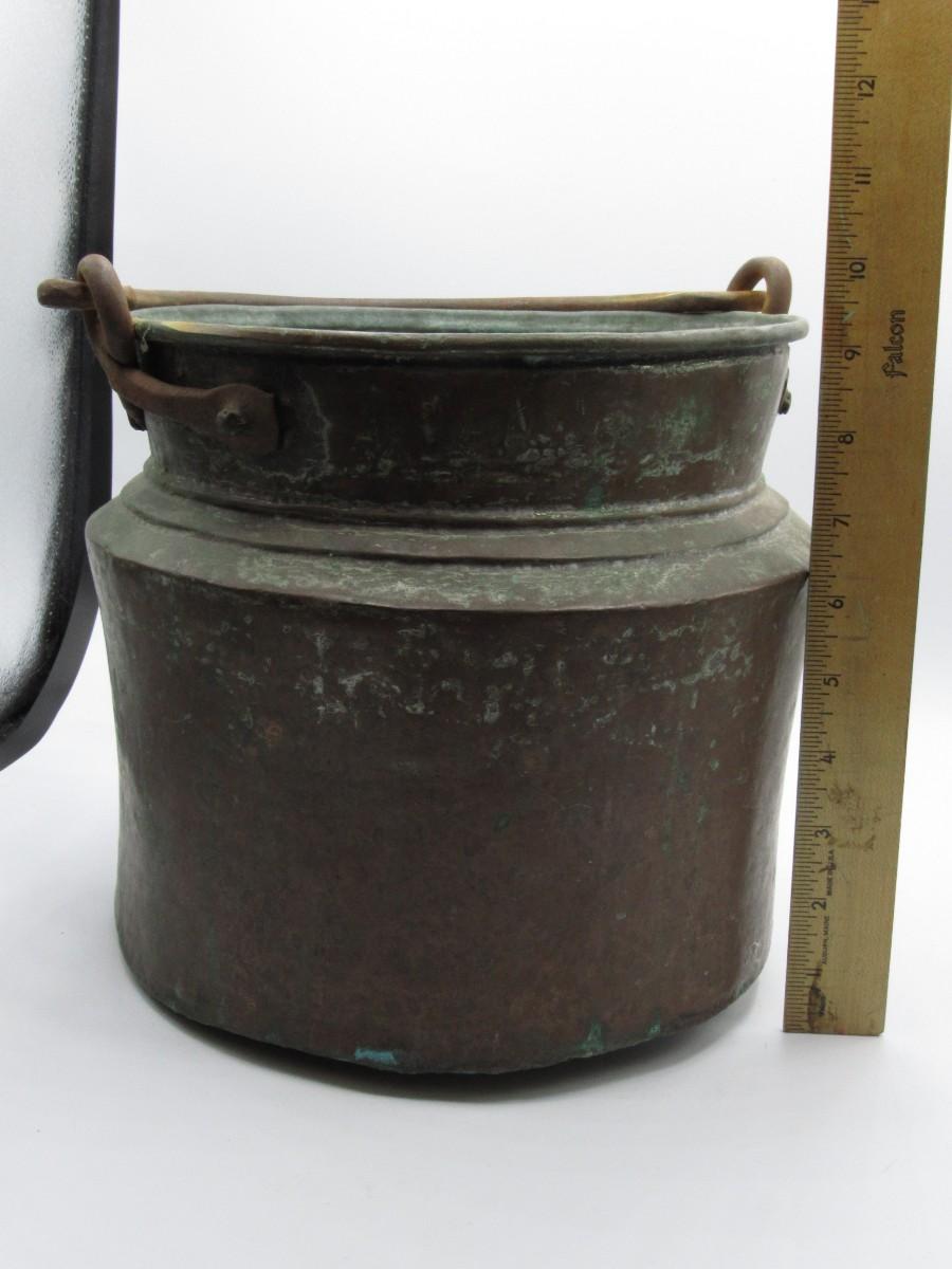 Vintage Worn Brass Copper Cauldron Rustic Bucket