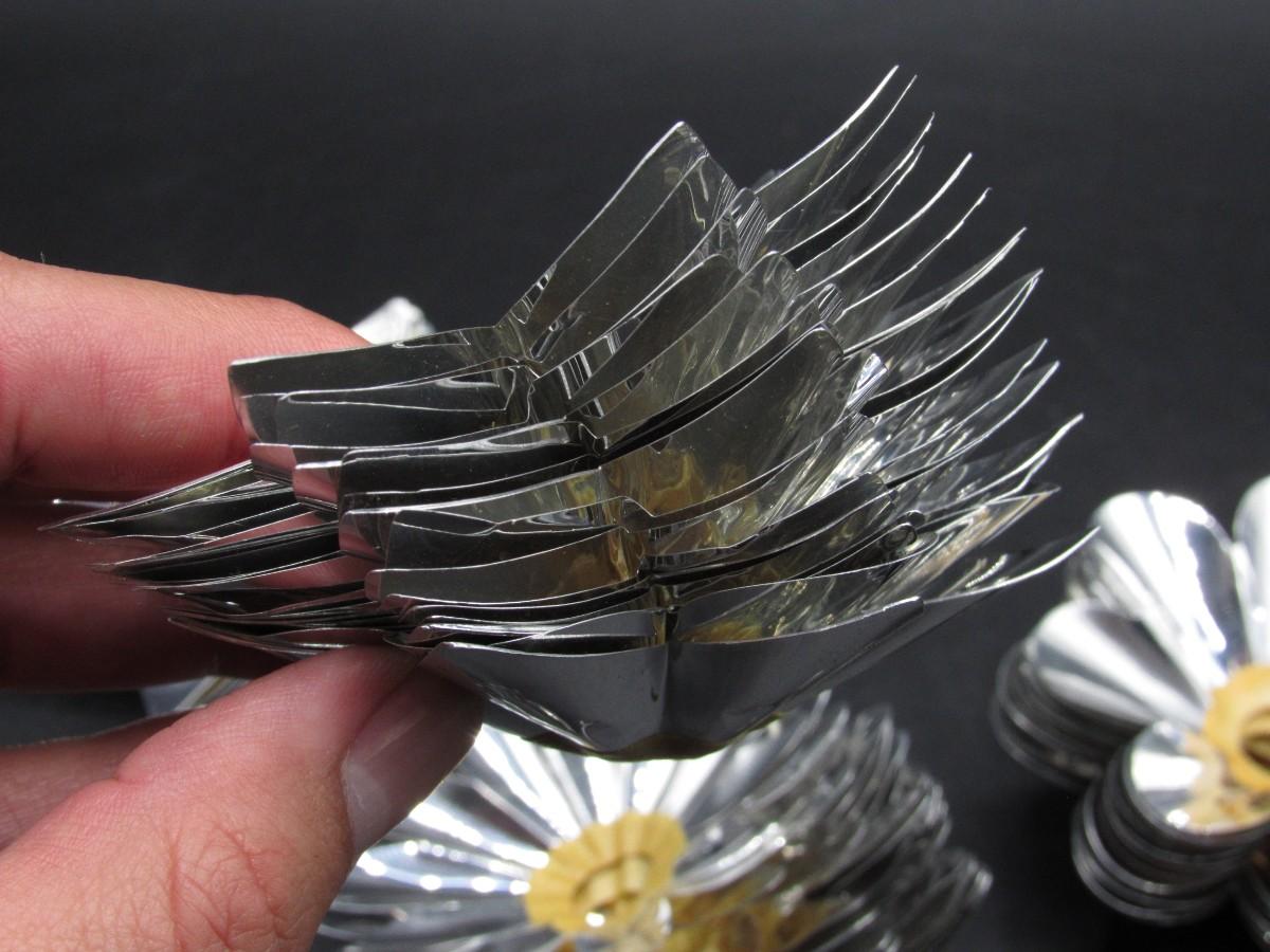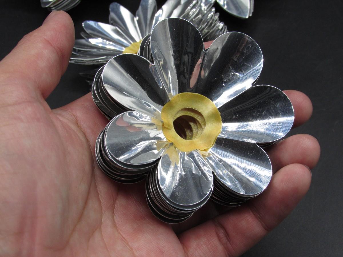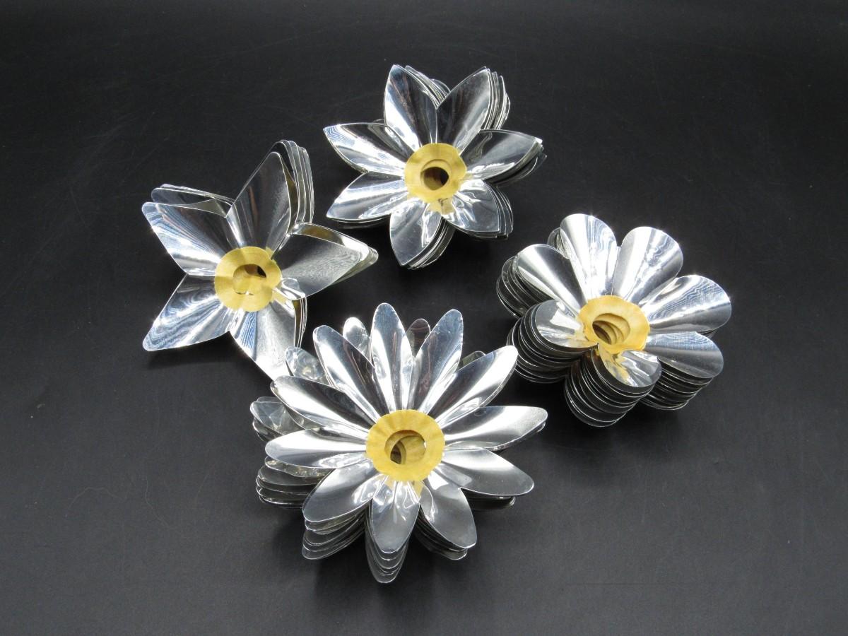Vintage Flower Shaped Foil Light Reflectors. Put on small bulb strand lights to add a little shine. 4 shapes, in good condition.