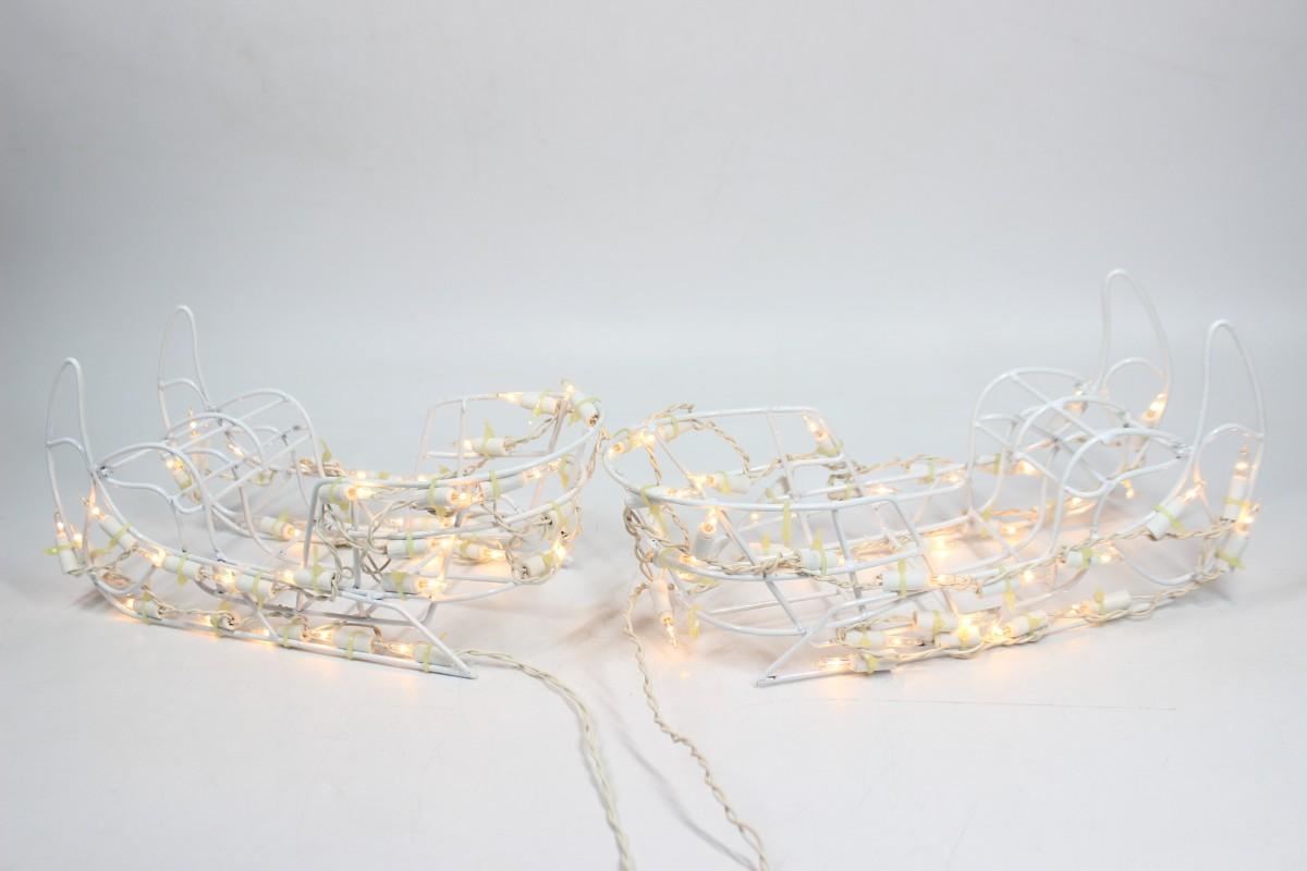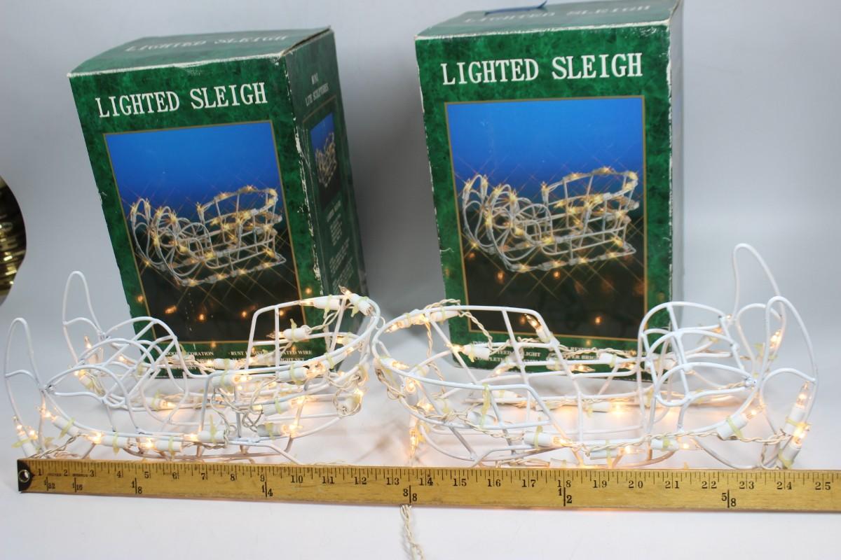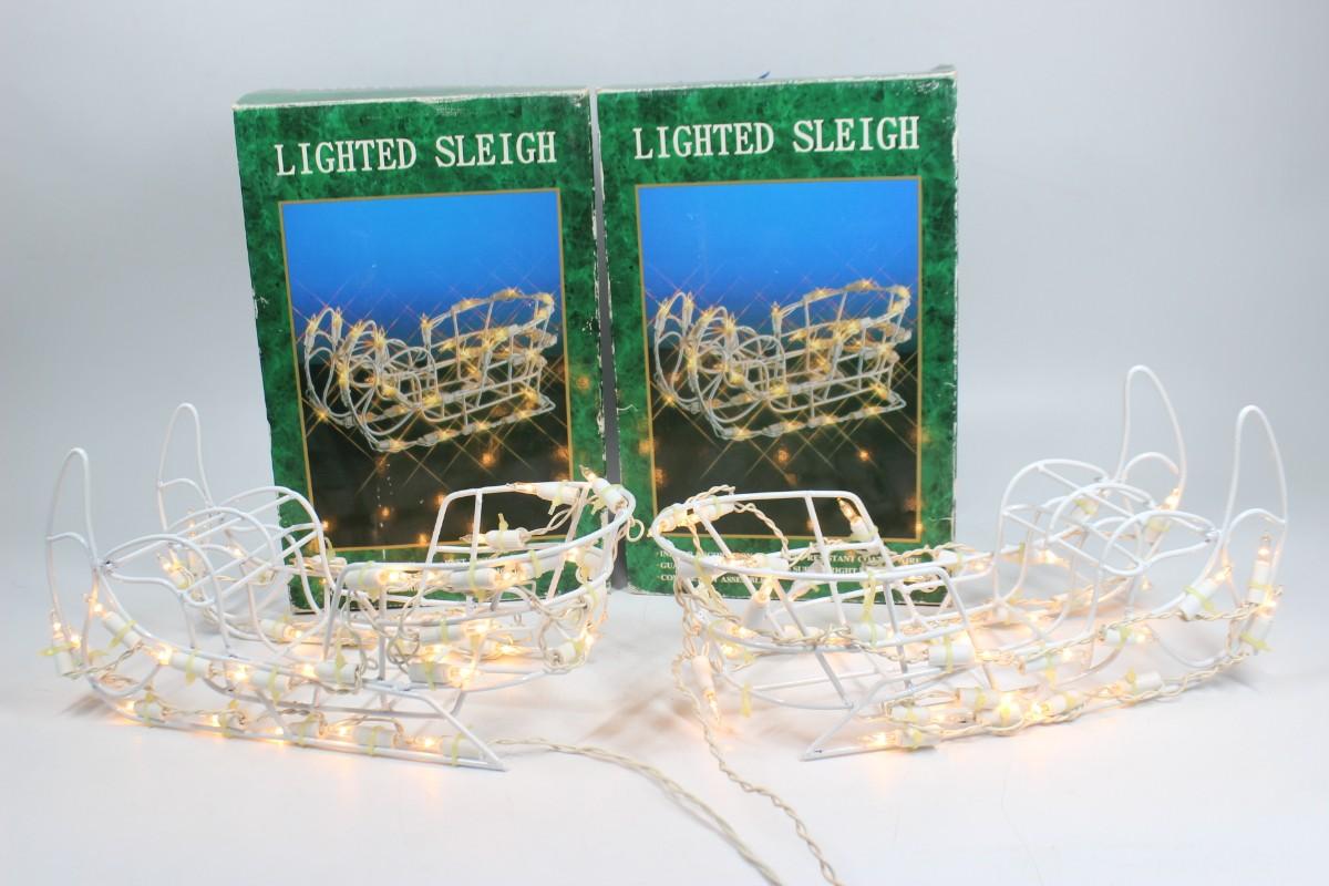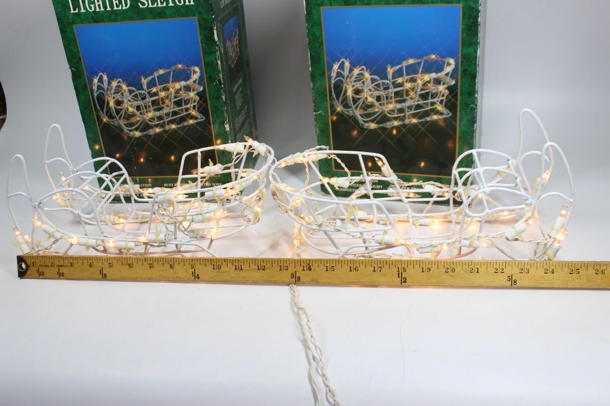 Pair of Christmas Holiday Lighted Sleigh Home Yard Decor