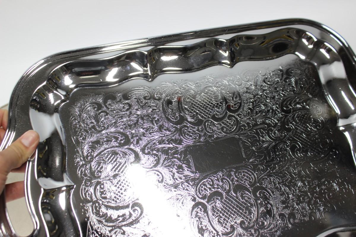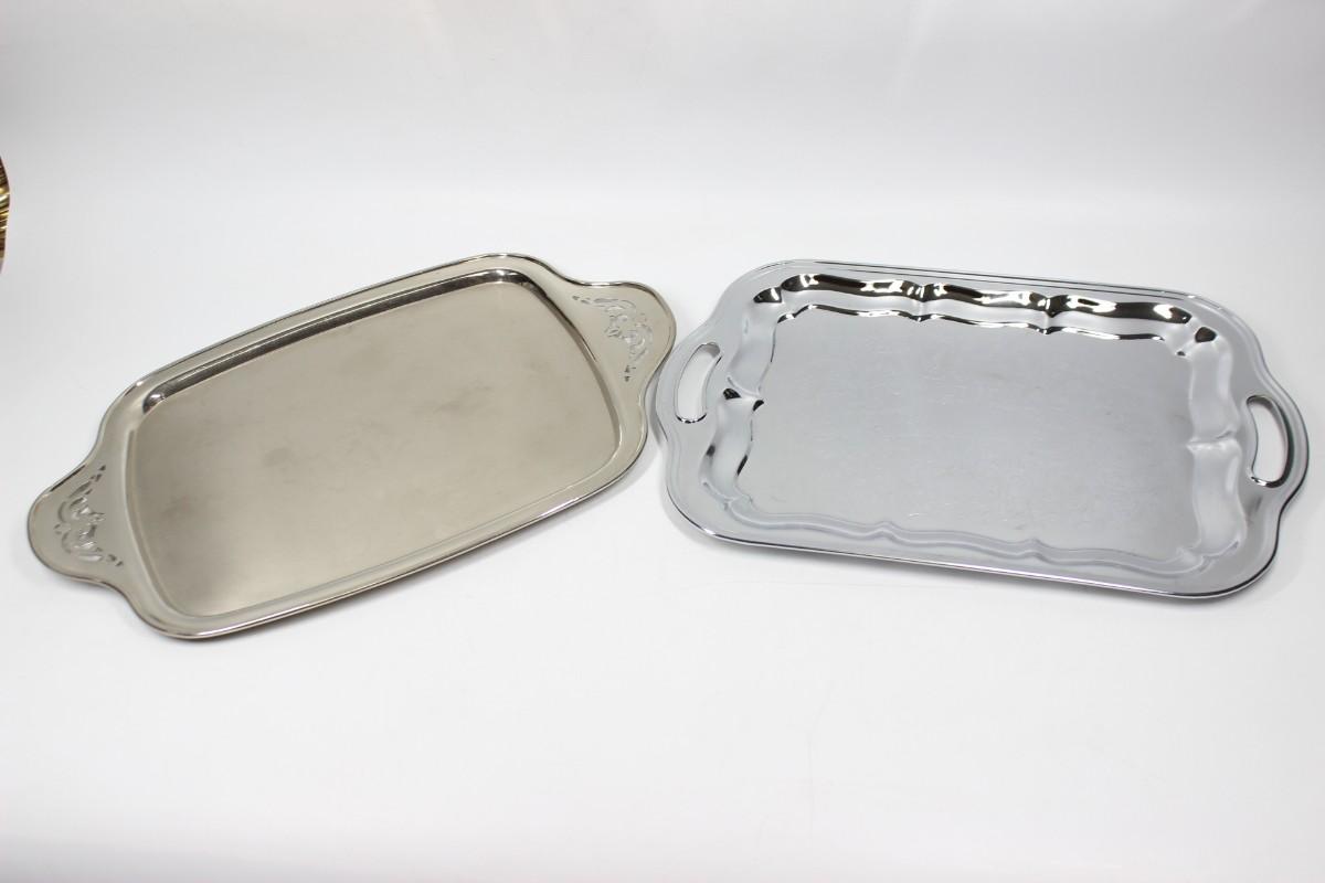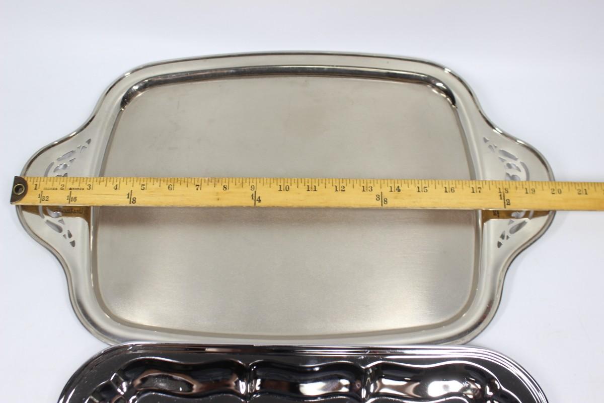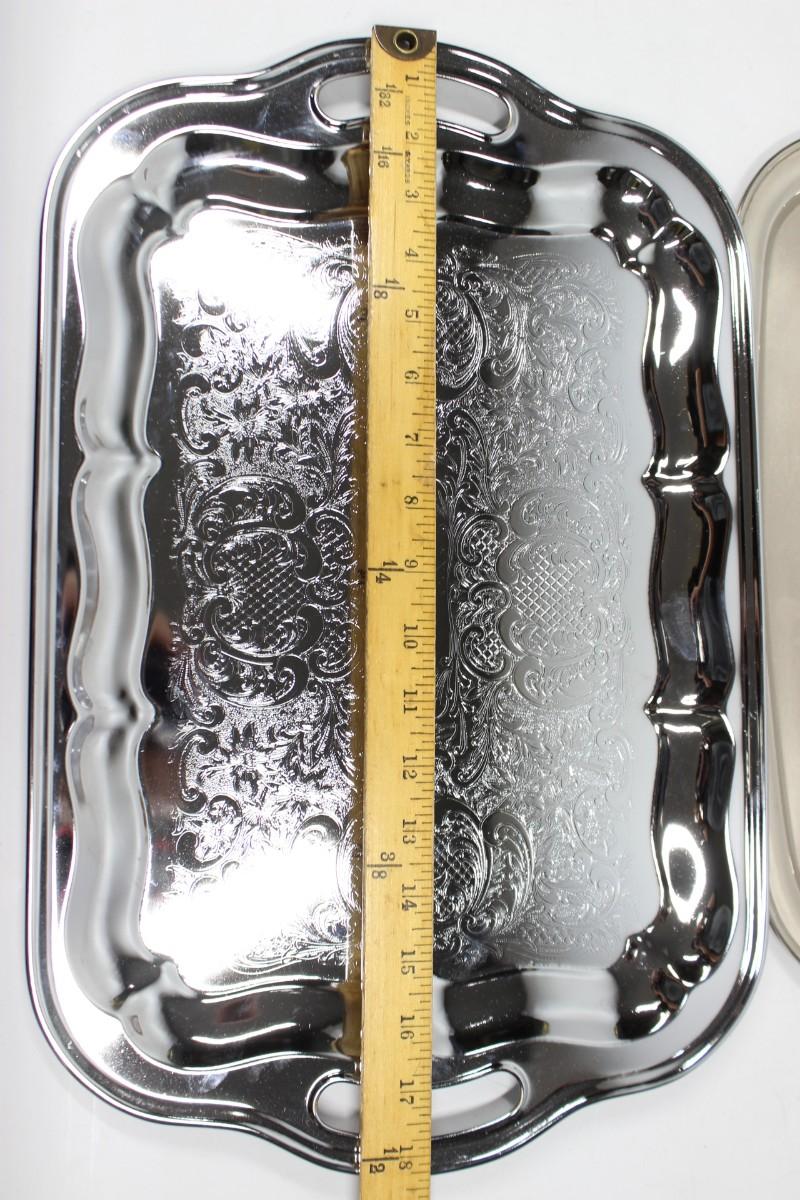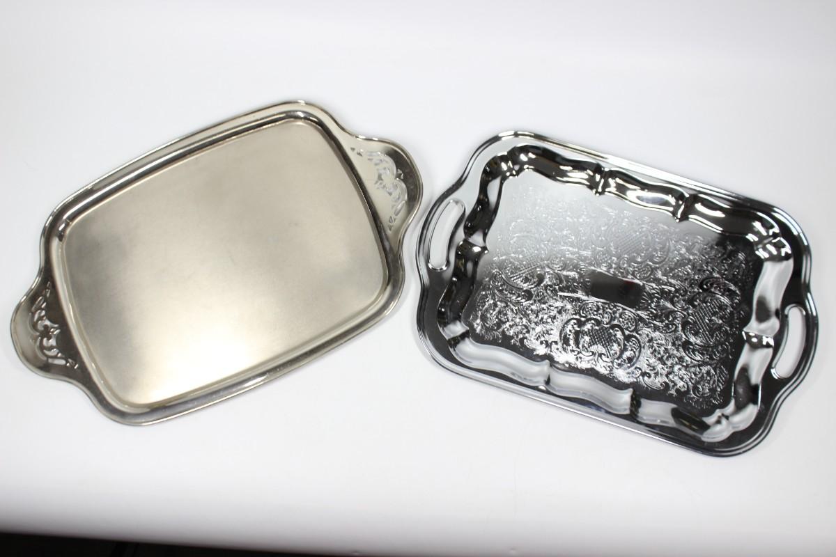 Pair of Vintage Silver Plate Stainless Serving Tray Platters. Both are in good condition.