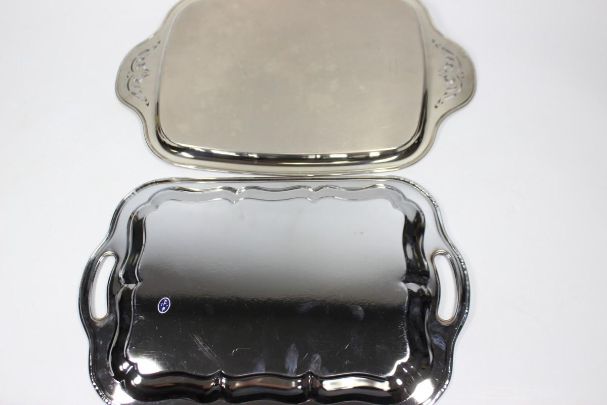 Pair of Vintage Silver Plate Stainless Serving Tray Platters