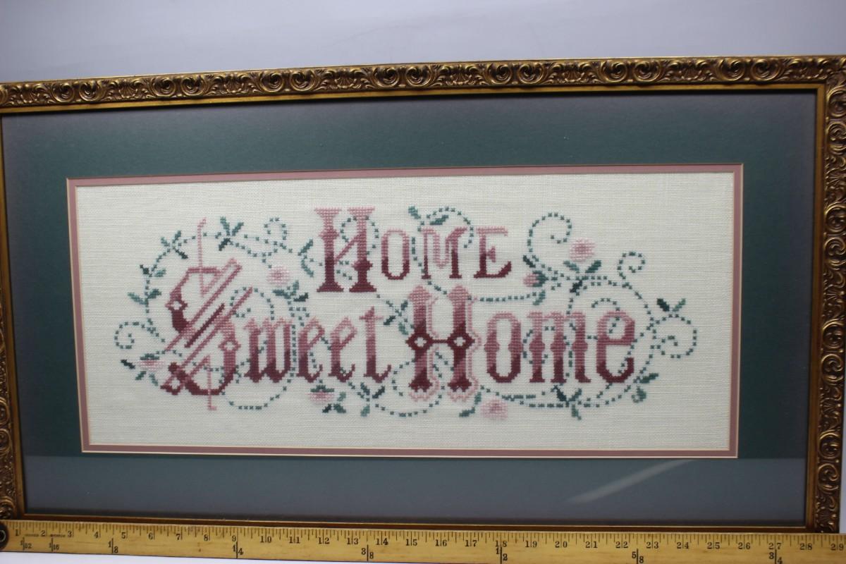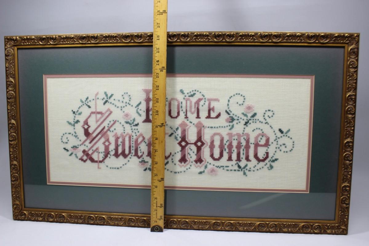 Home Sweet Home Framed Needlepoint Cross Stitch Art. In good condition, nicely done.